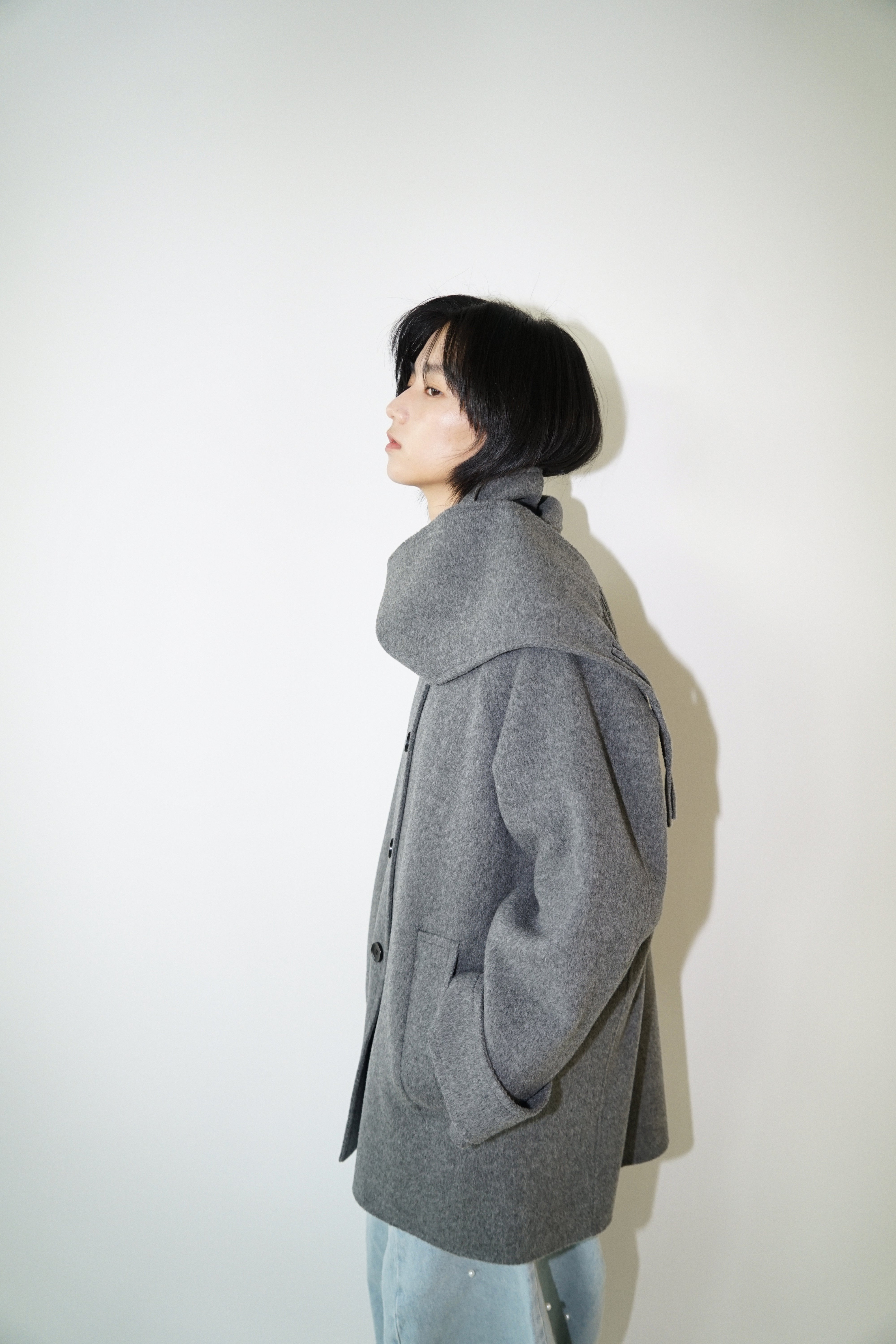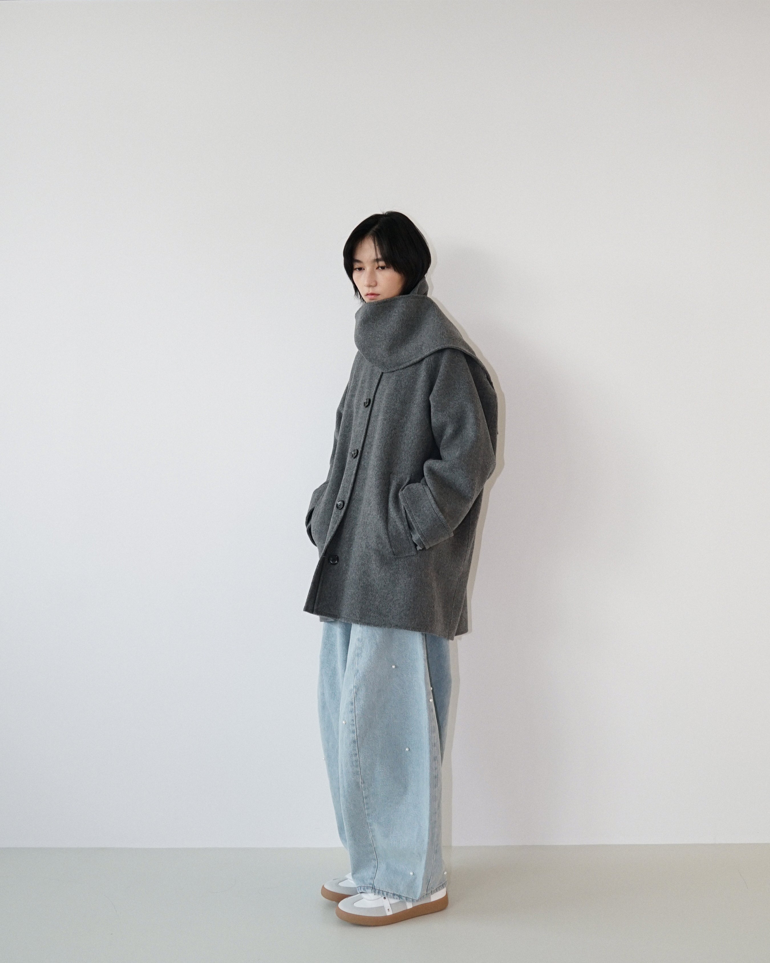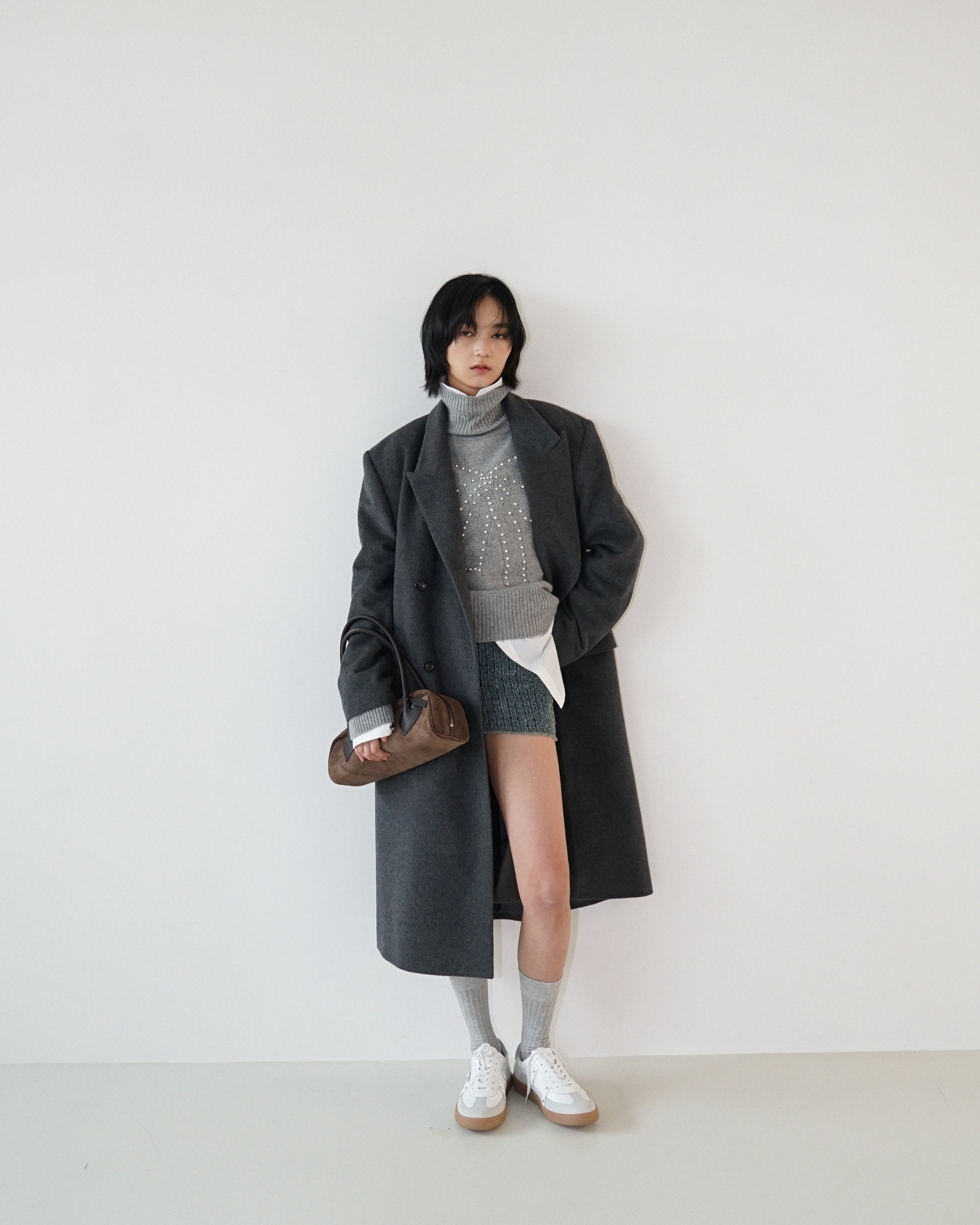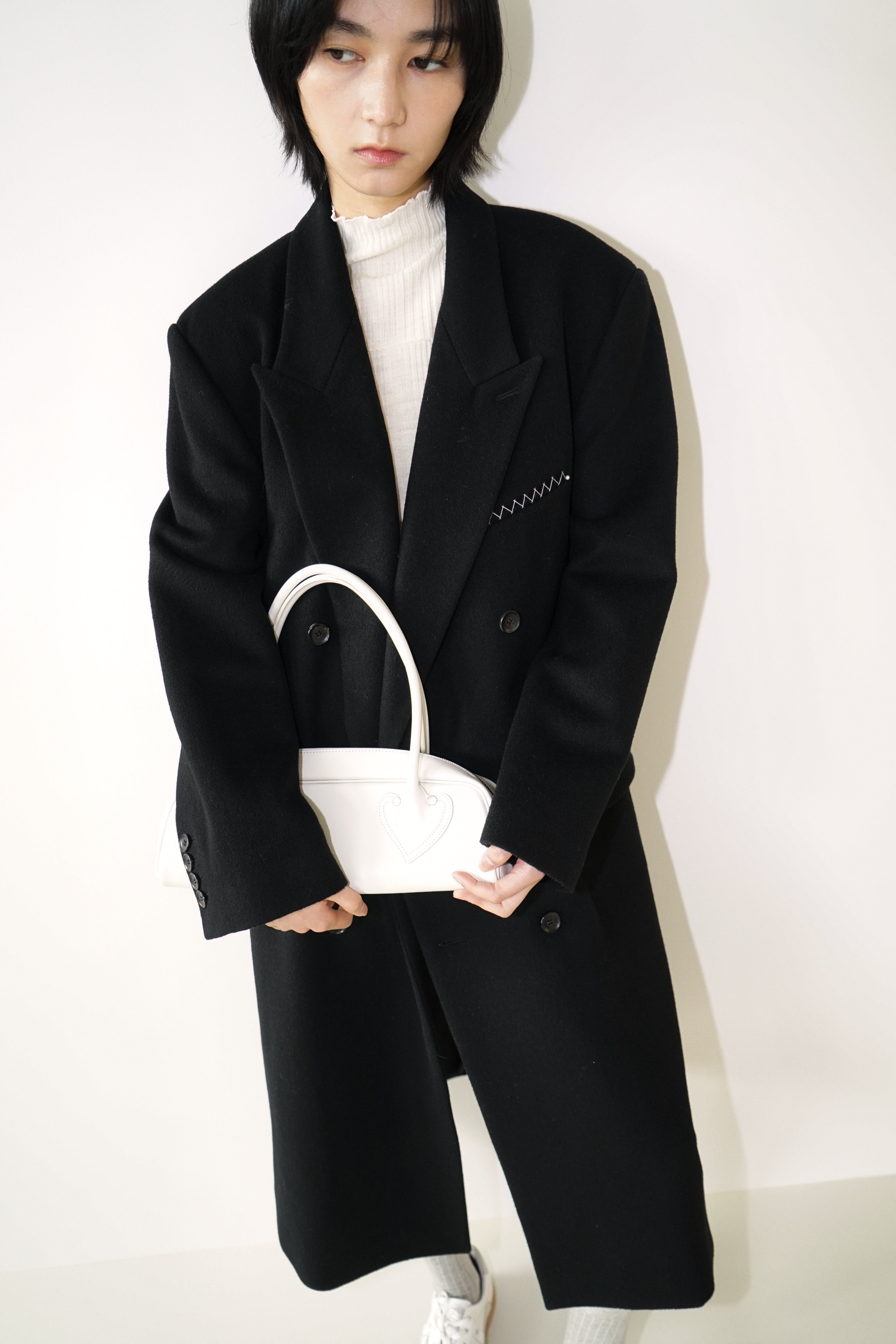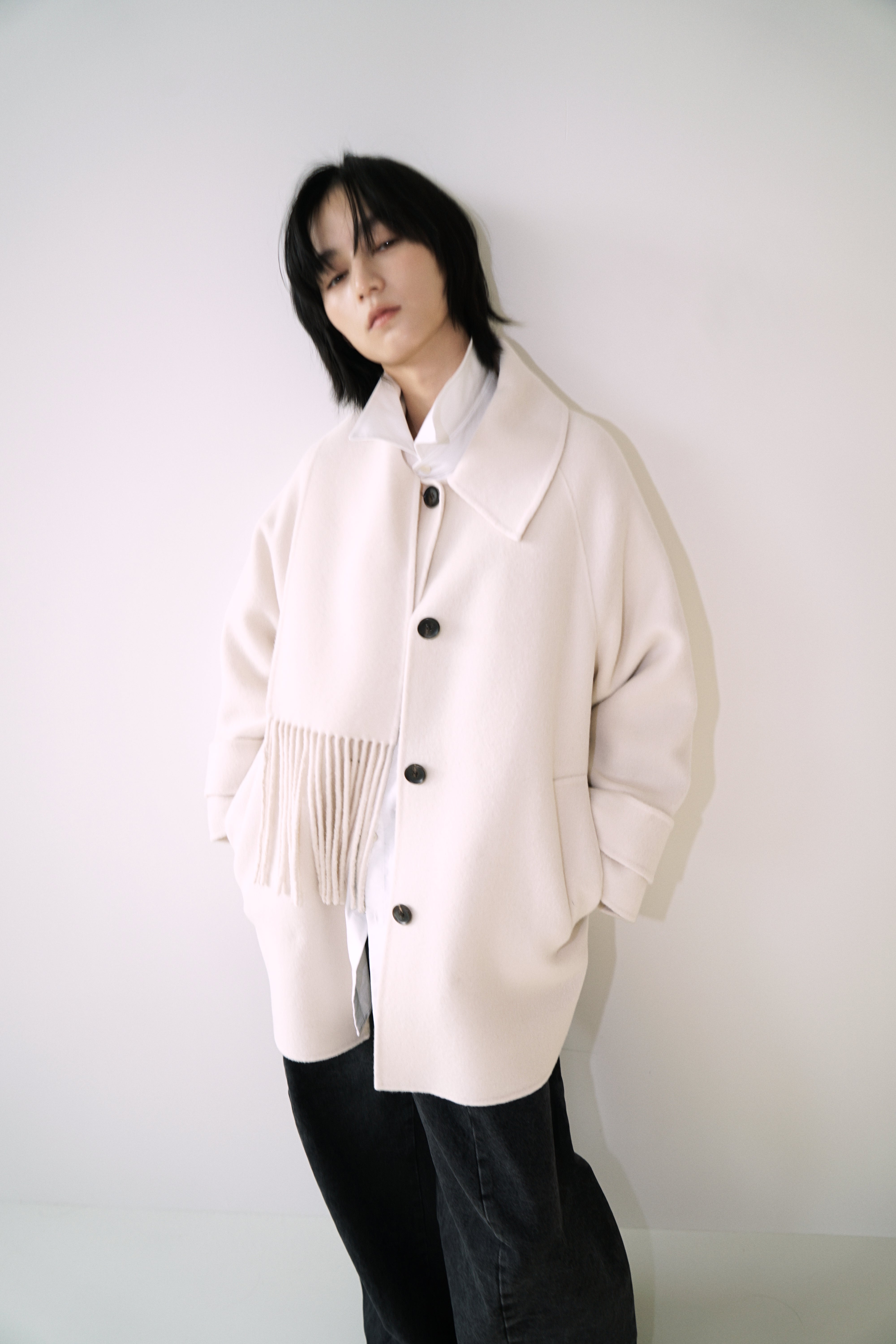 Bi-Color Alpaca Blend Fringe Scarf Long Coat (Ivory/Black)