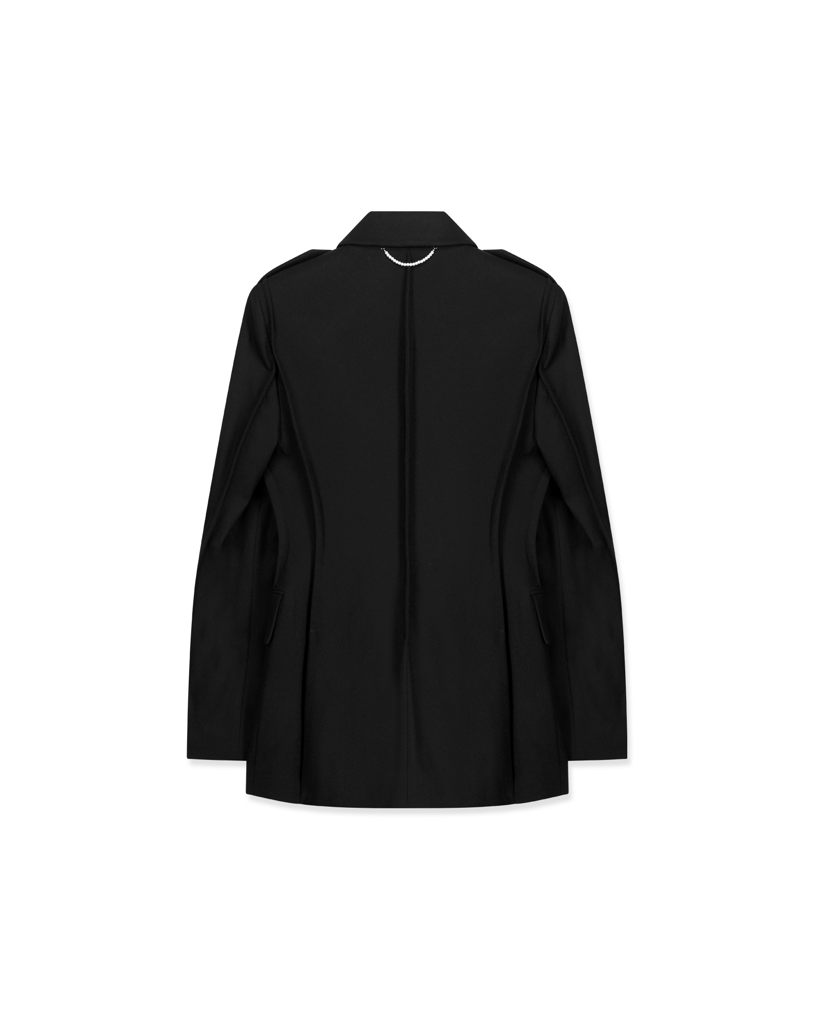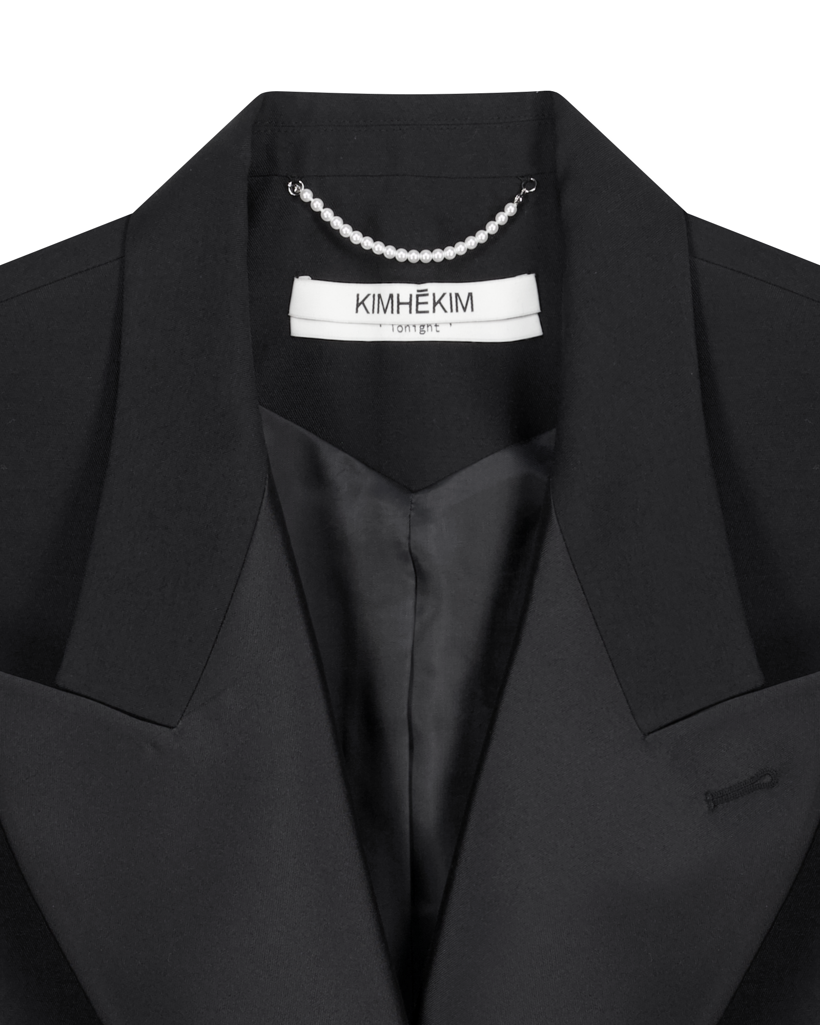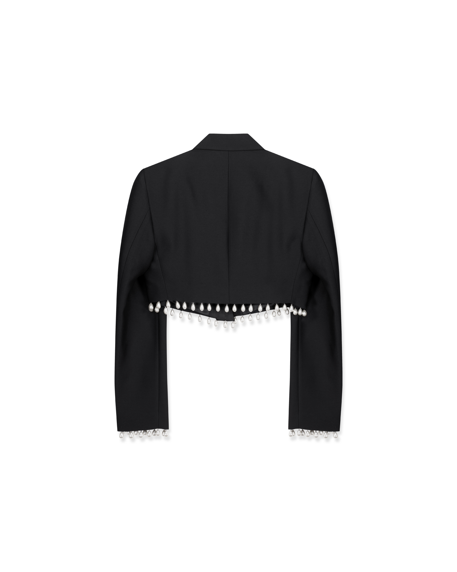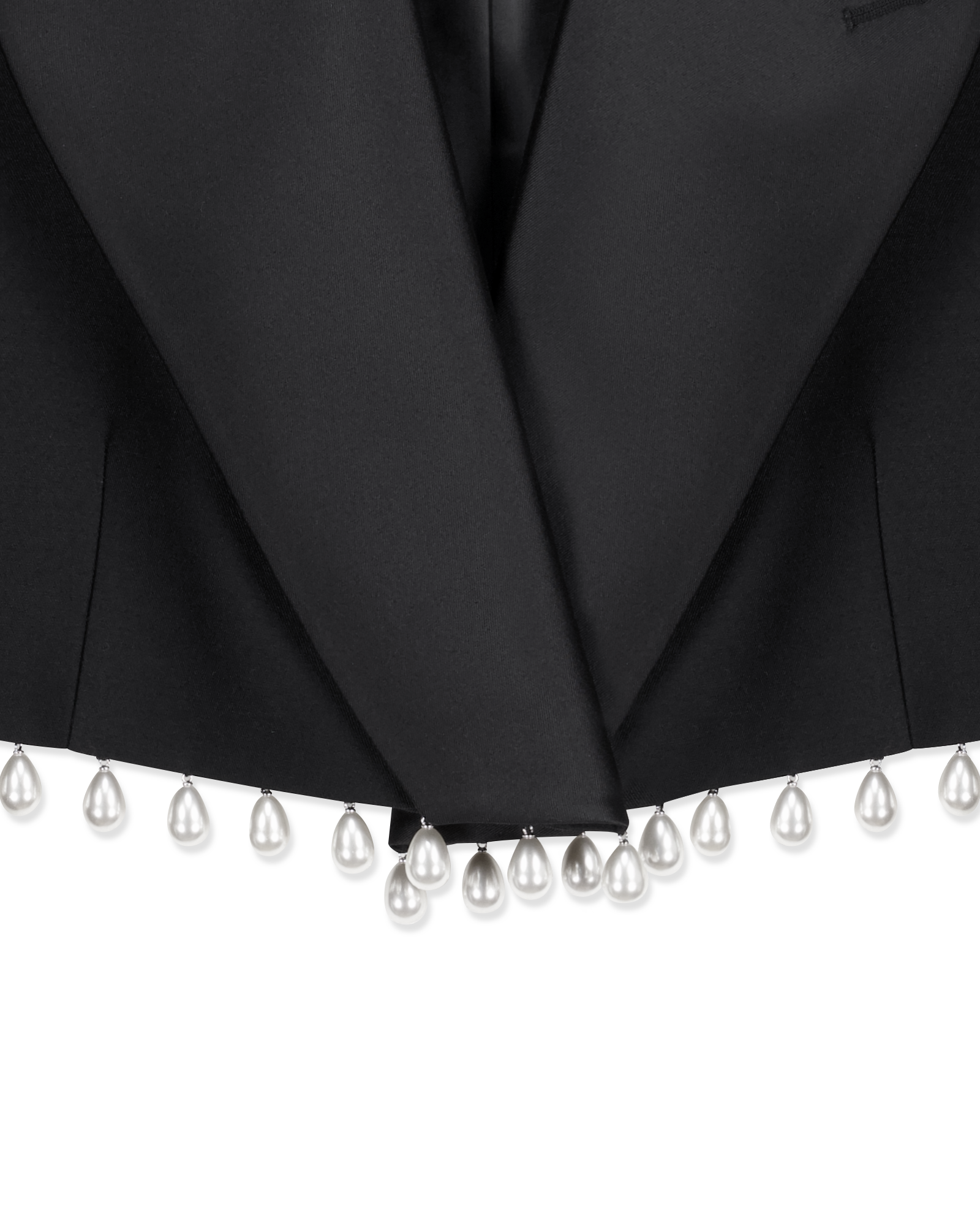 Pearl Embellished Cropped Tuxedo Jacket (Black)