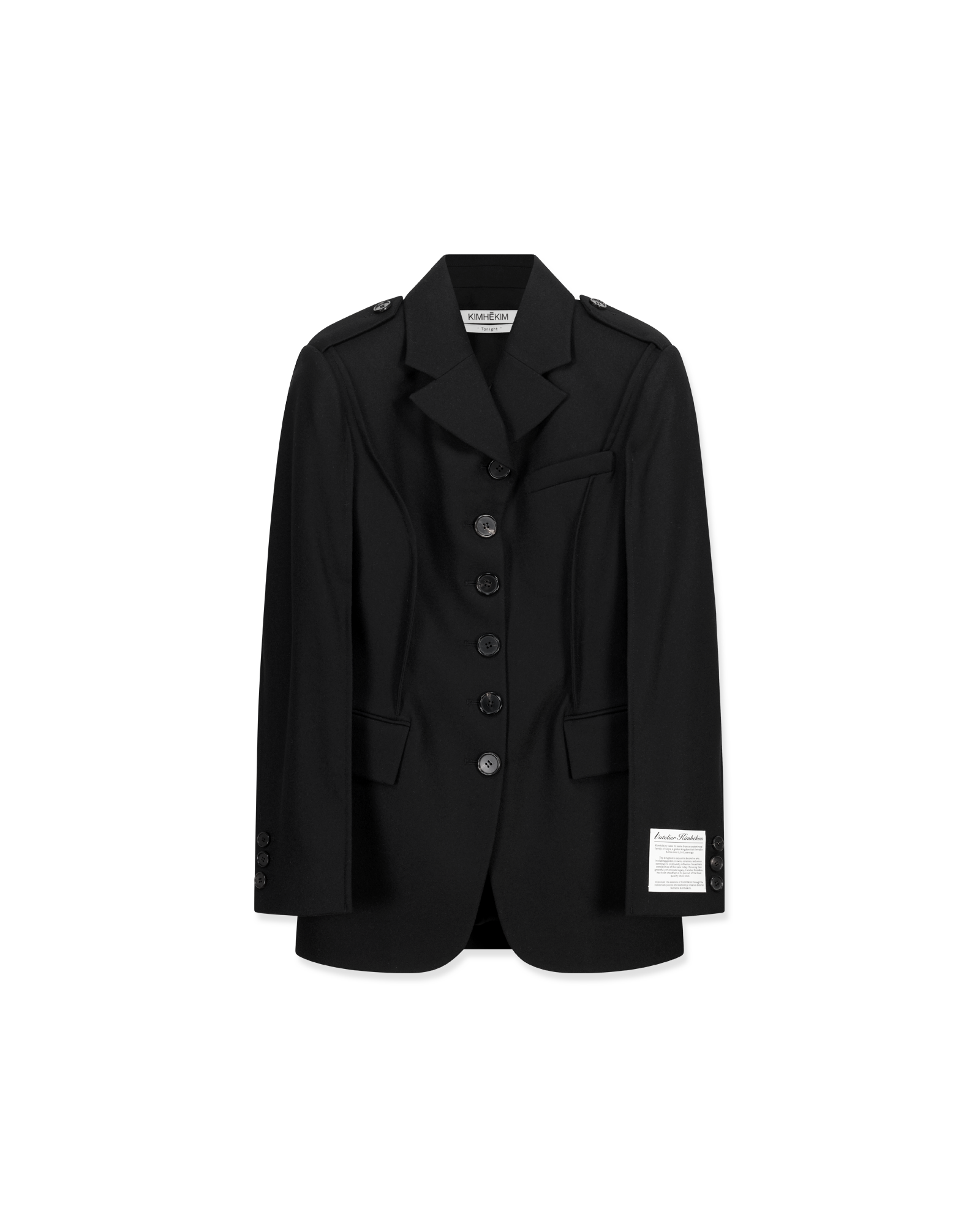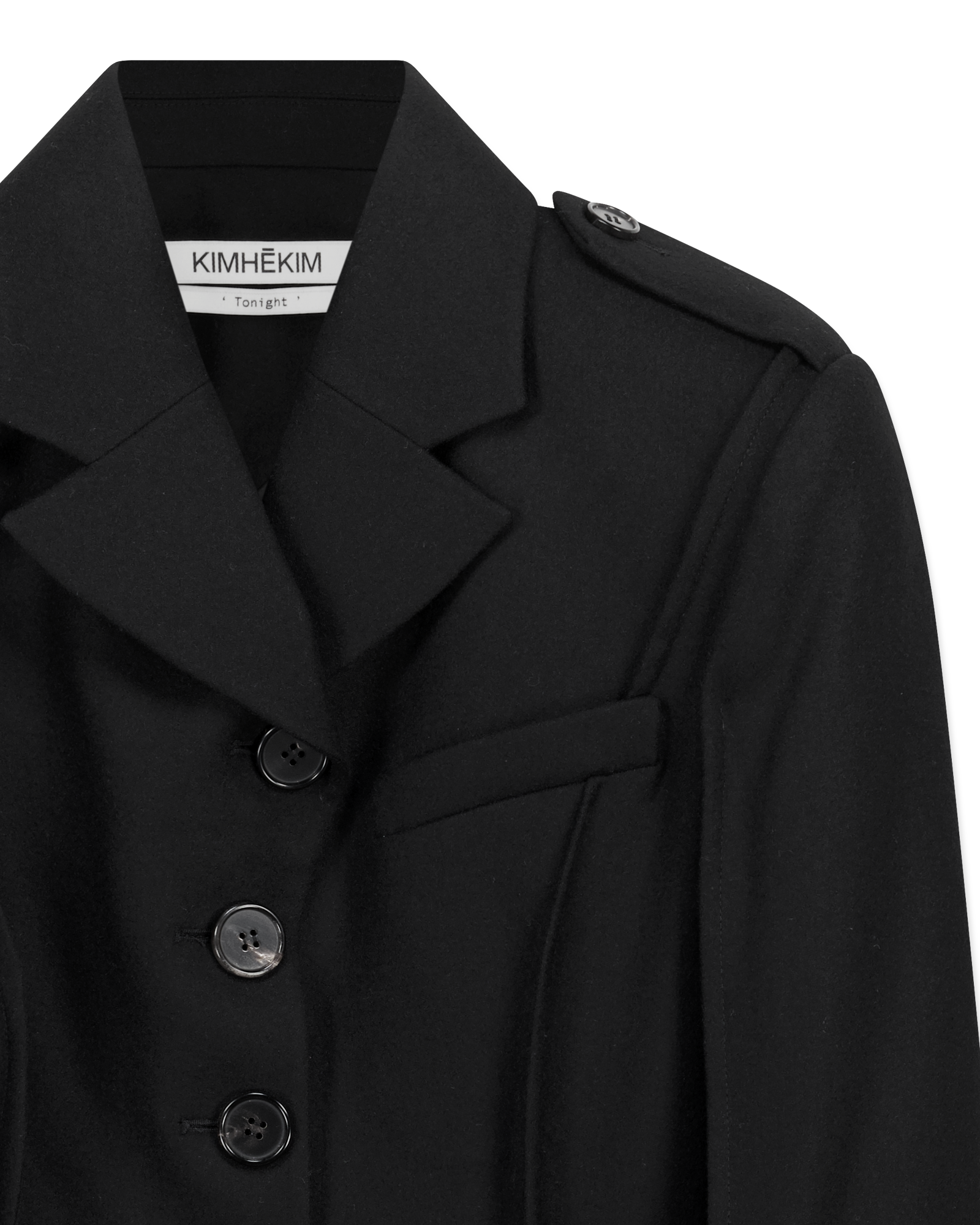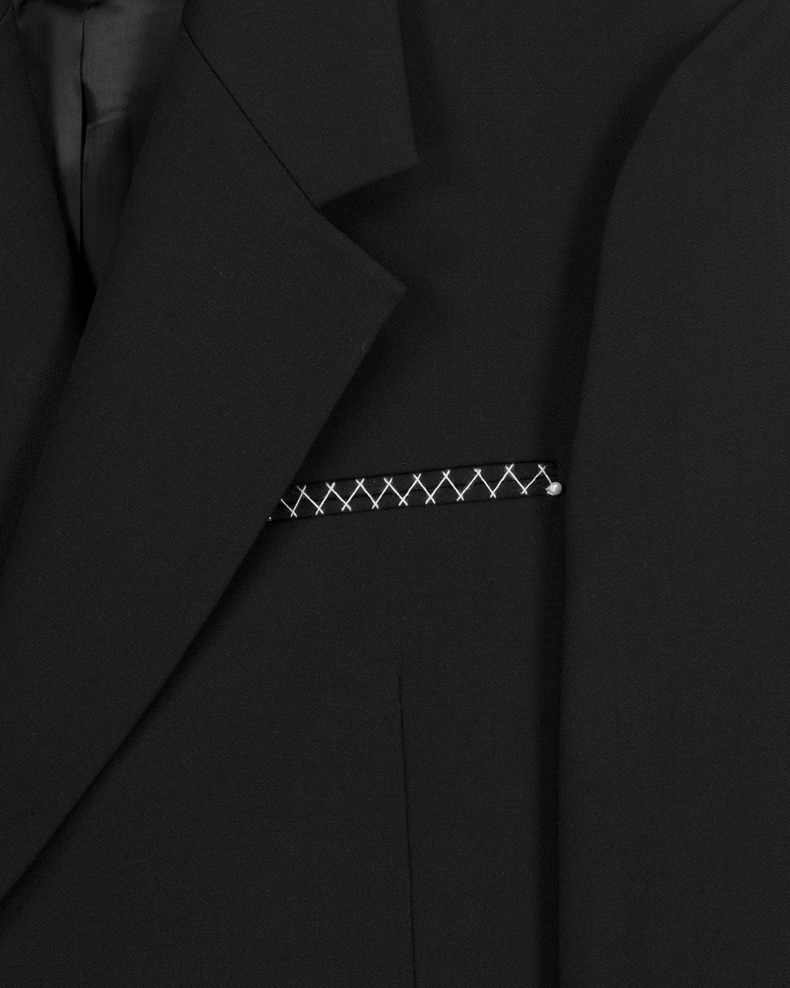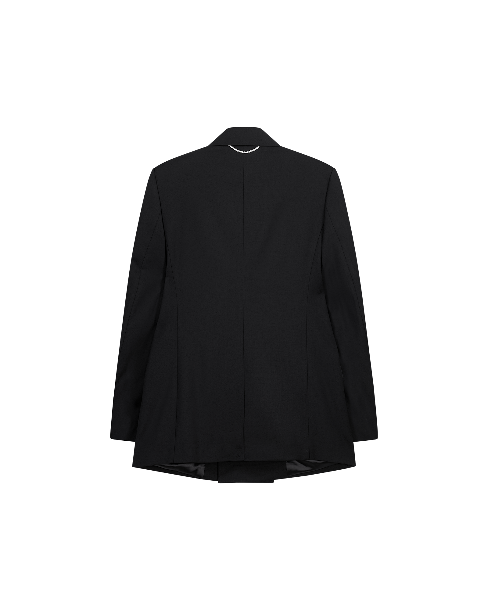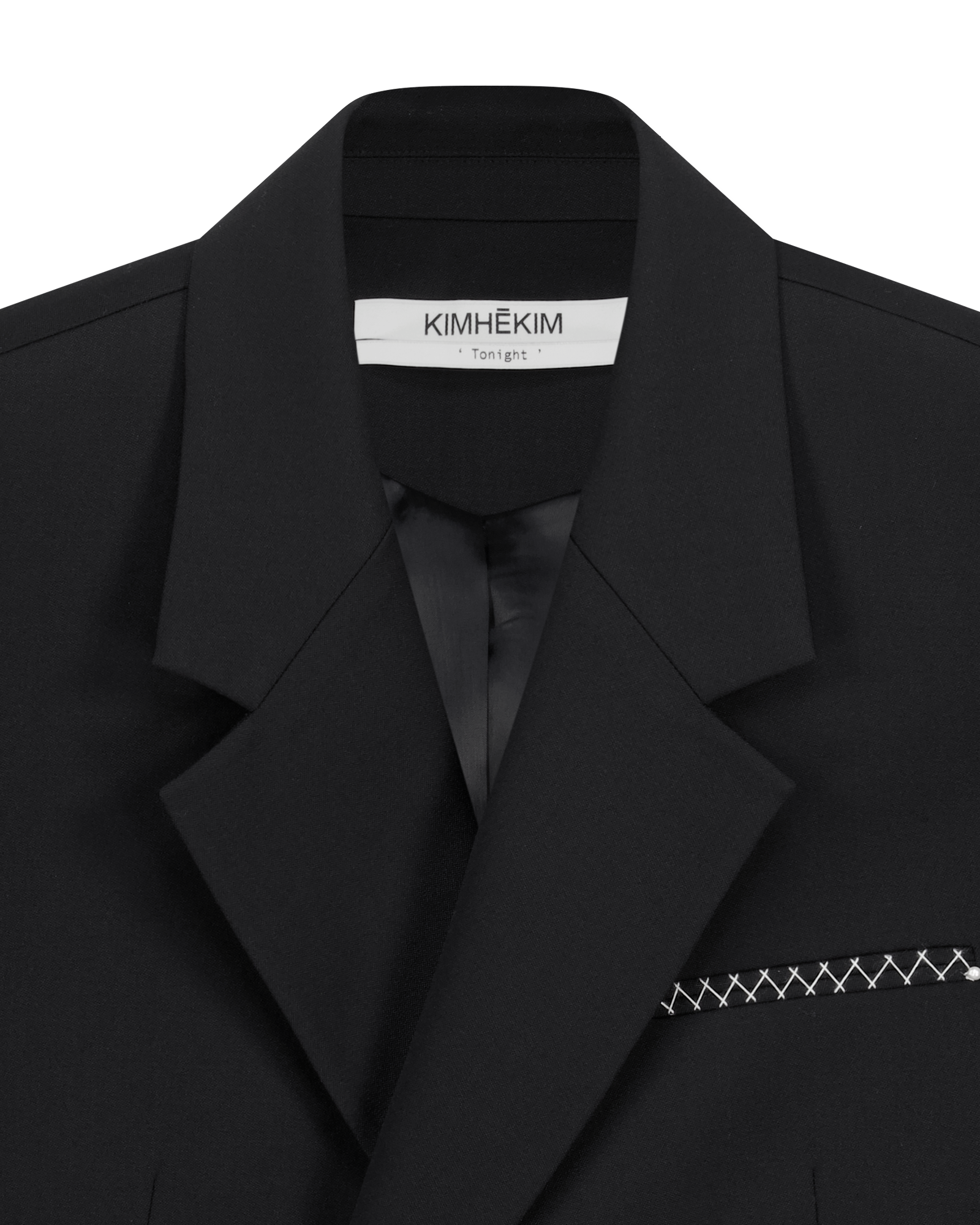 Pearl Embellished Cropped Tuxedo Jacket (Black)