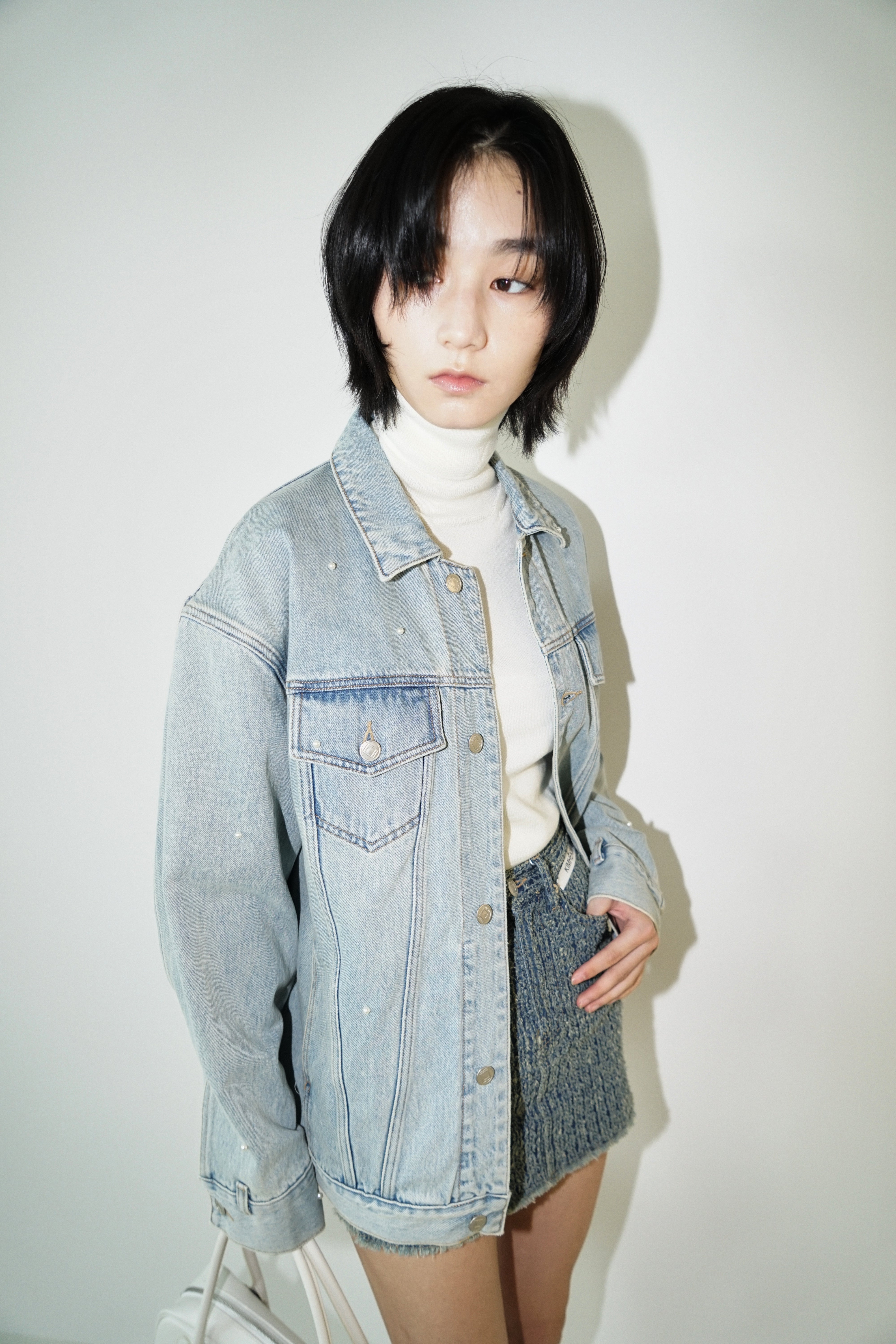 Pearl Embellished Denim Jacket (Sky Blue)