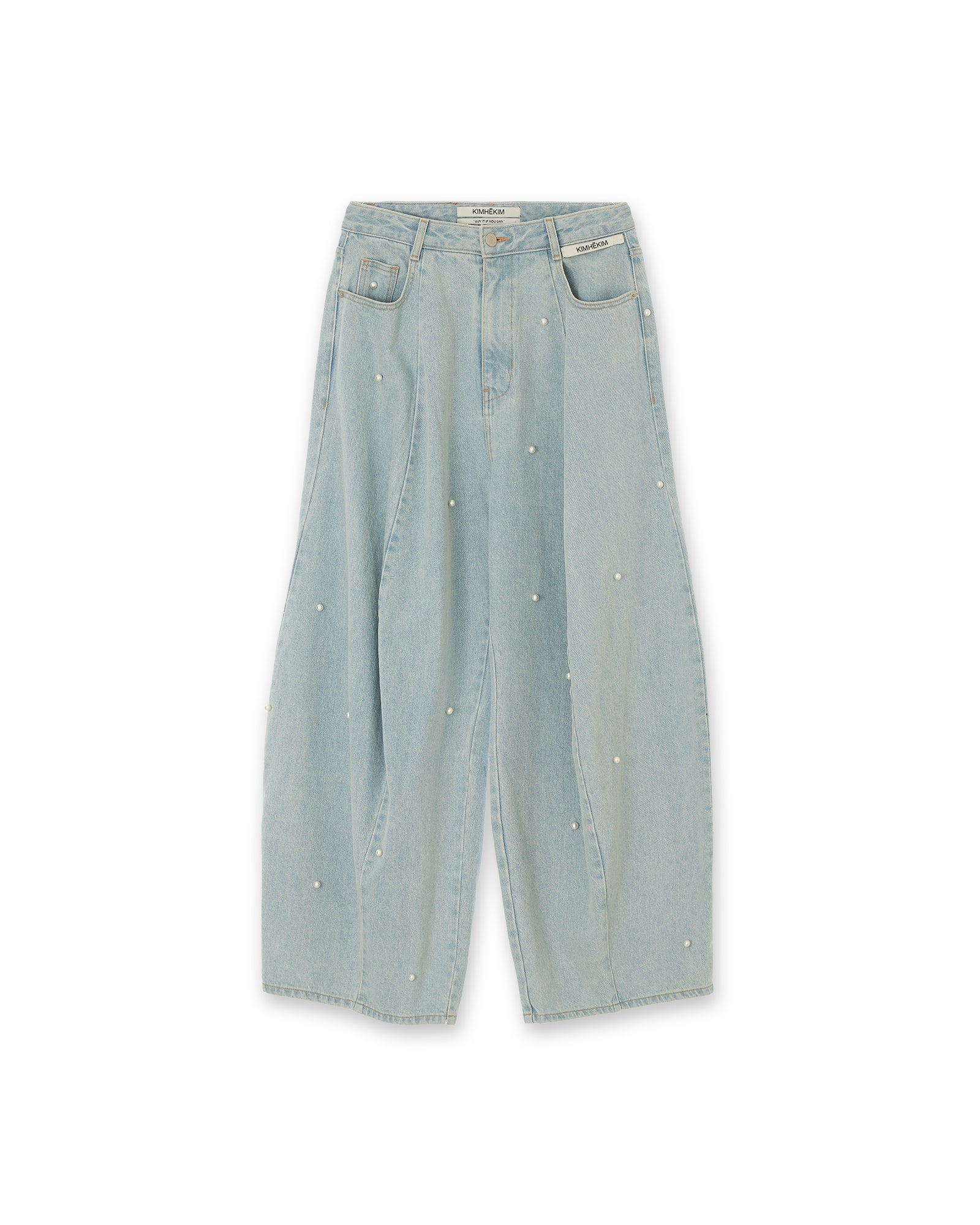 Pearl Embellished Balloon Fit Jeans (Sky Blue)