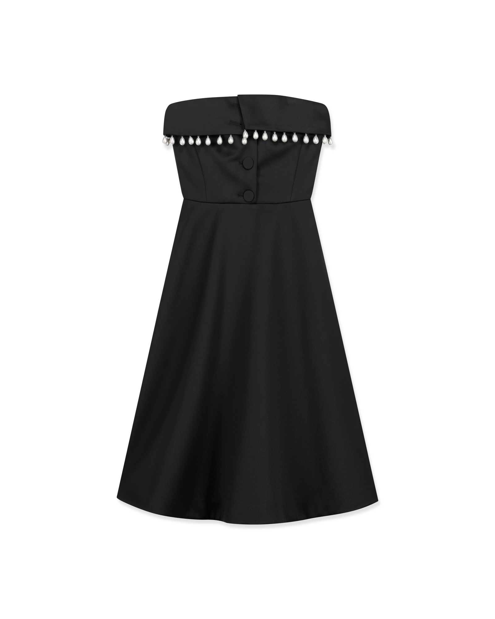 Pearl Buttons Wool-Blend Bustier Mini Dress (Black)