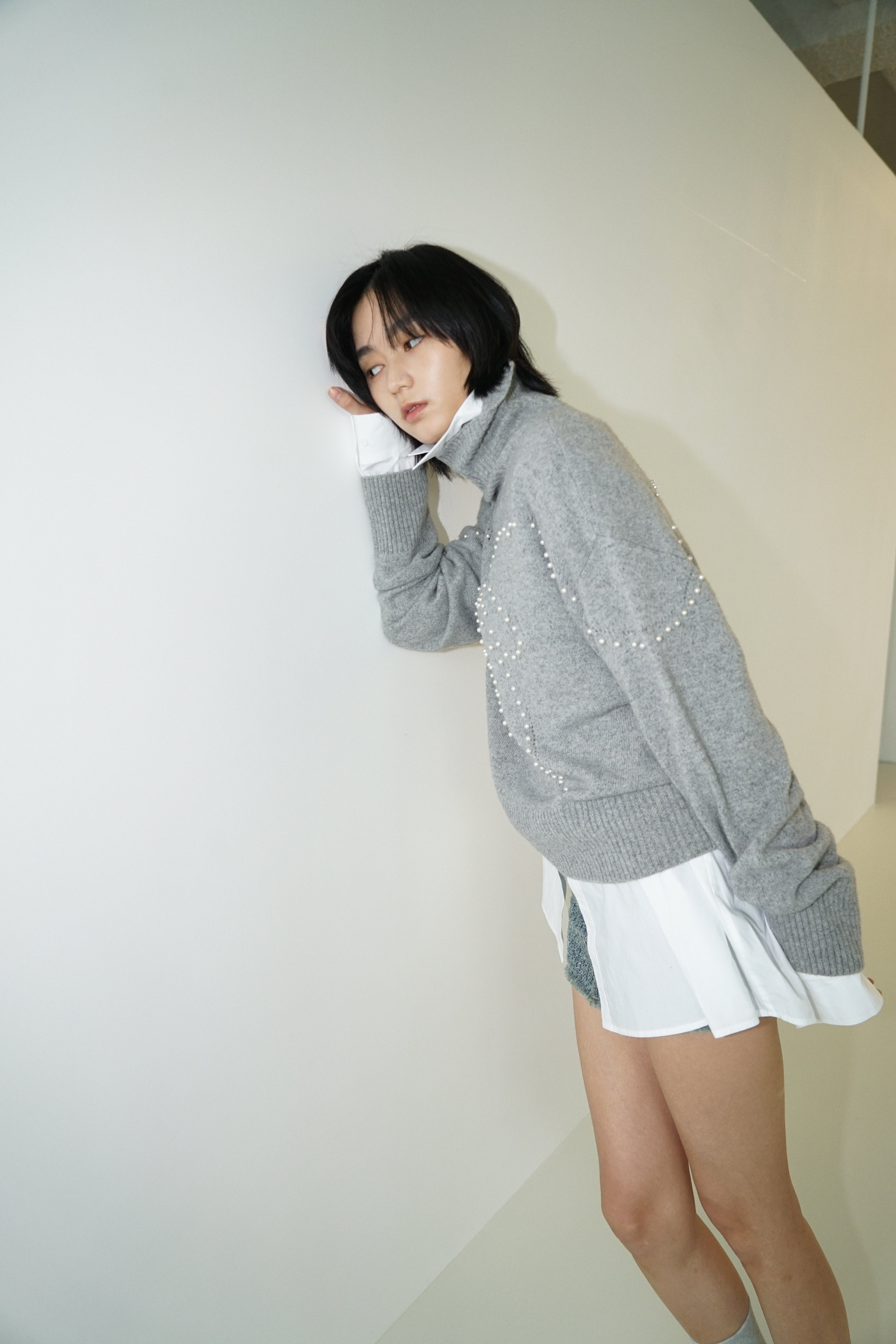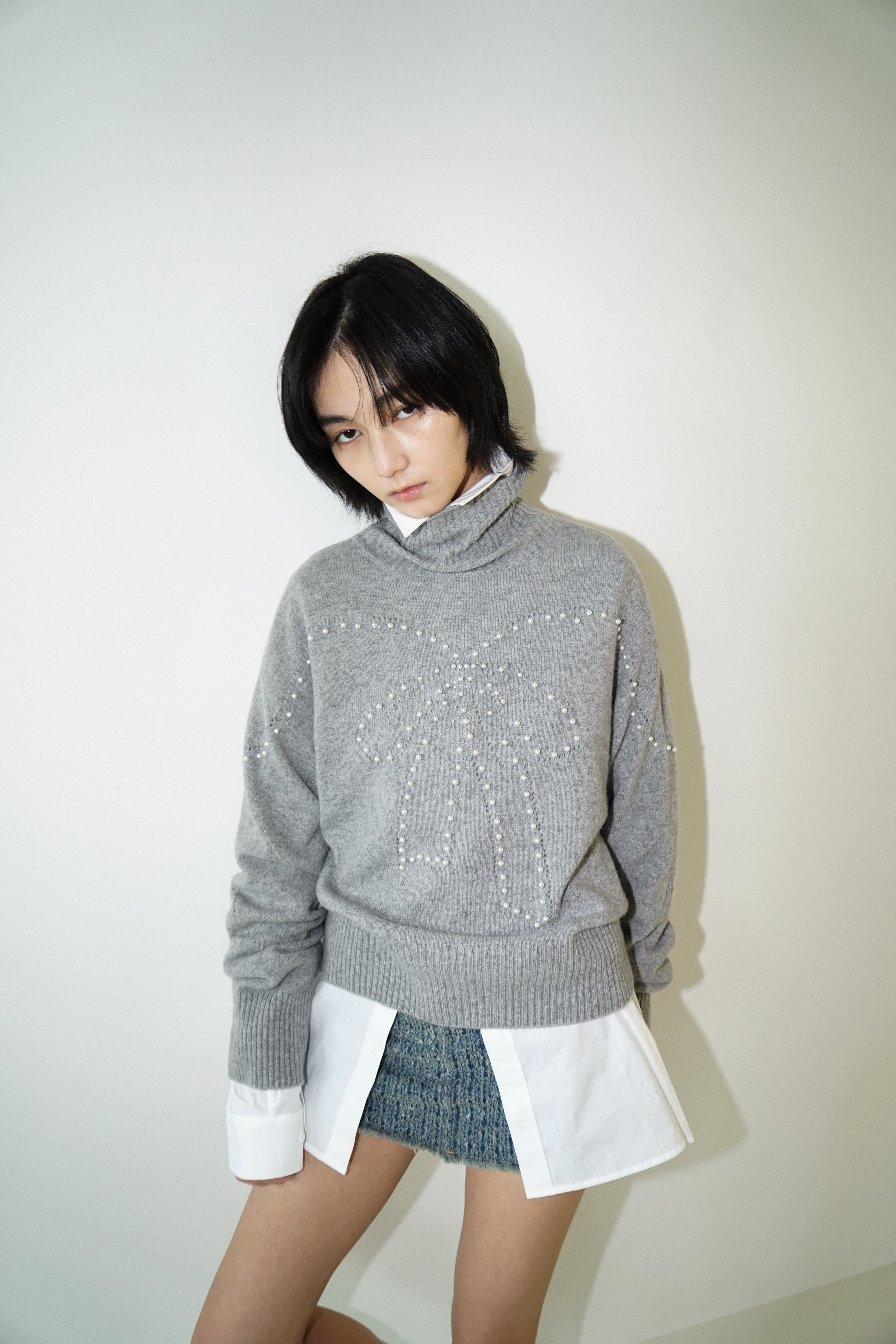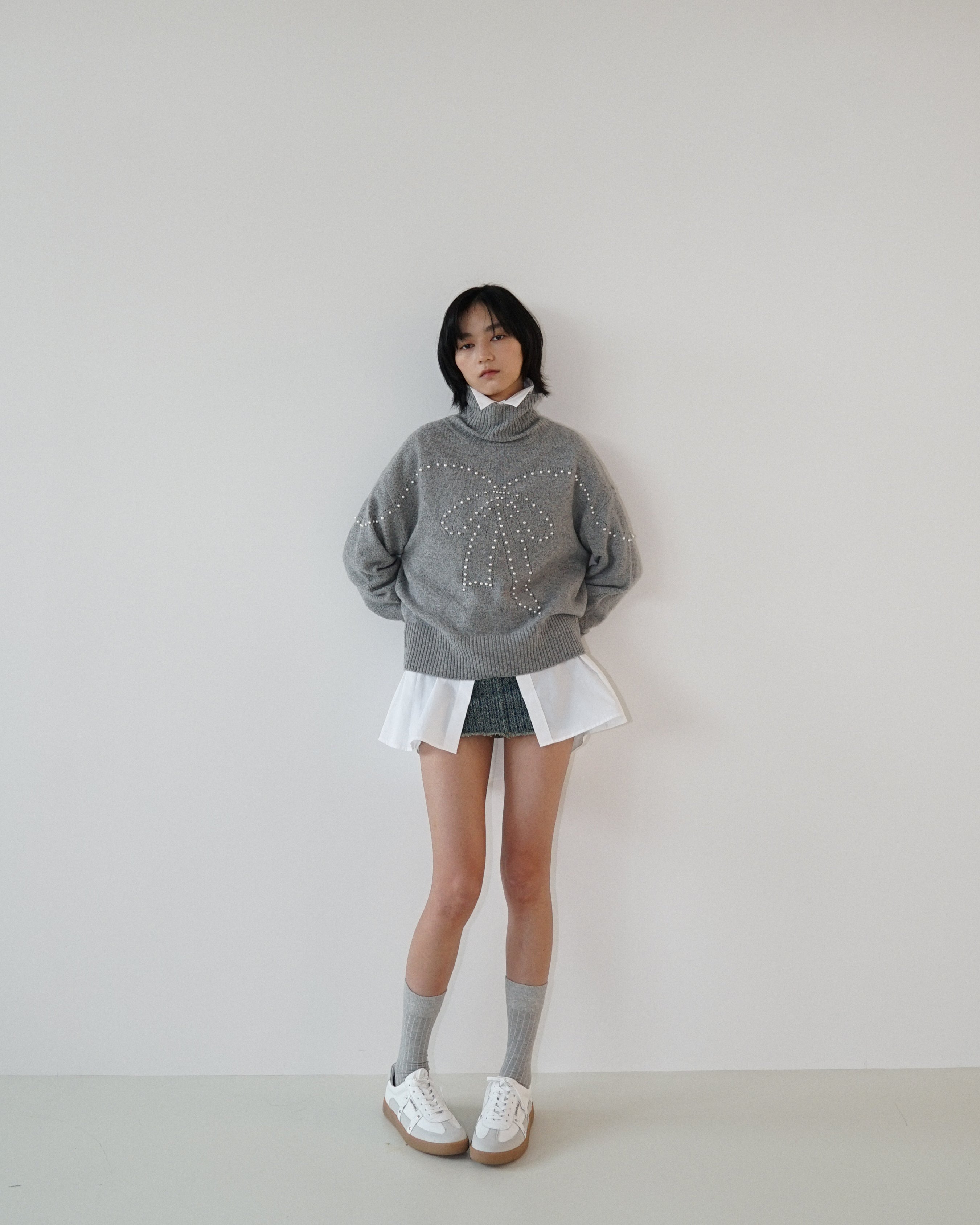 Turtle Neck Sweater (Light Melange Grey)