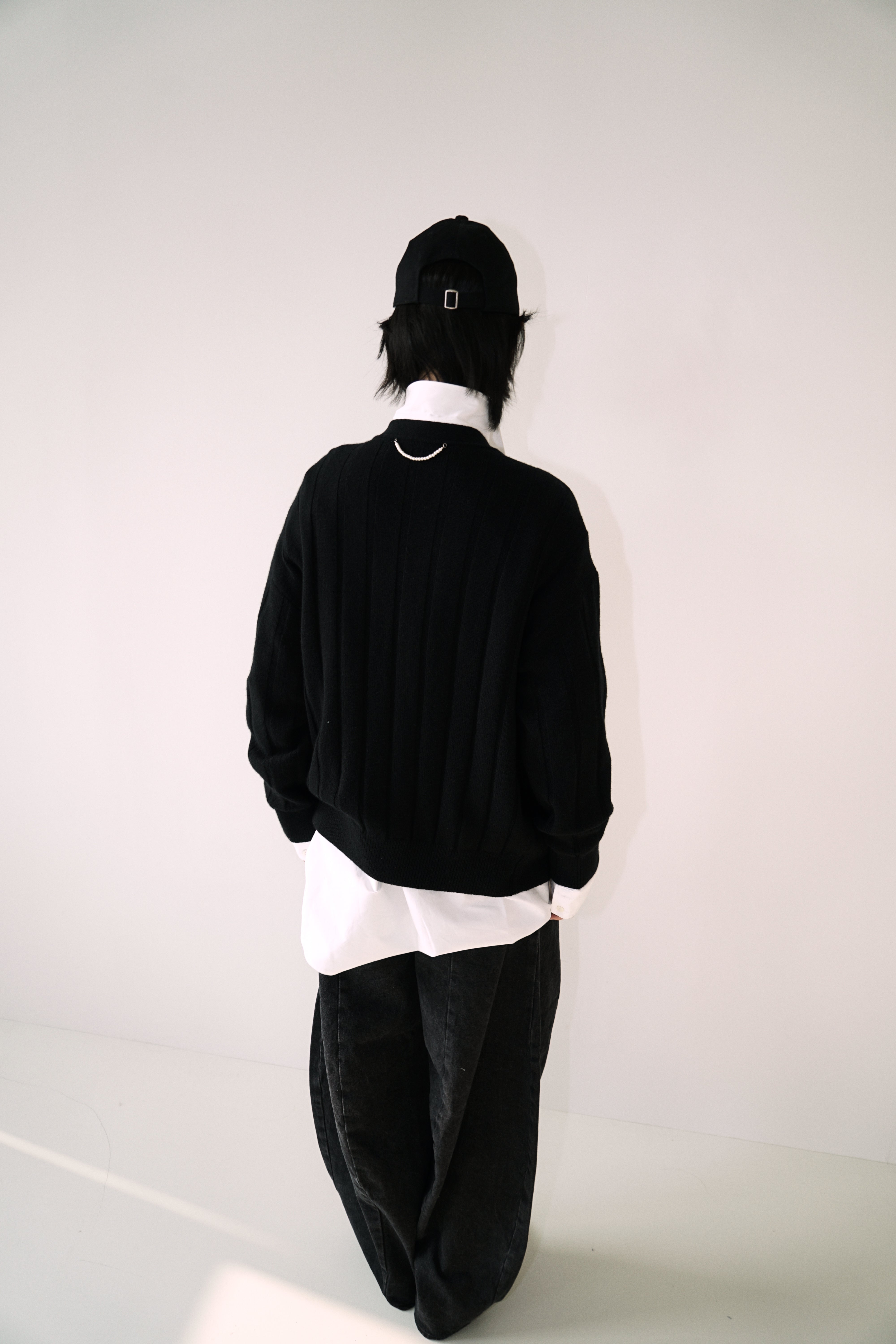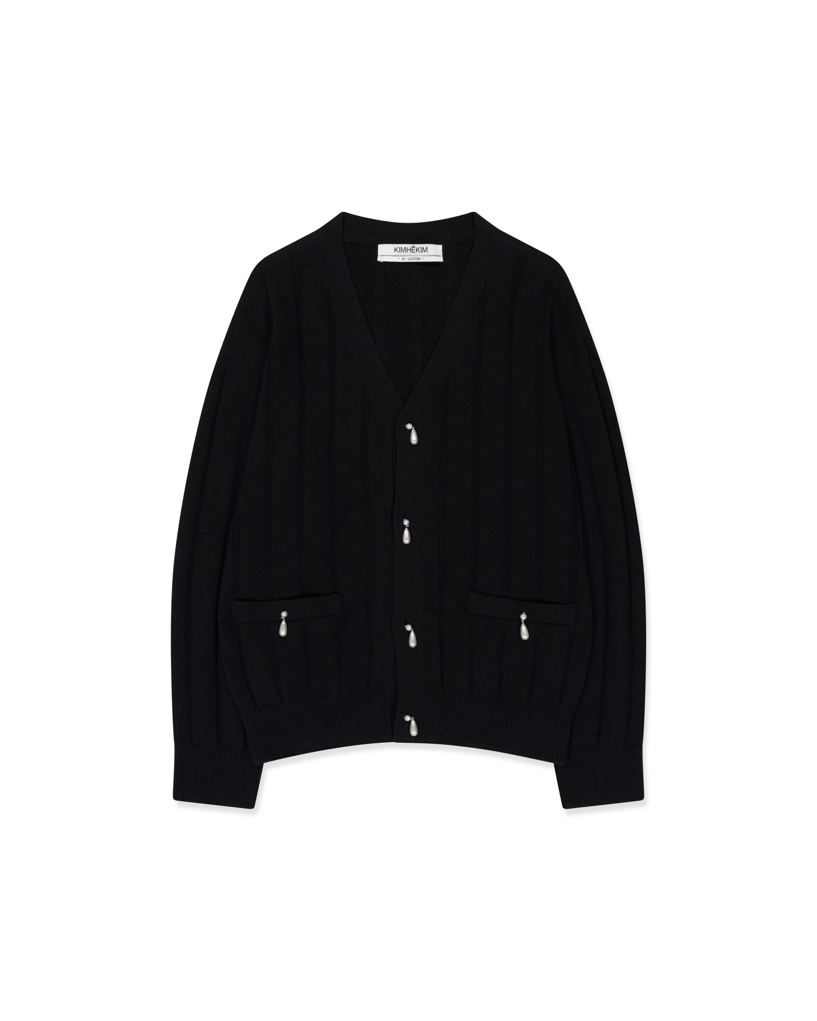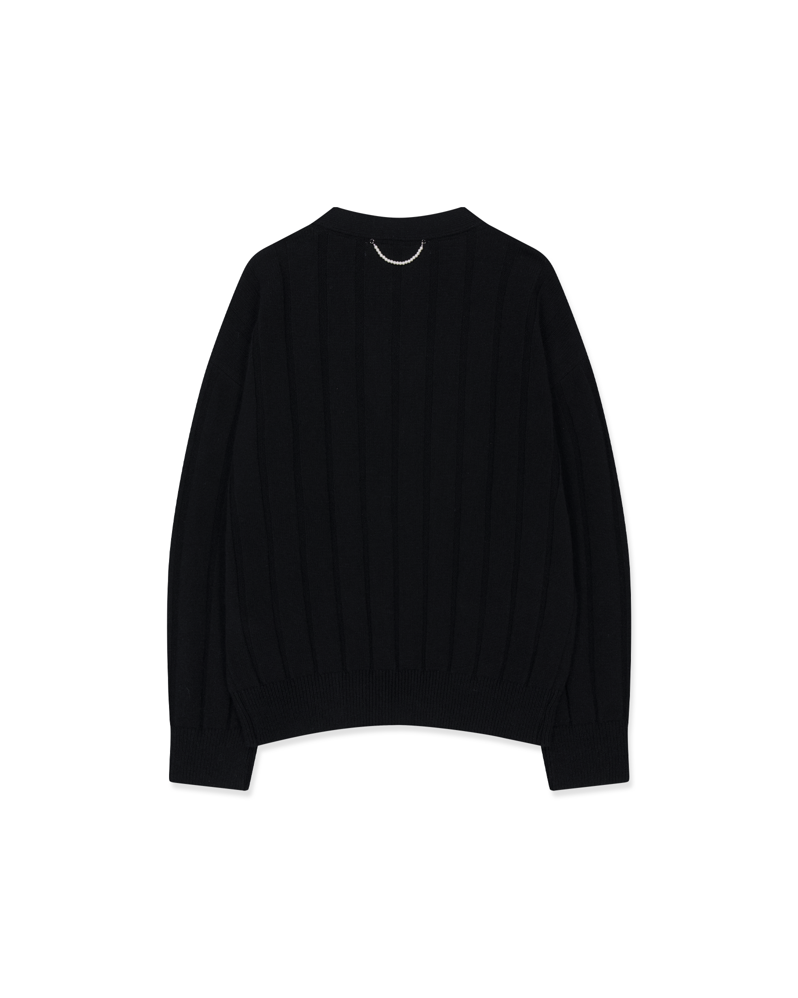 Pearl Embellished V-Neck Cardigan (Black)
