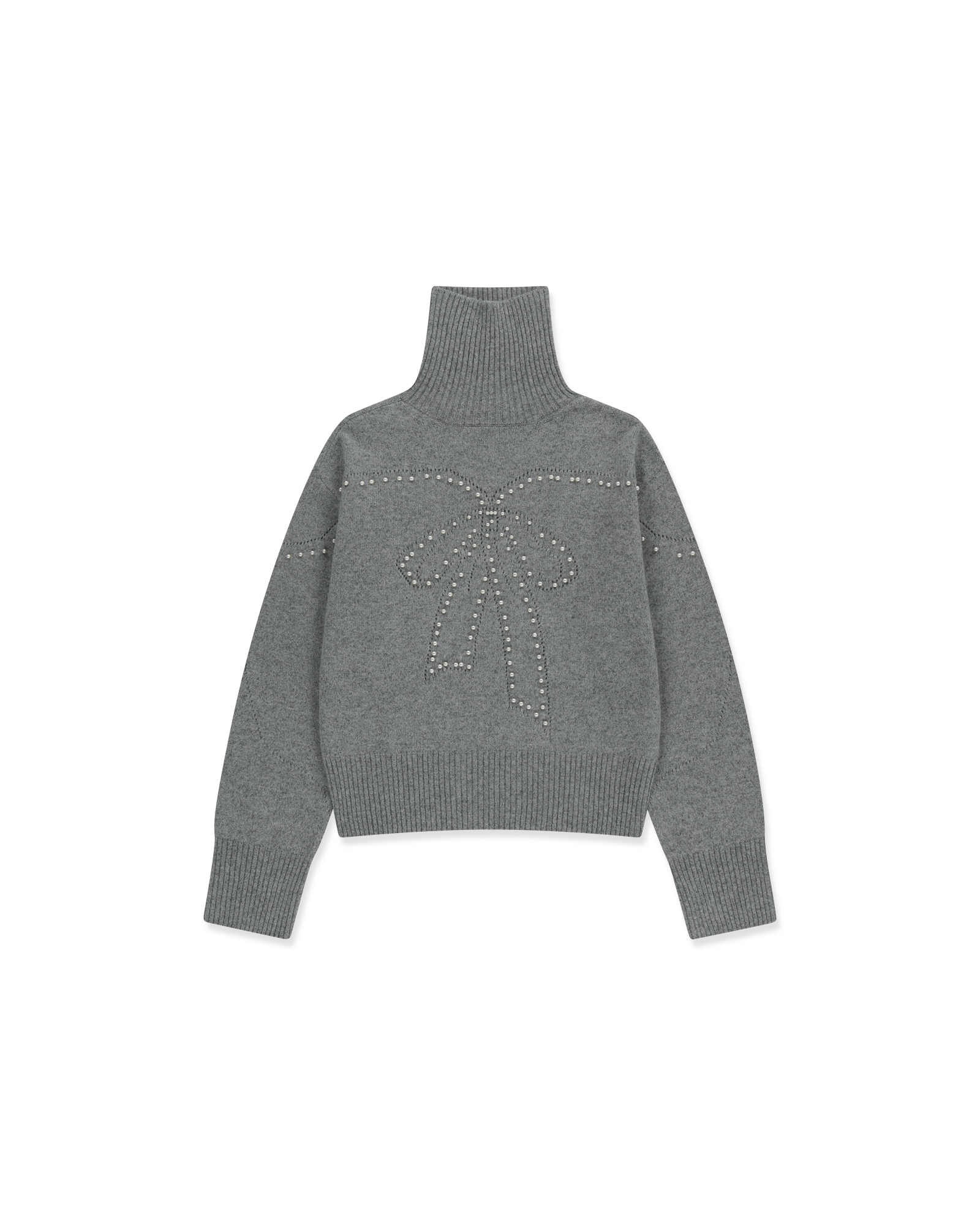 Pearl Embellished Pointelle Sweater (Grey)