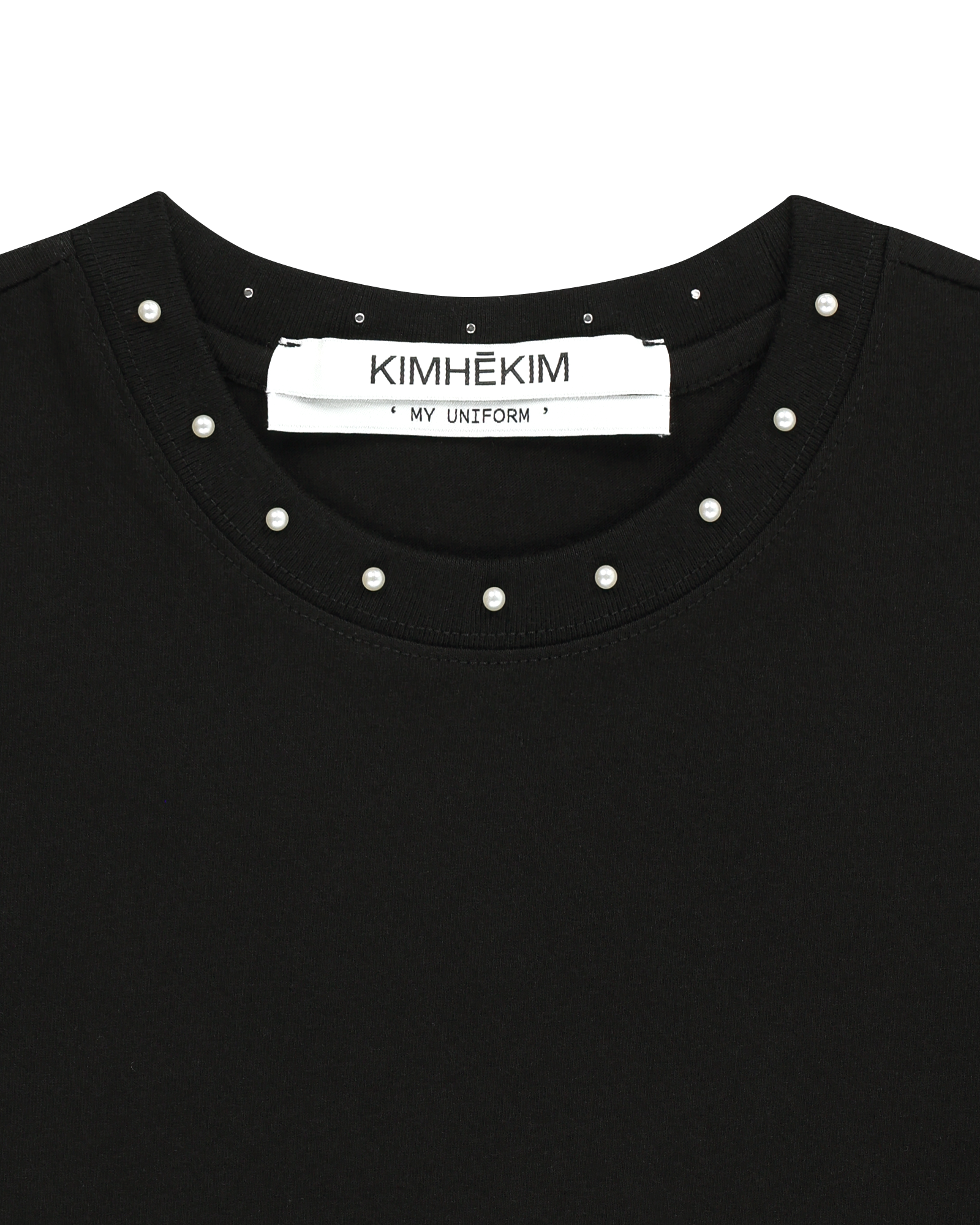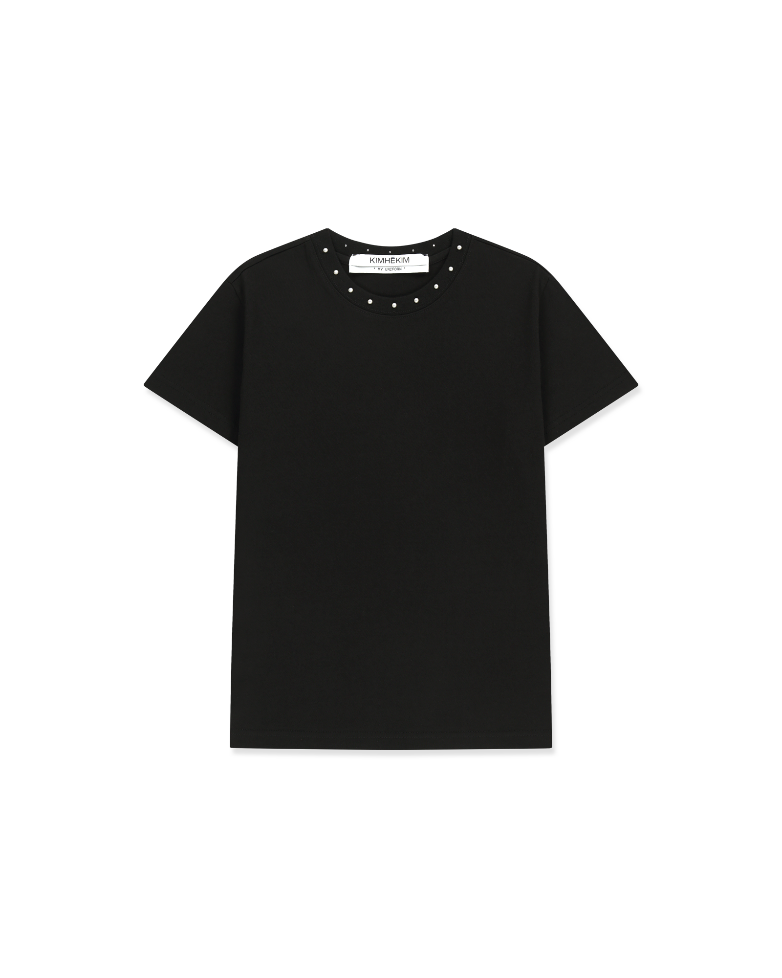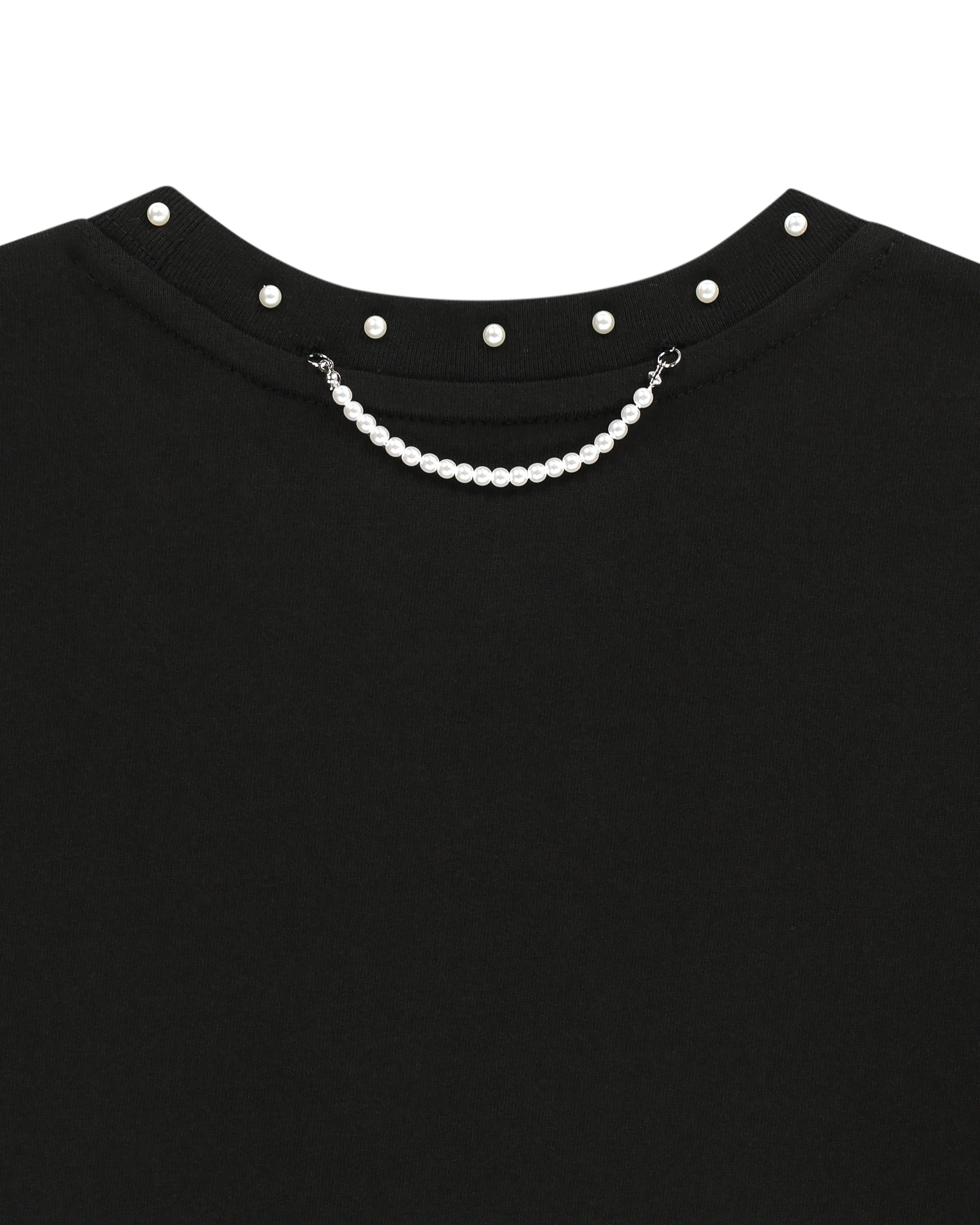 Pearl Embellished Neck Line Slim Fit T-Shirt (Black)