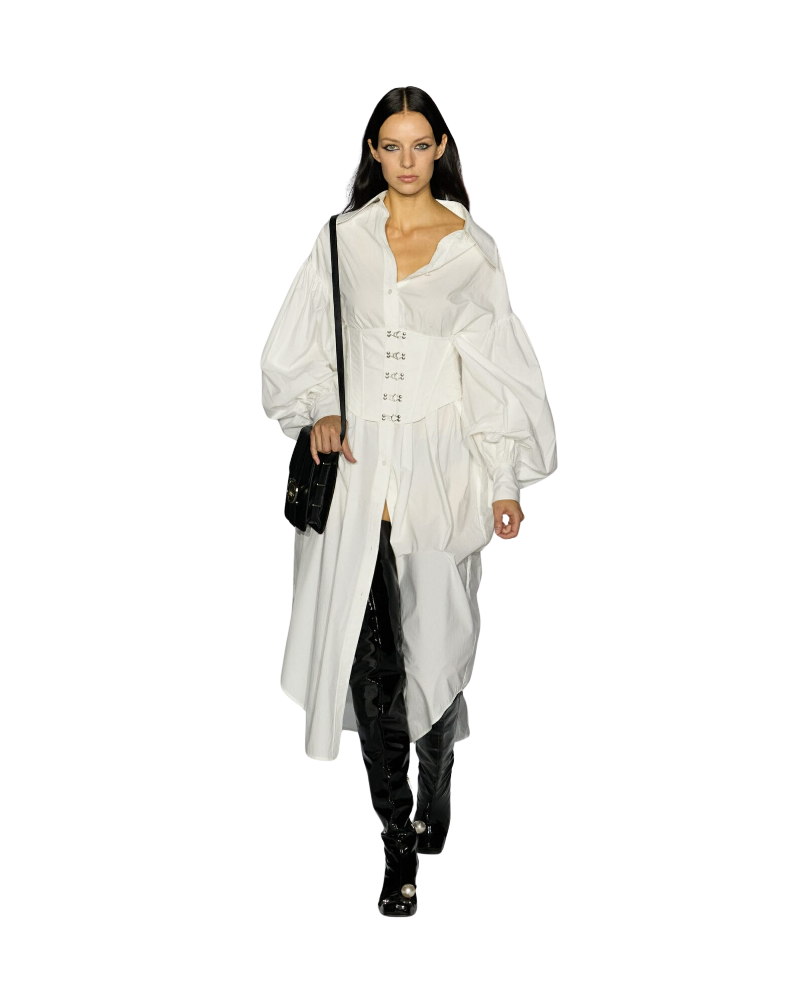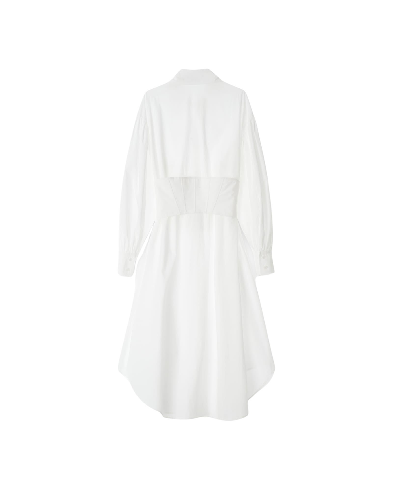 Corset Layered Cotton Maxi Shirt Dress (White)