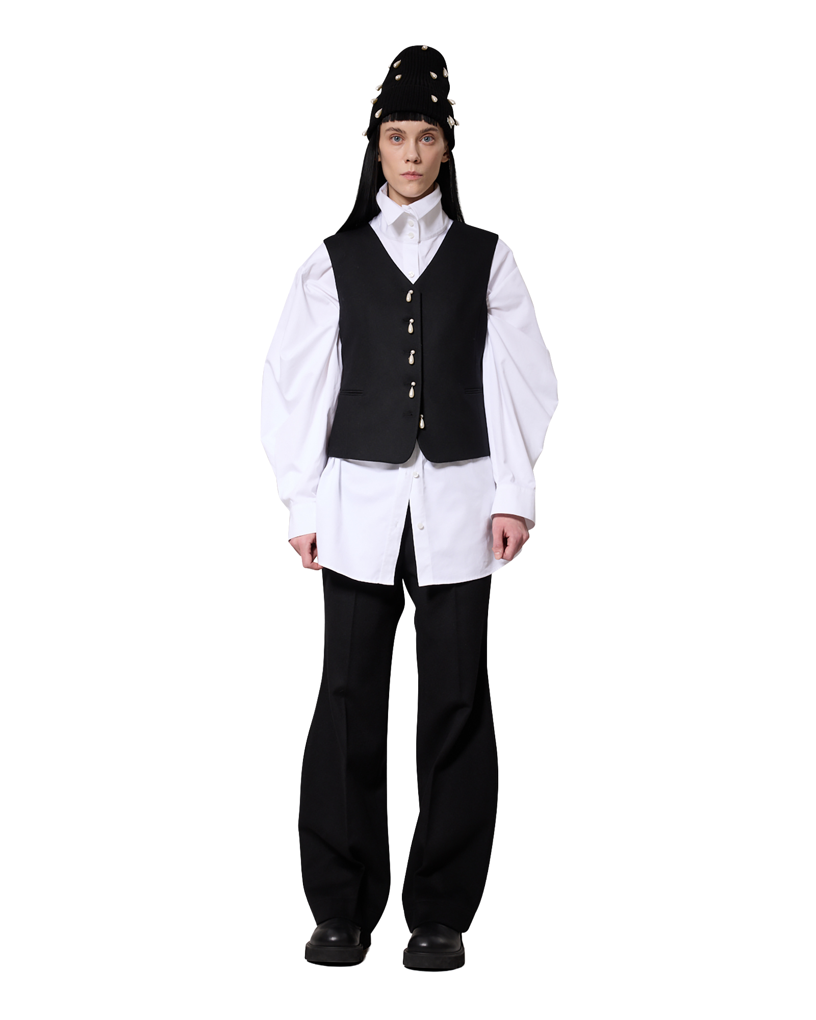 Pearl Embellished Wool-Silk Balloon Trousers (Black)