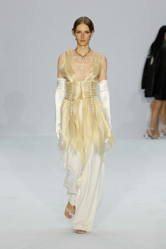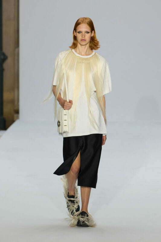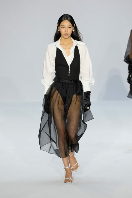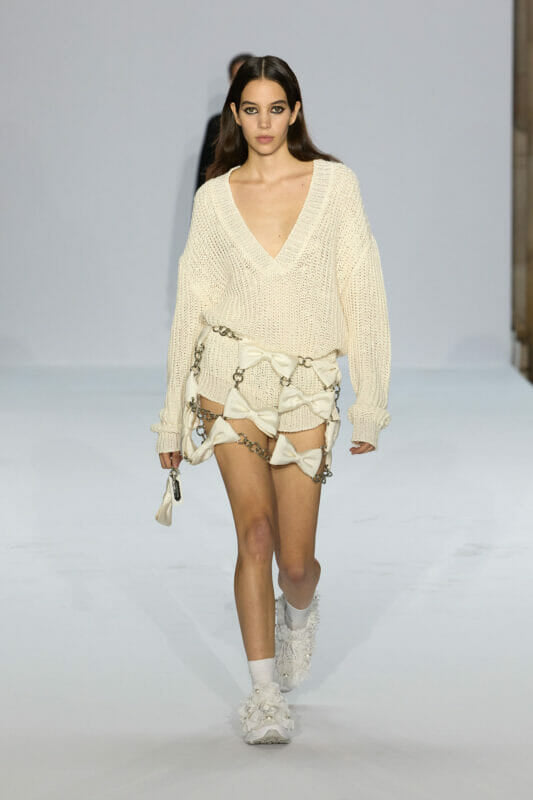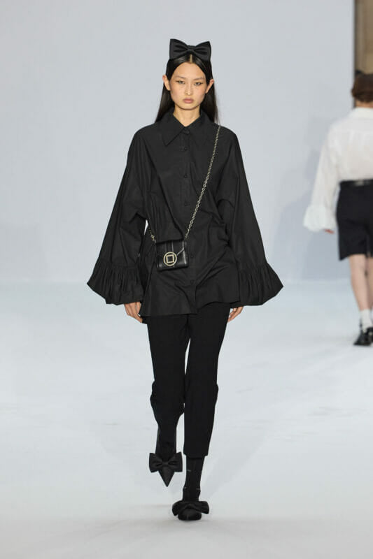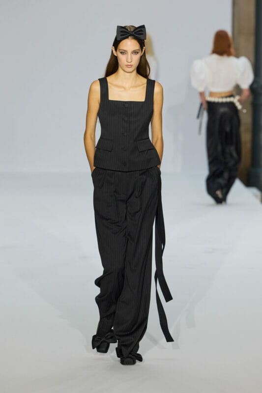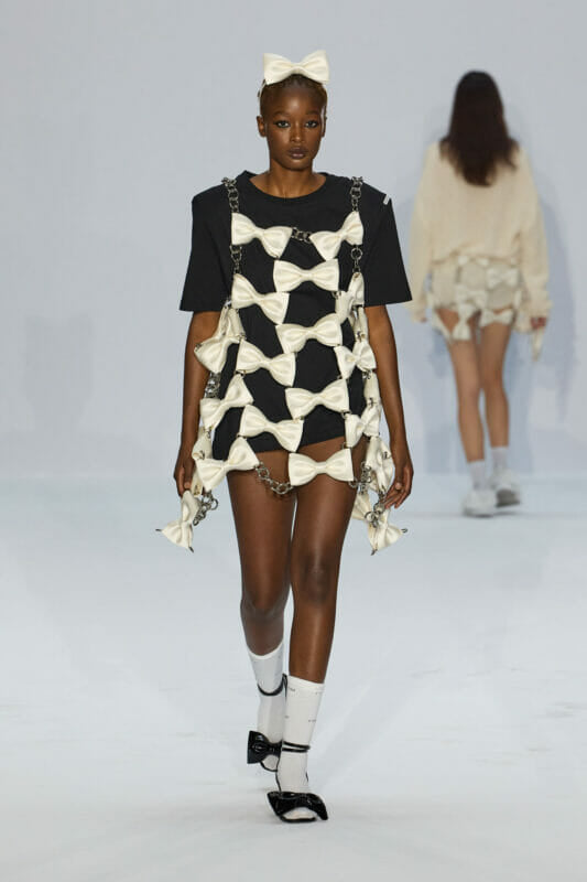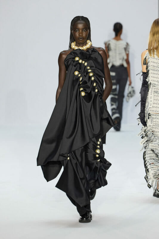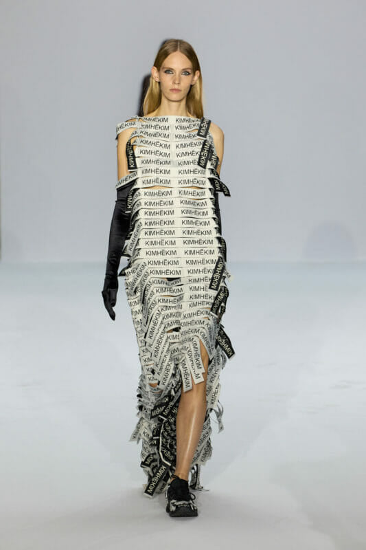 The collection weaves playful details like ribbons, organza, pearls, hair, and brand labels into every piece, highlighting KIMHĒKIM’s unique DNA. It also draws inspiration from vintage couture through tailored silhouettes.