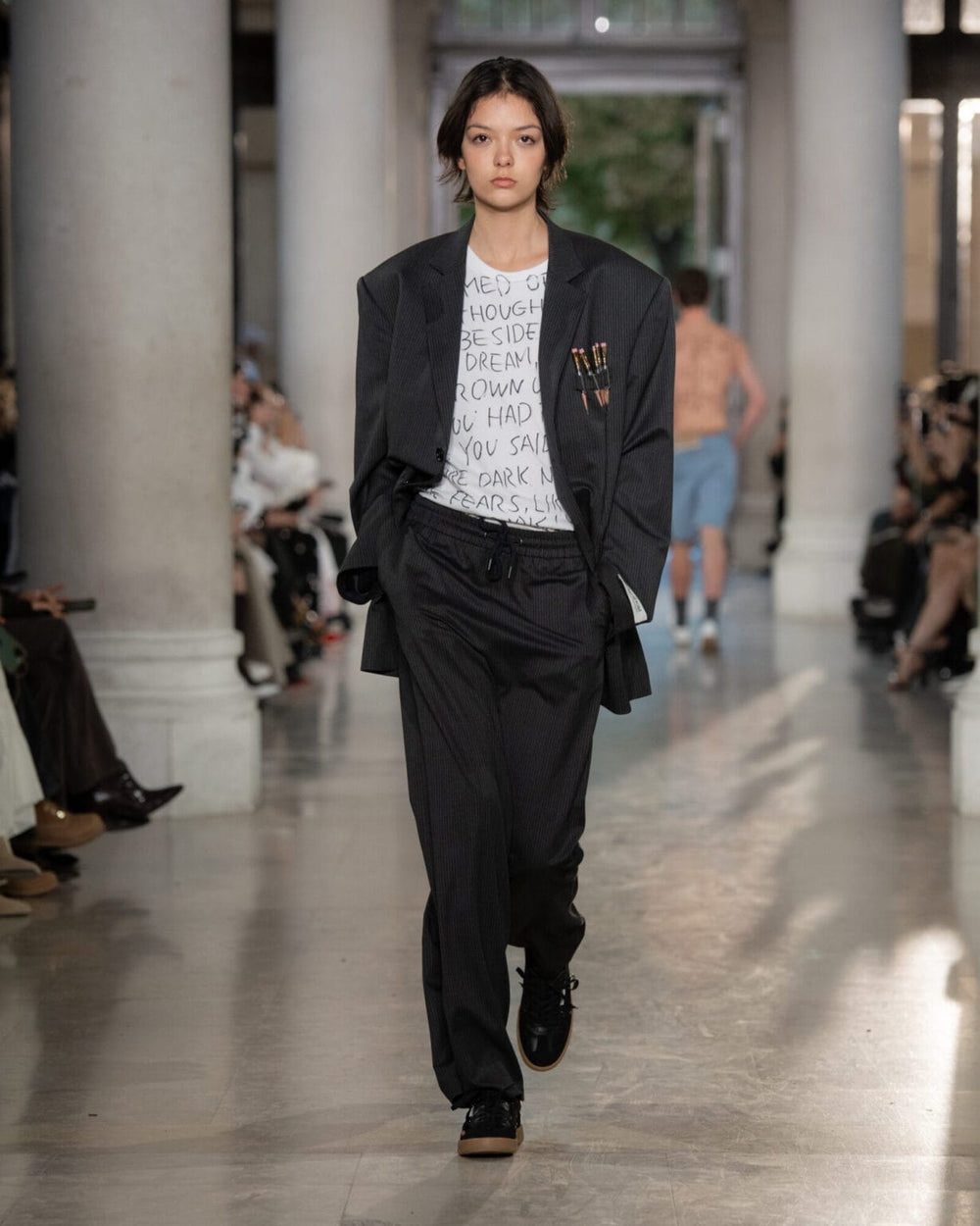 Designer Kimintē envisioned a unique Finale that captures the essence of ‘Dreamers.’ Instead of a typical model walk and bow, he aimed to give the audience a fresh experience. Models step out and then collapse on the runway as if they were falling asleep. This moment symbolize both the audience and models entering a dream world, and their awaken represents them still living in a dream rather than returning to their previous reality.
