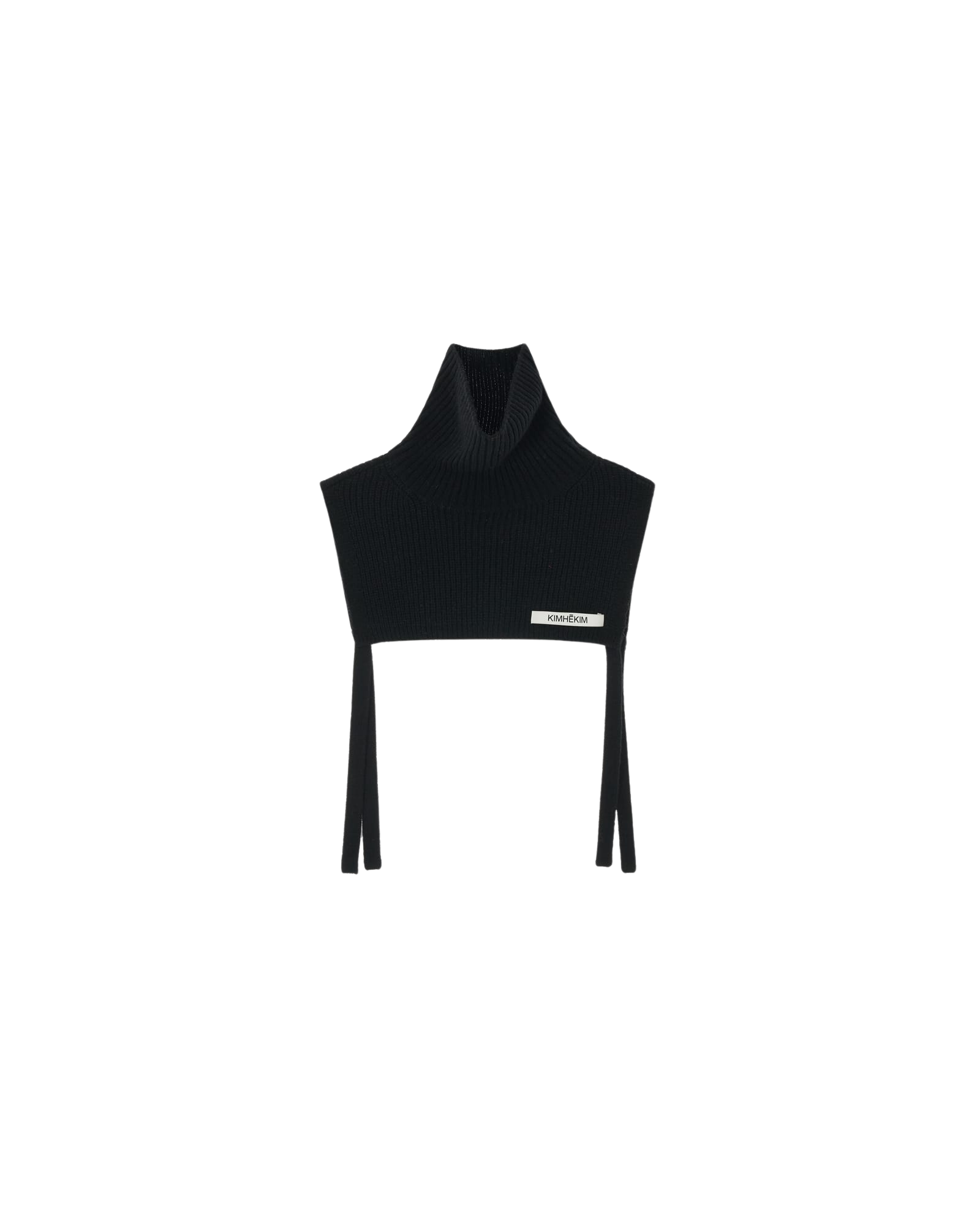 Alpaca Blend Knitted String Neck Warmer (Black)