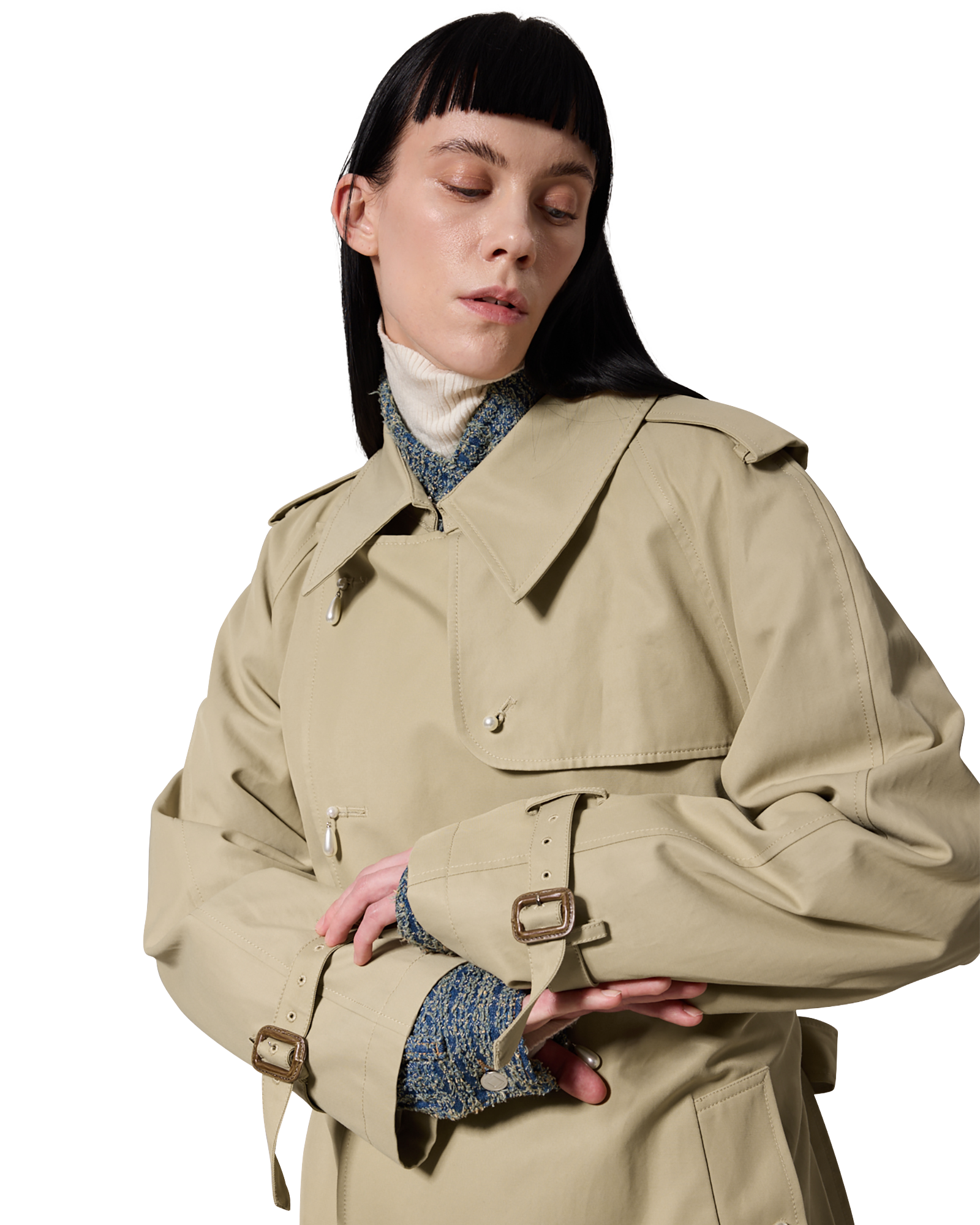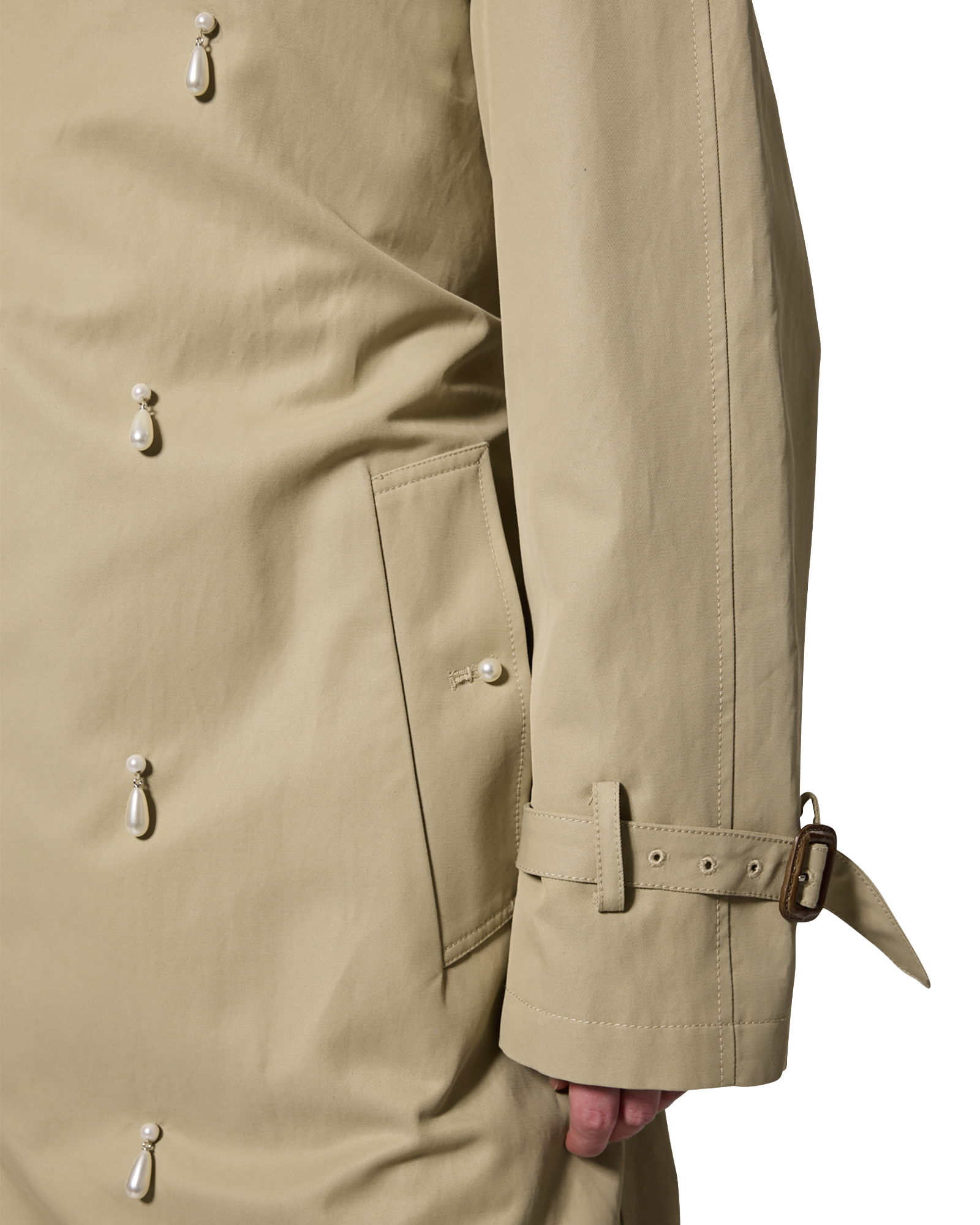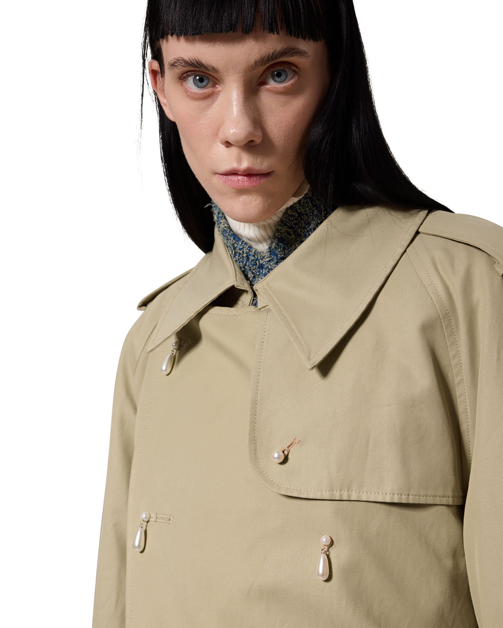 COMPOSITION - FABRIC : COTTON 60%, POLYESTER 40% LINING : CUPRA 50%, POLYESTER 50% TRIM : ACRYLIC PEARL