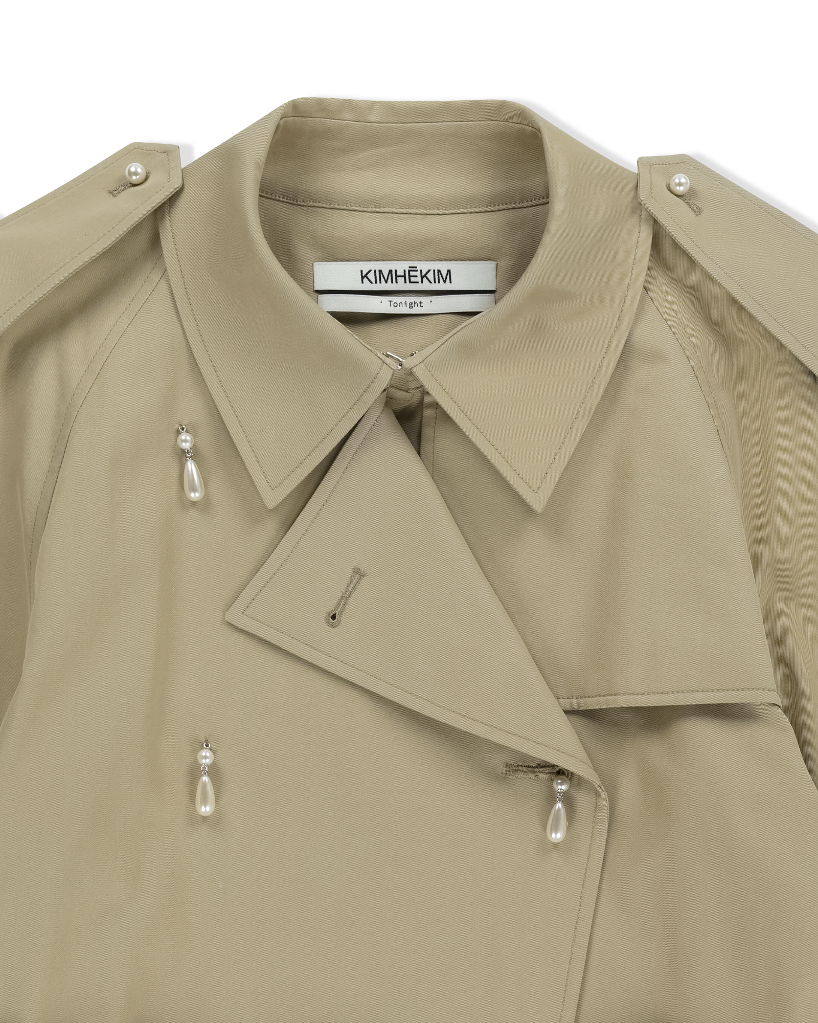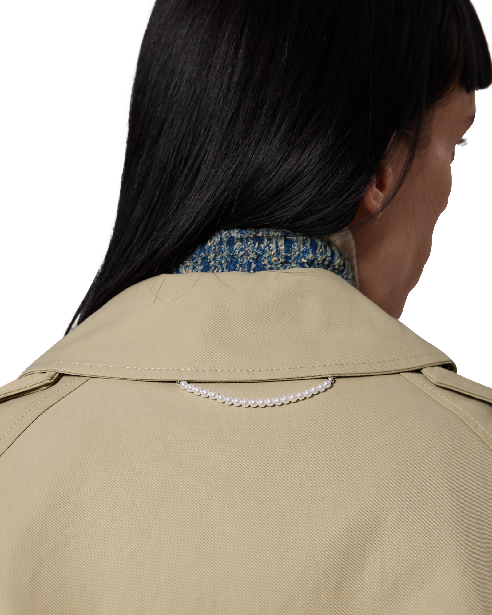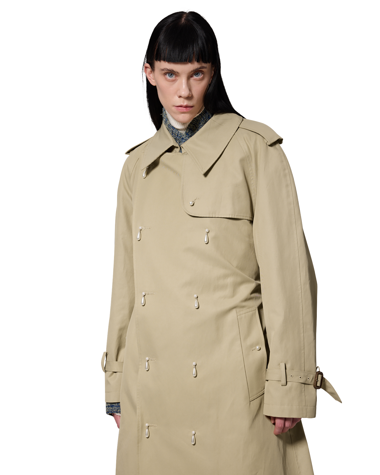 COMPOSITION - FABRIC : COTTON 60%, POLYESTER 40% LINING : CUPRA 50%, POLYESTER 50% TRIM : ACRYLIC PEARL