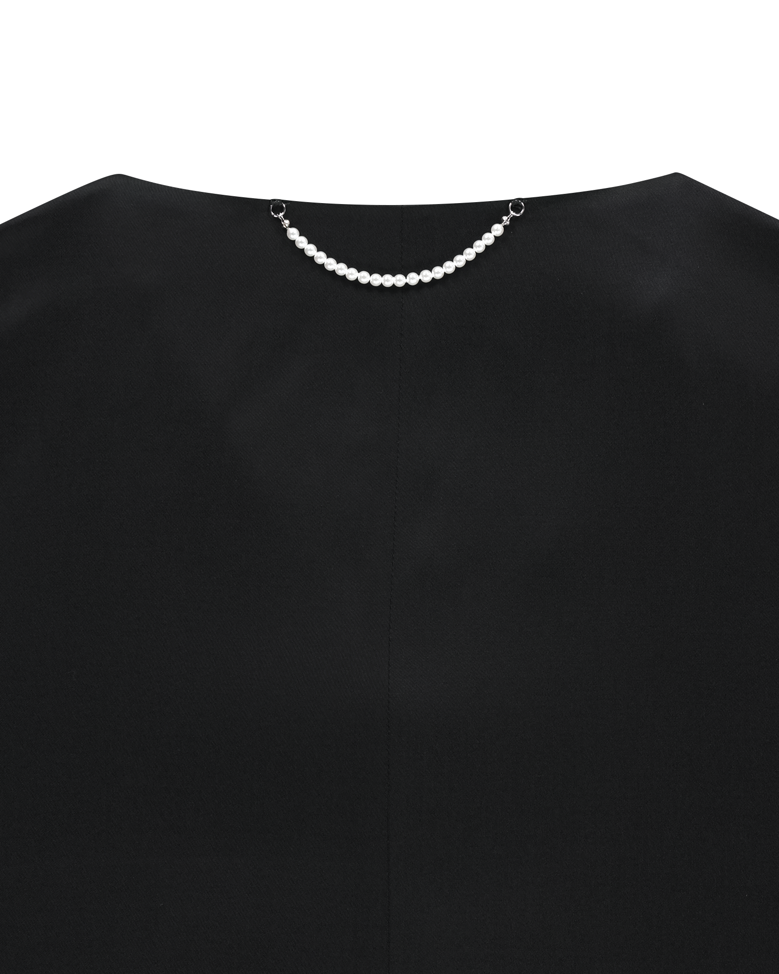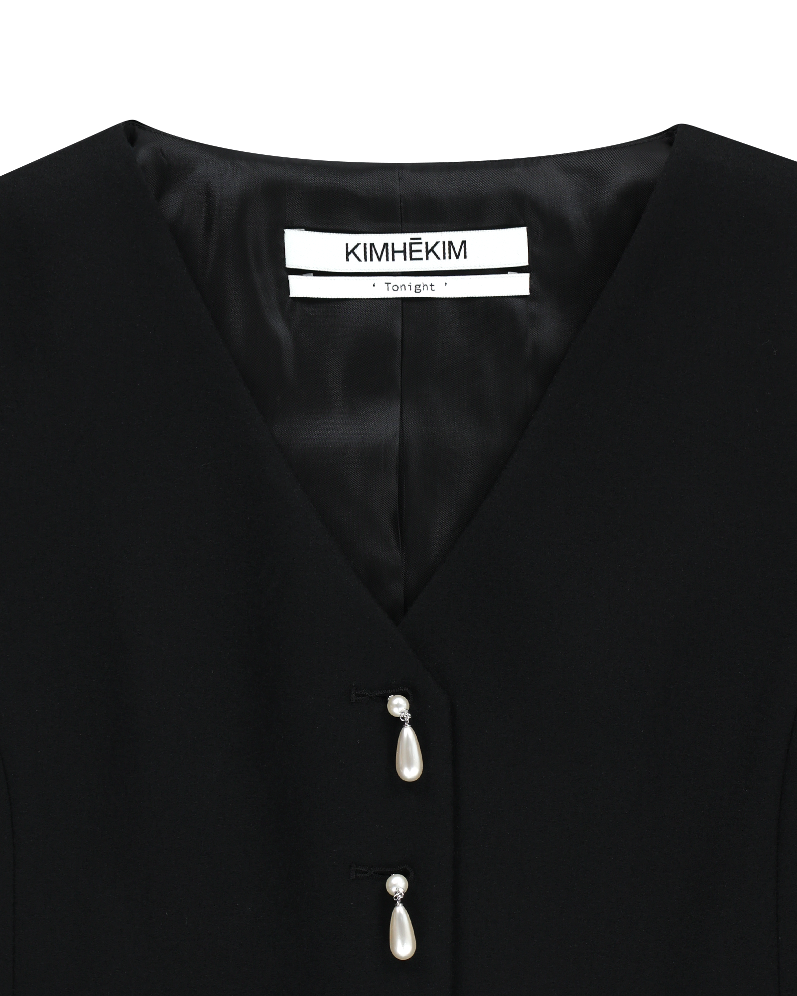 Pearl Embellished V-Neck Cardigan (Melange Dark Grey)
