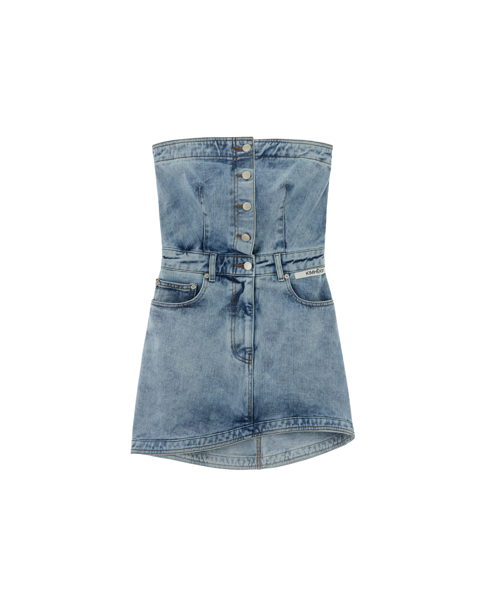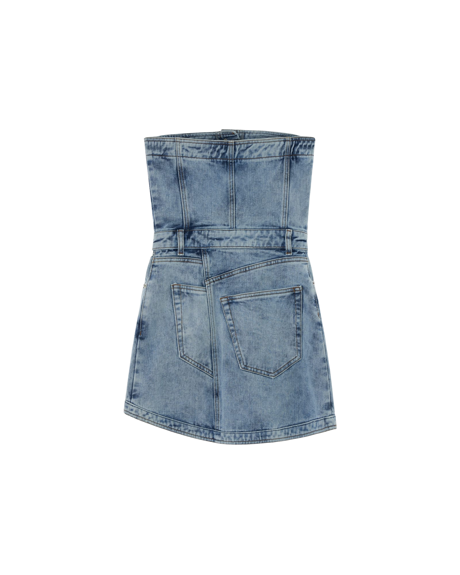 -Bandeau style denim minidress.