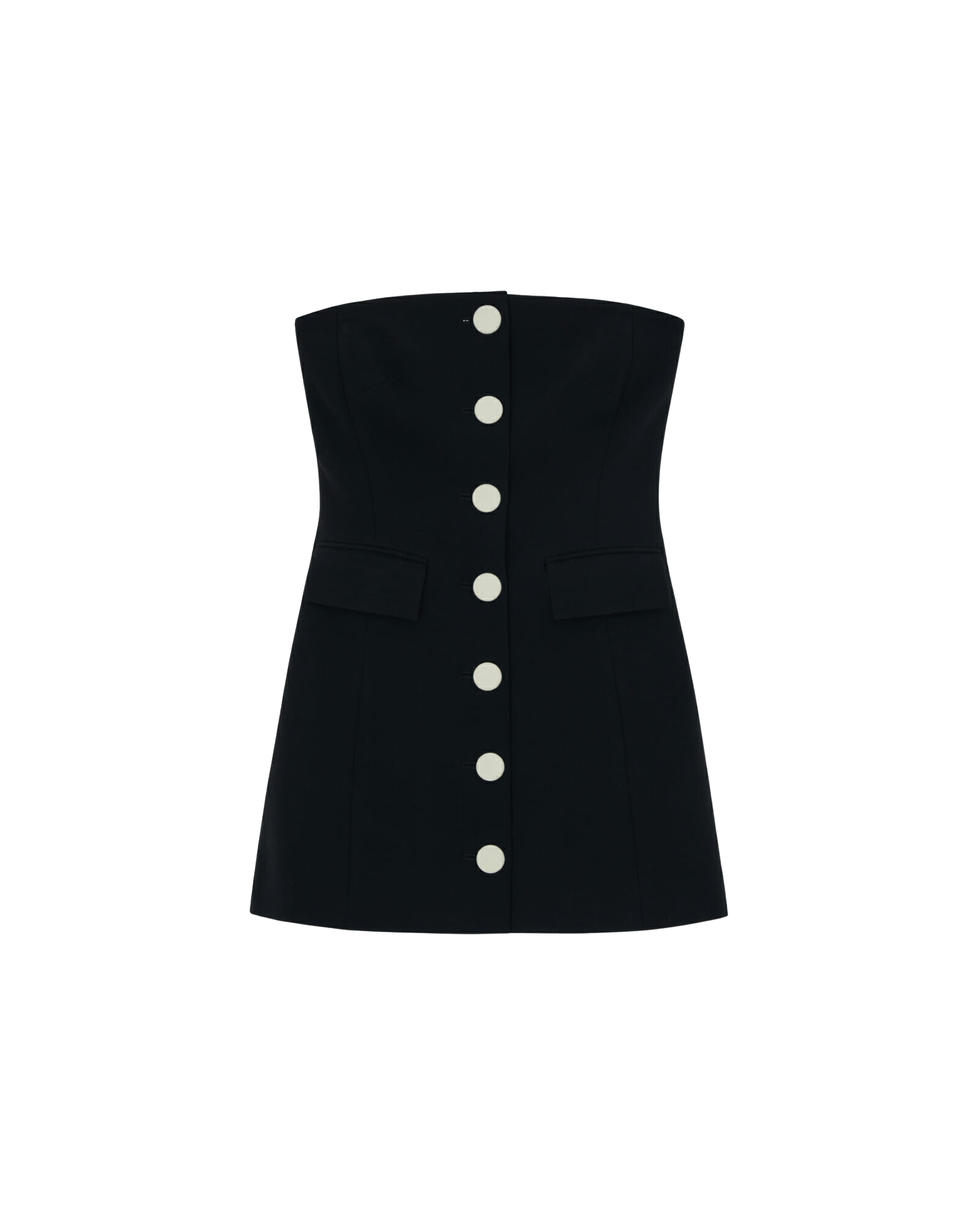 Bandeau Wool-Blended Mini Dress (Black/Ivory)