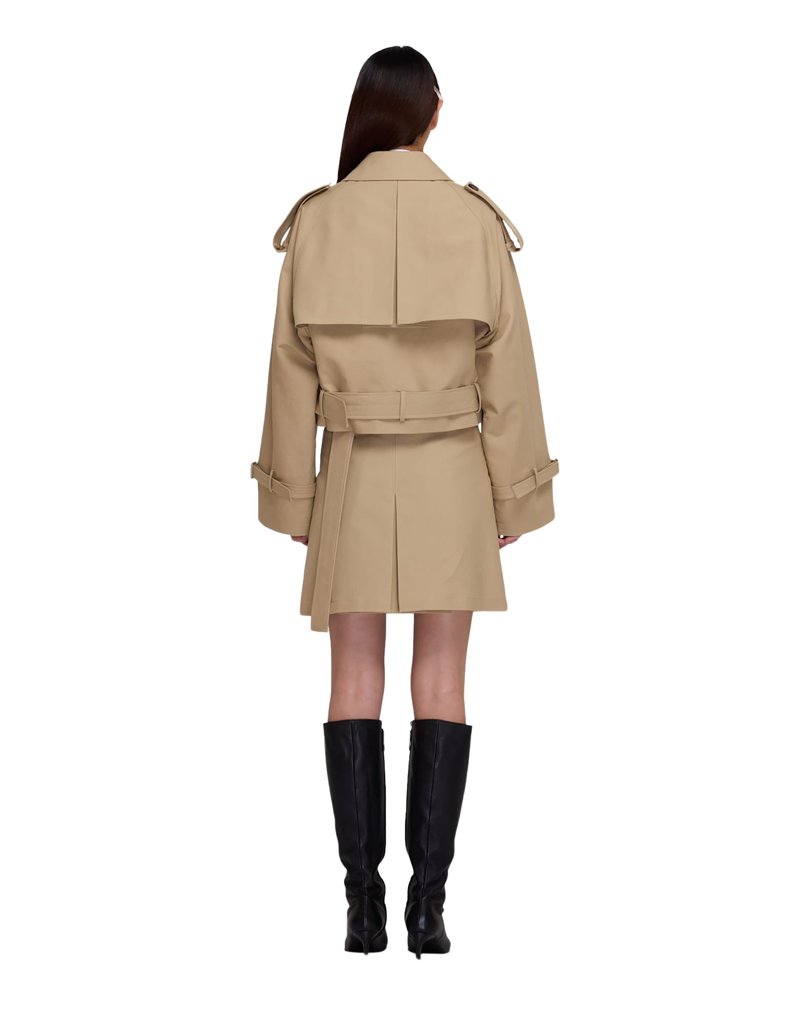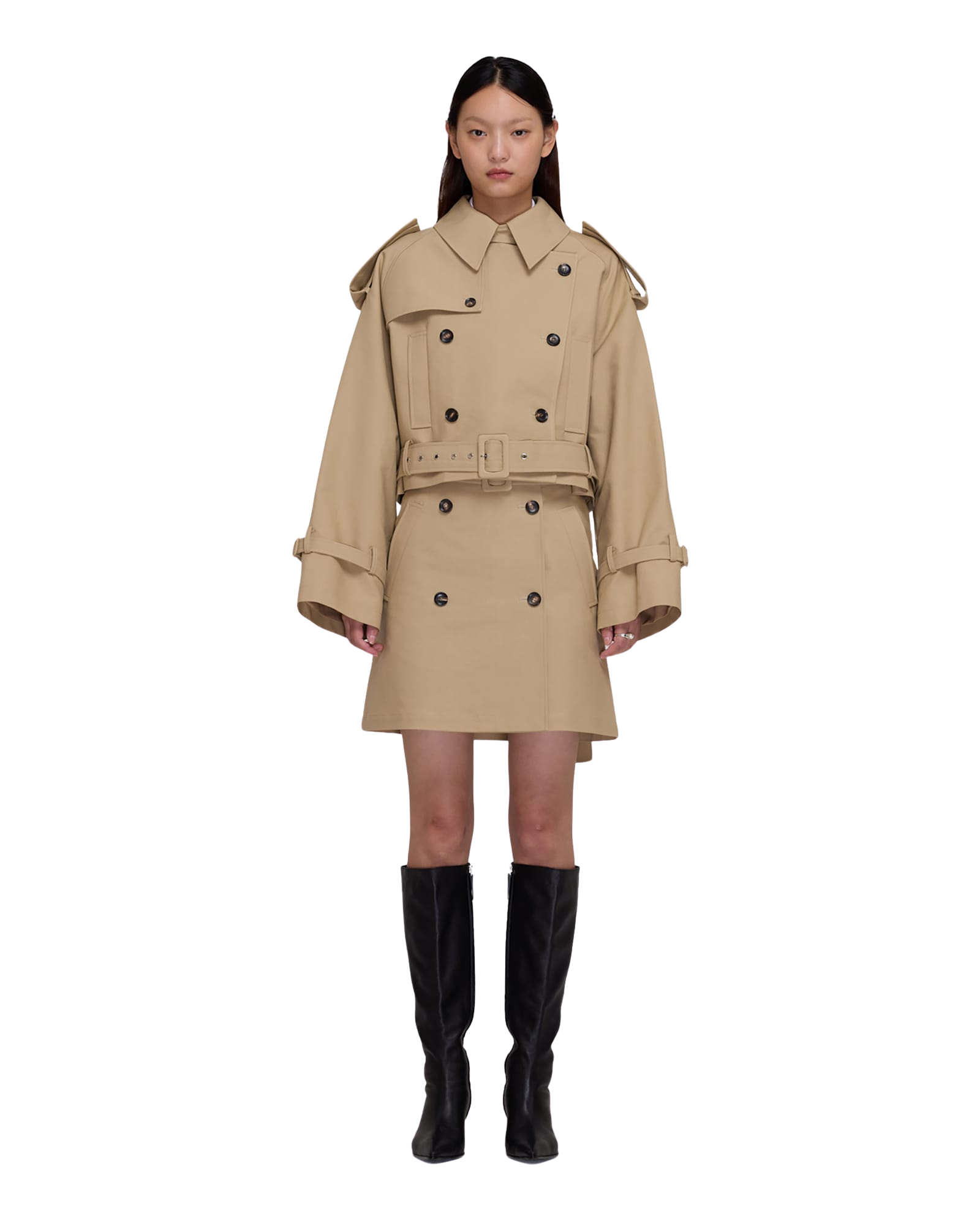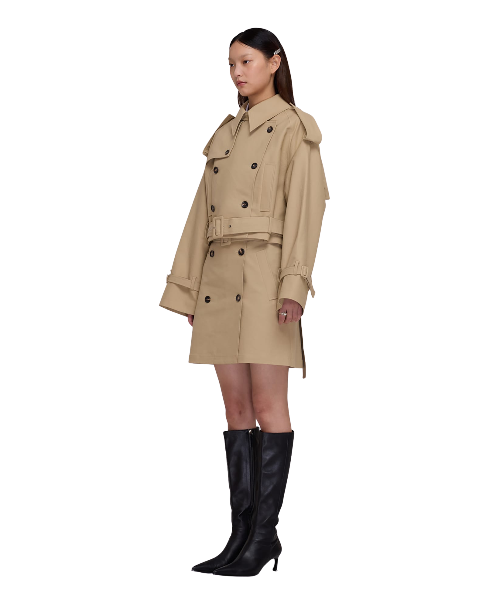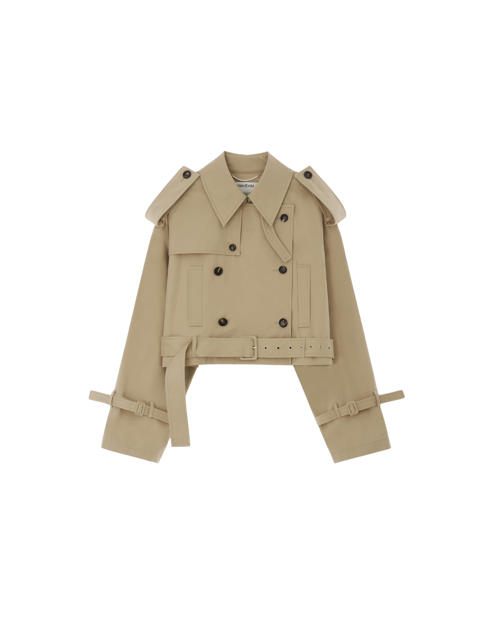 Belted Crop Double Trench Jacket (Beige)