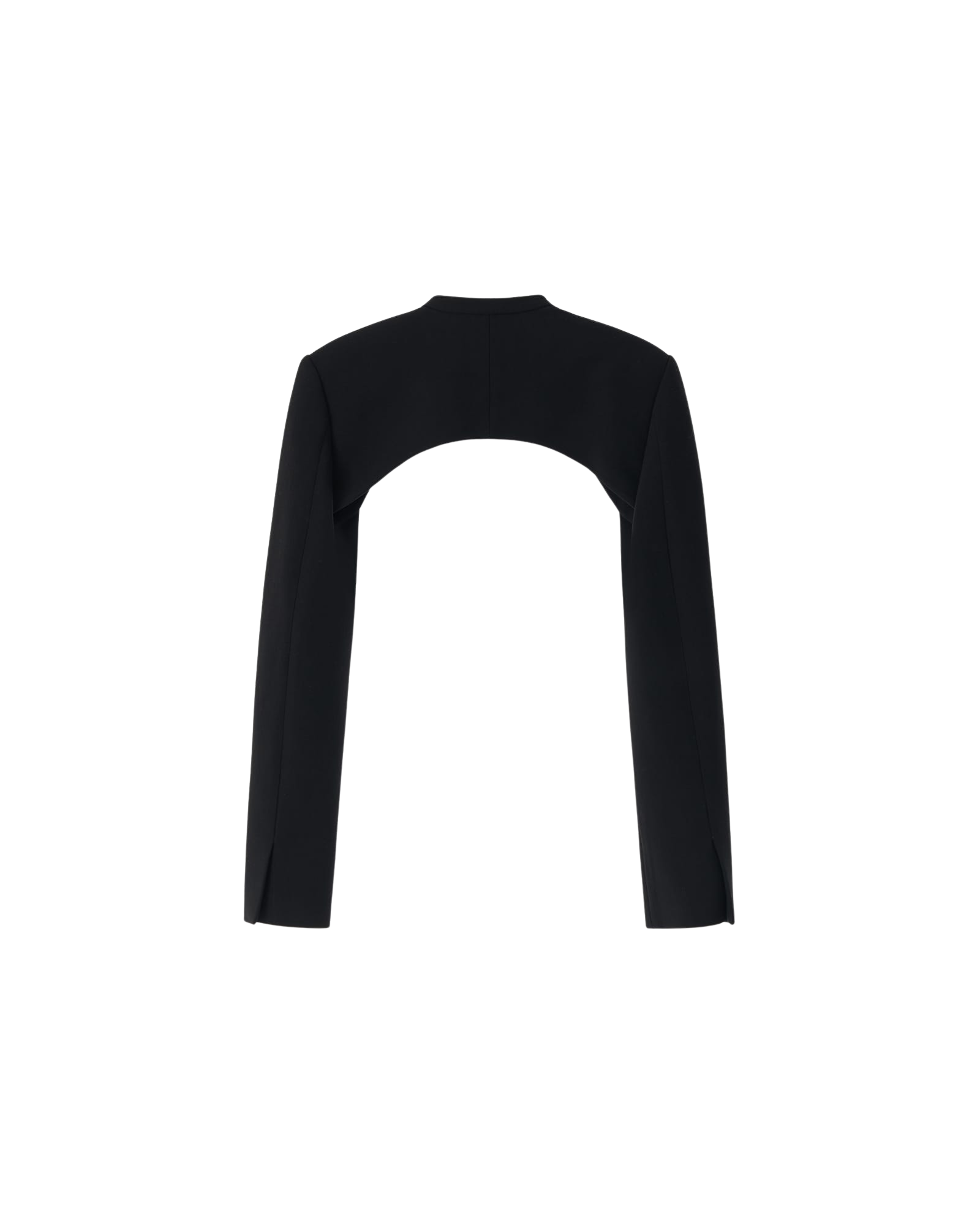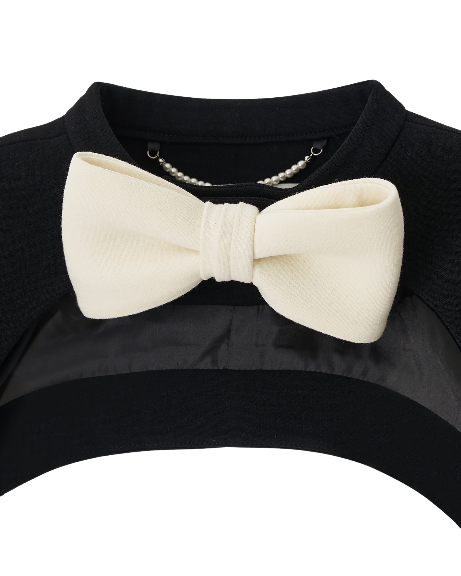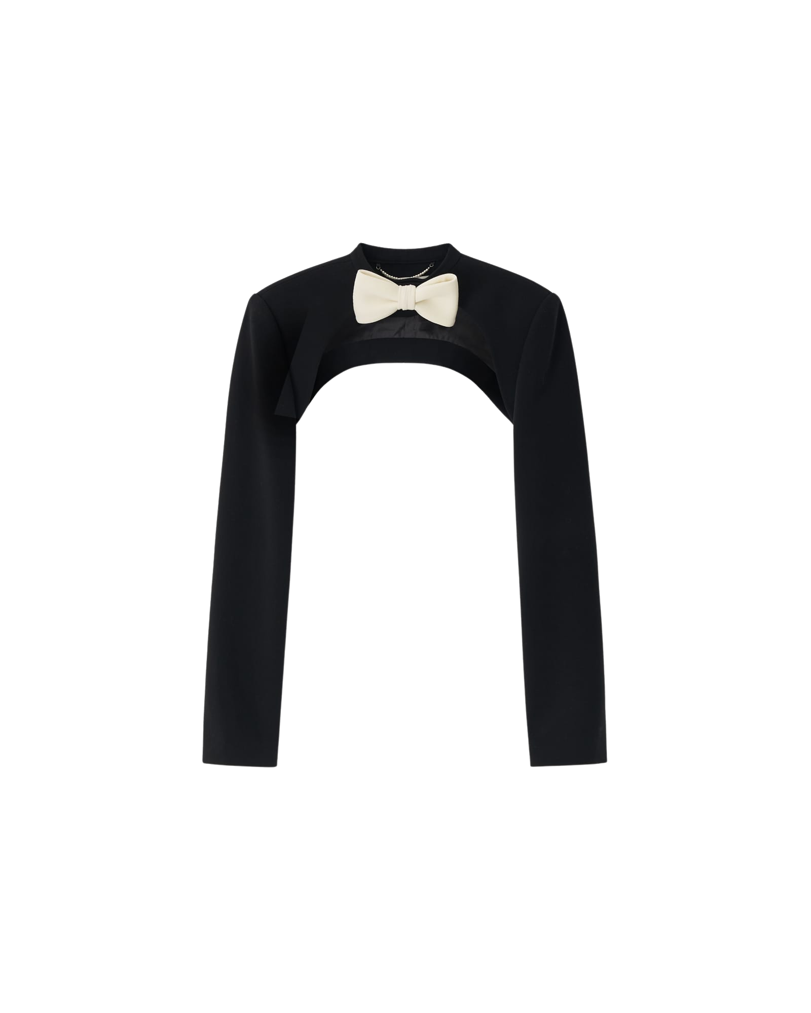 Bi-Color Bow Wool Blend Bolero Jacket (Black/Ivory)