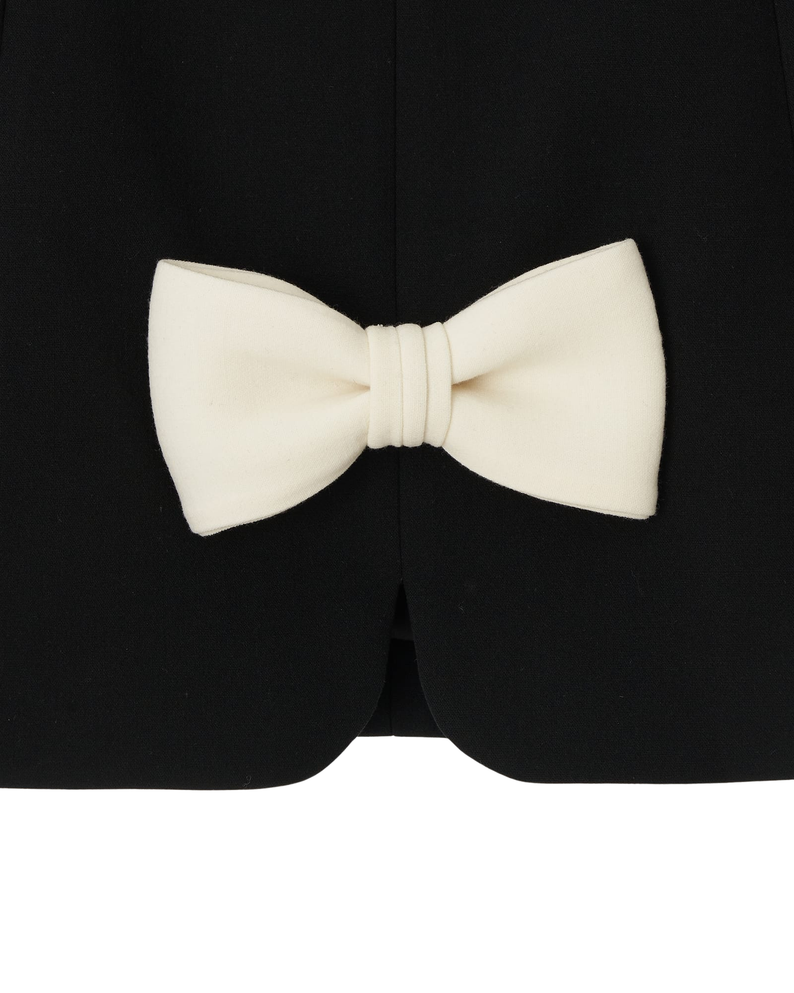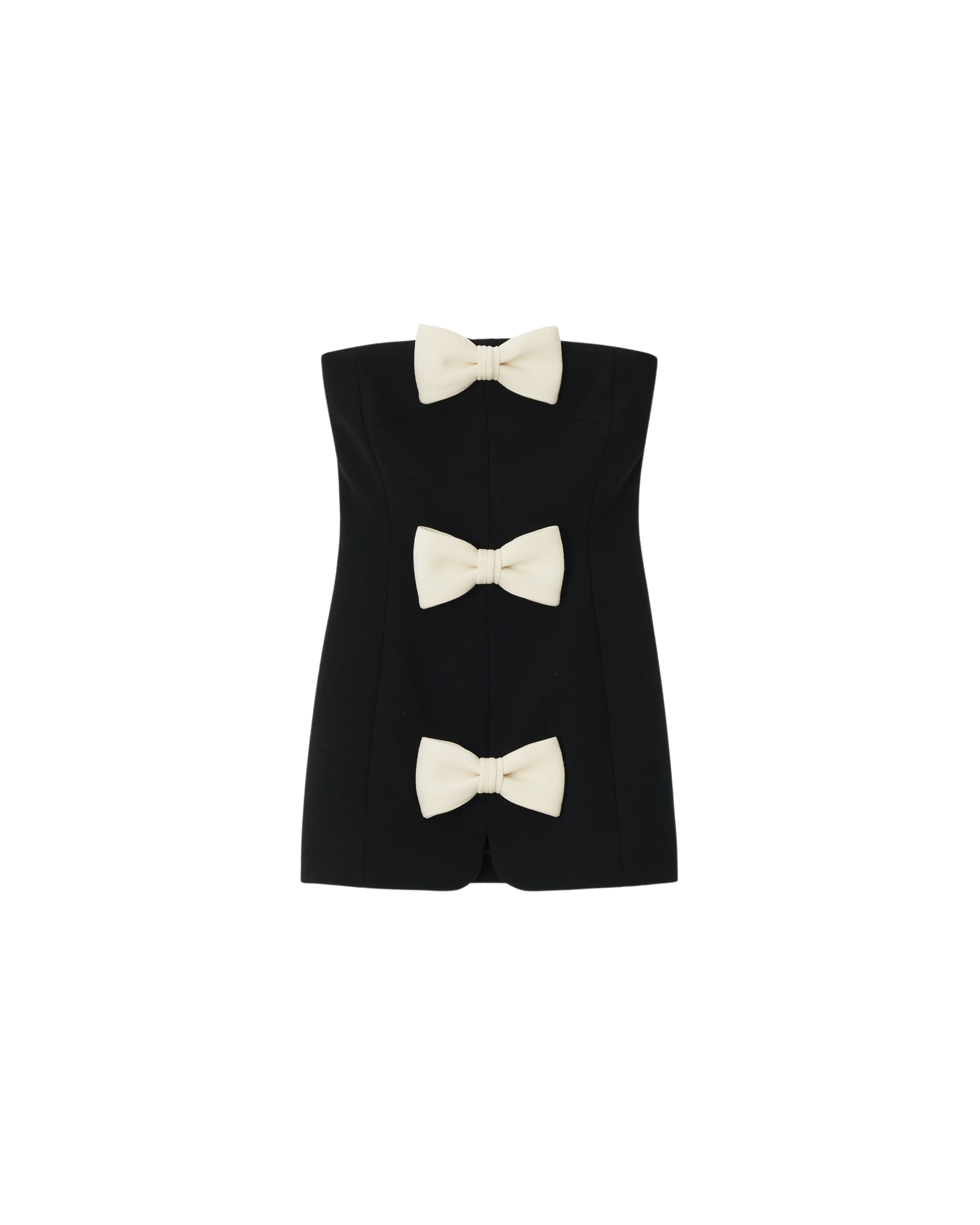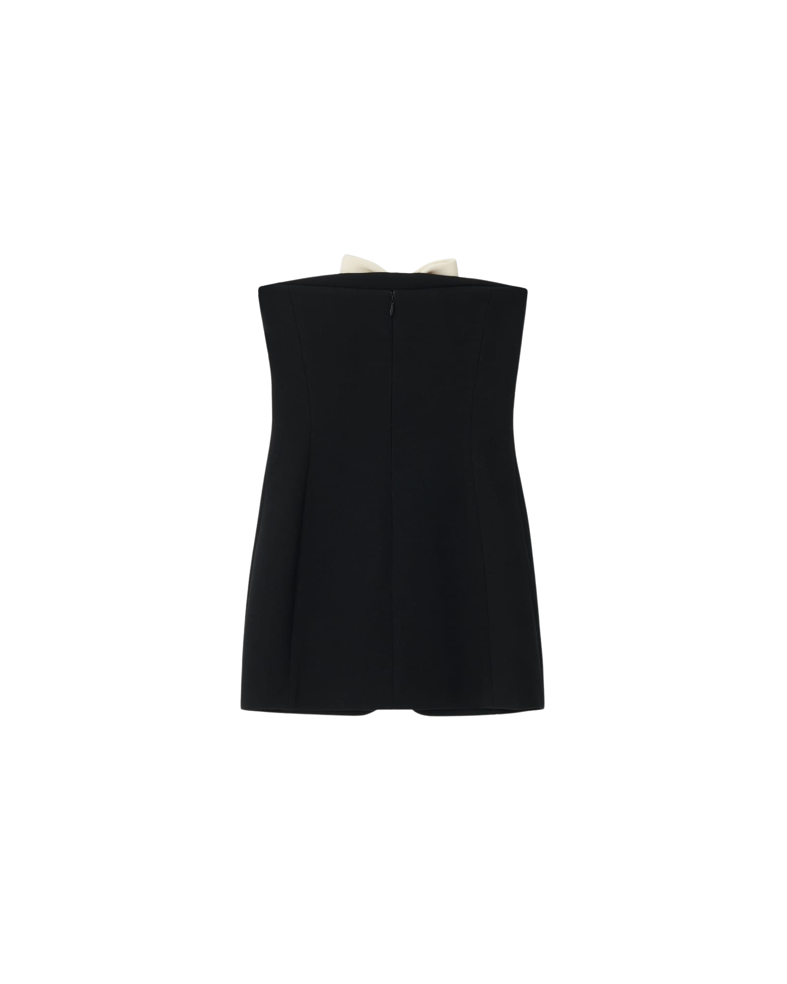 Bi-Color Bows Wool Blend Tubetop Mini Dress (Black/Ivory)