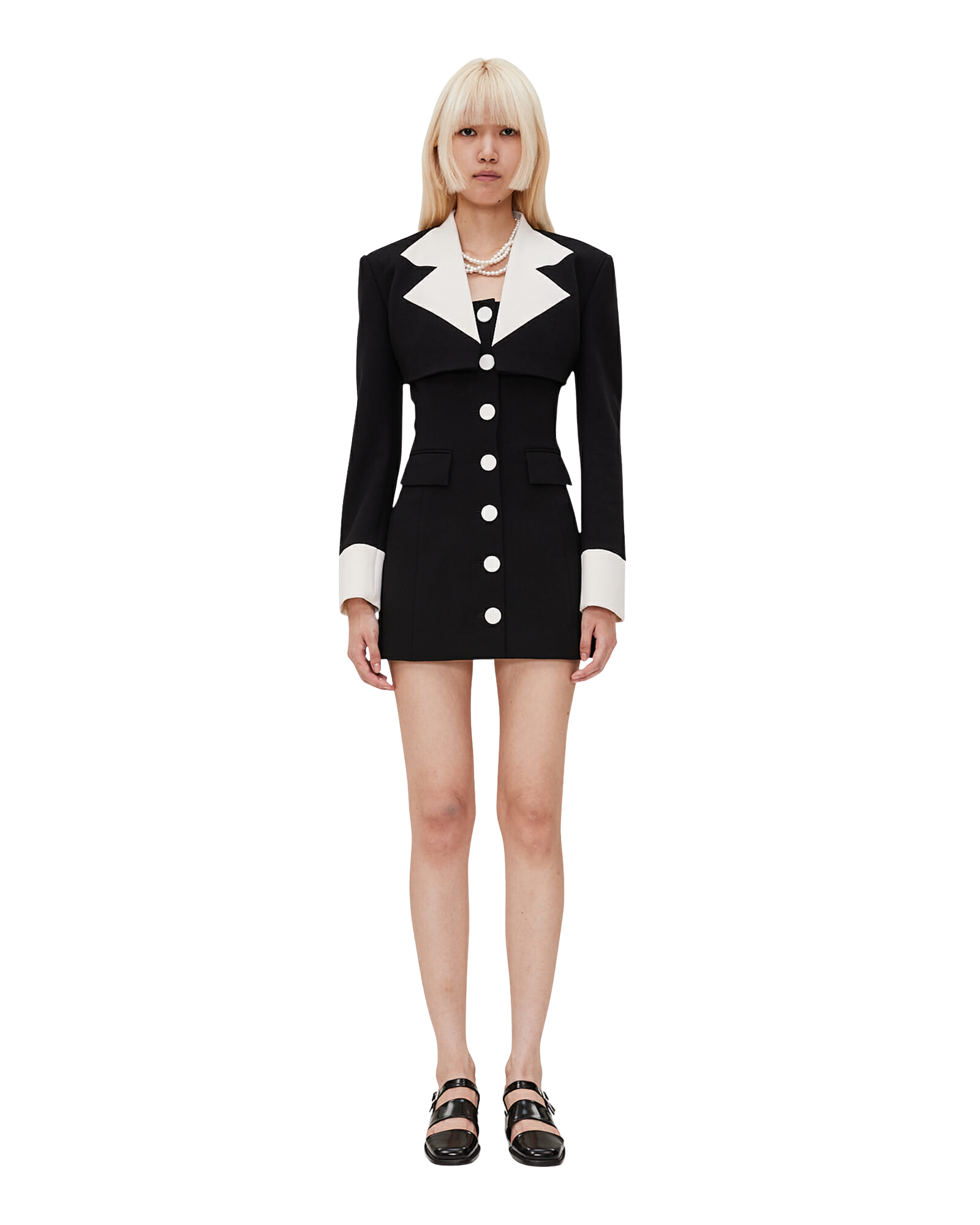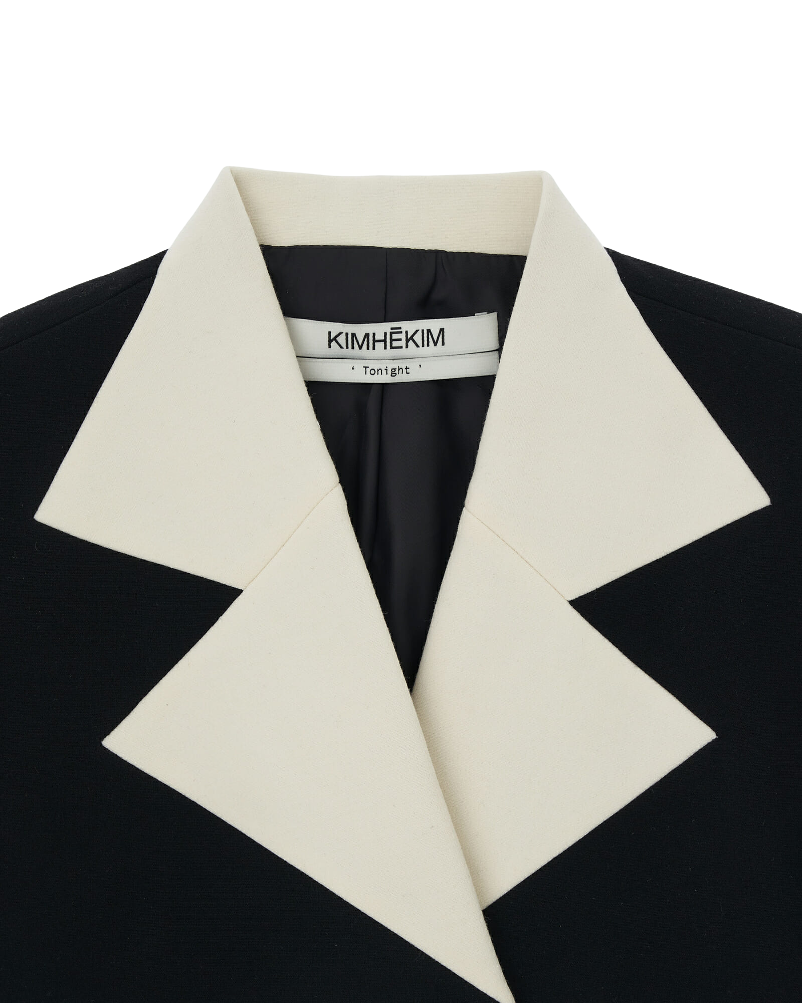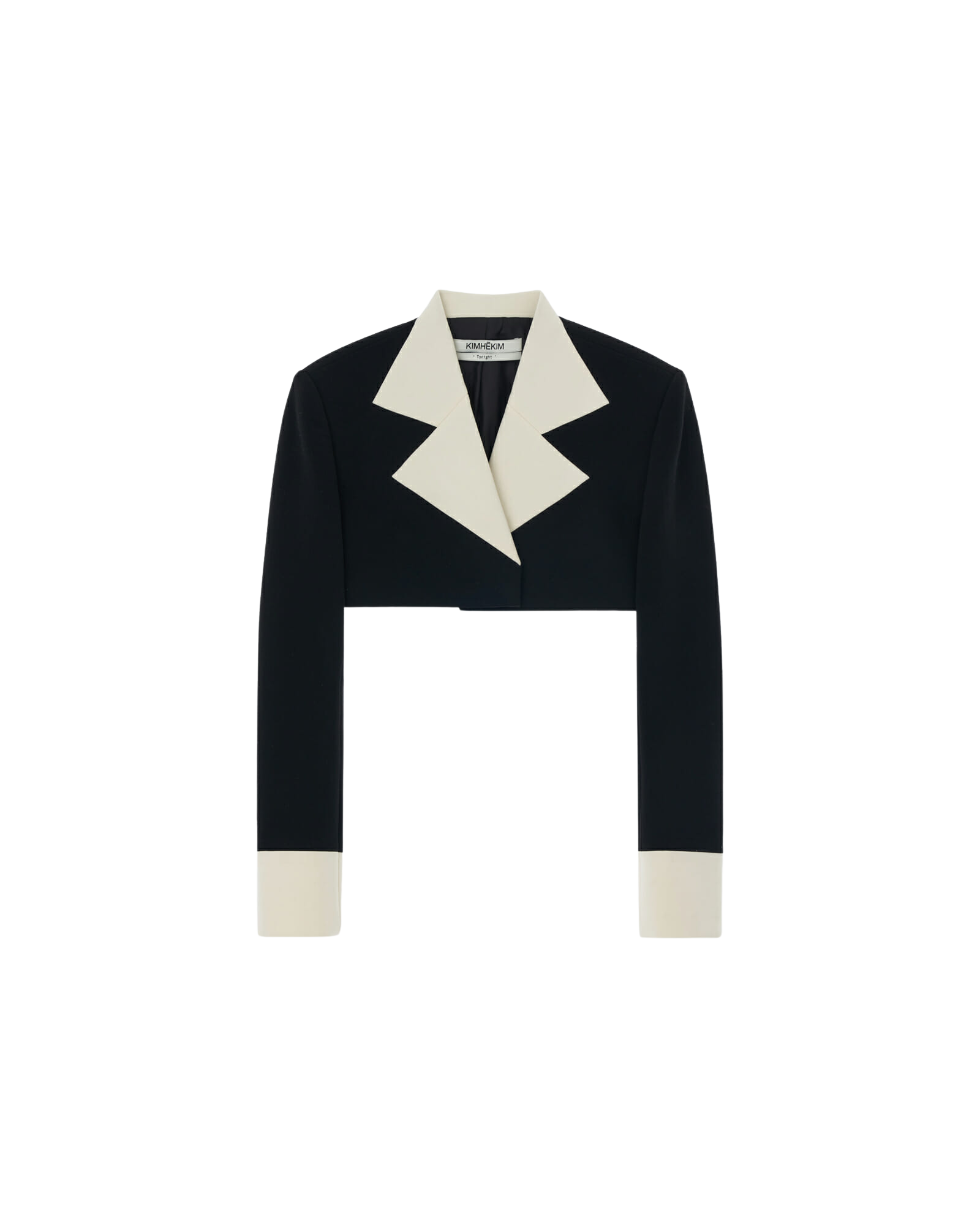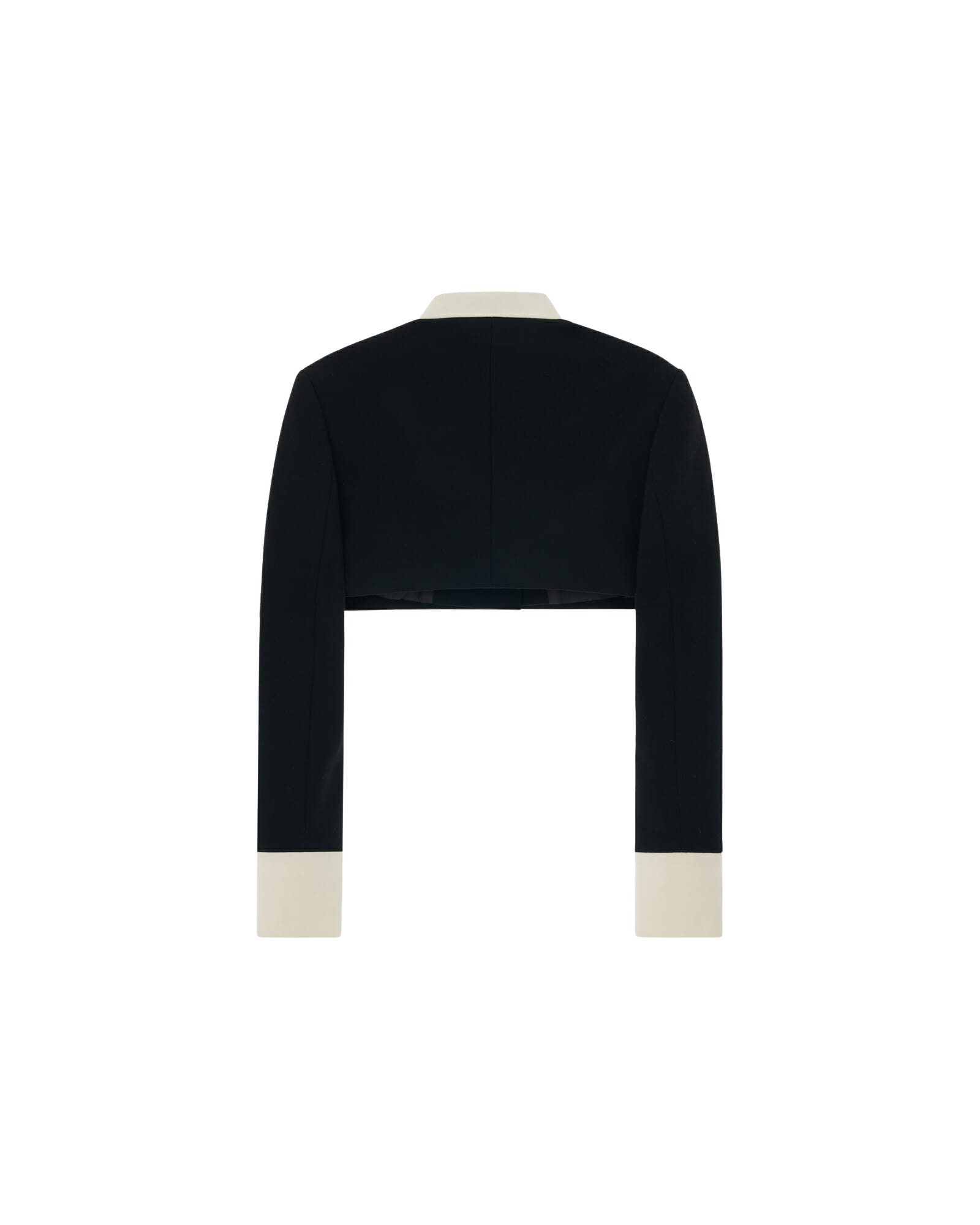 Bi-Color Cropped Wool Blend Jacket (Black/Ivory)