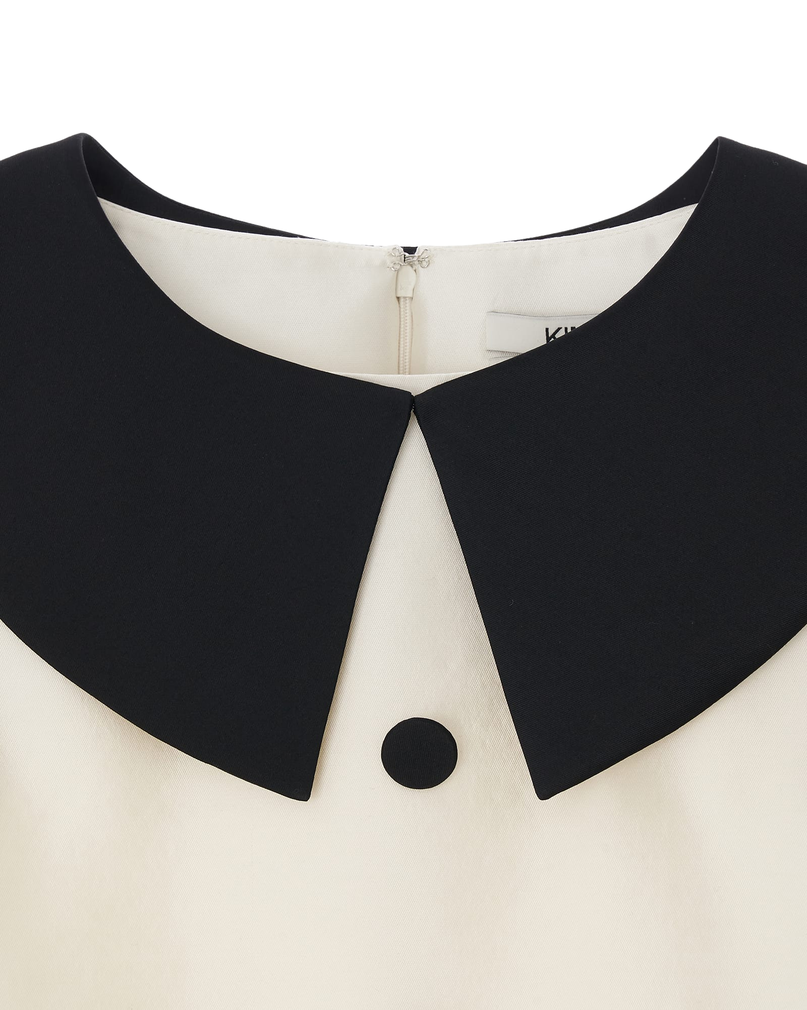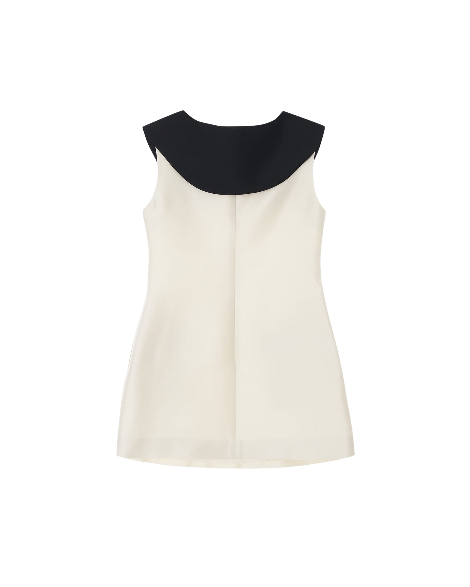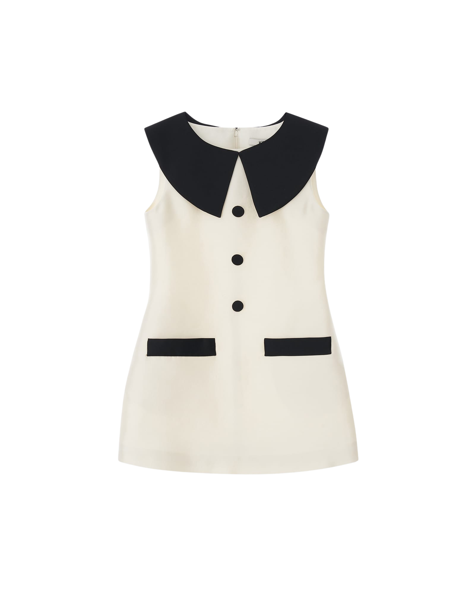 Bi-Color Silk Blend Detachable Collar Mini Dress (Ivory/Black)