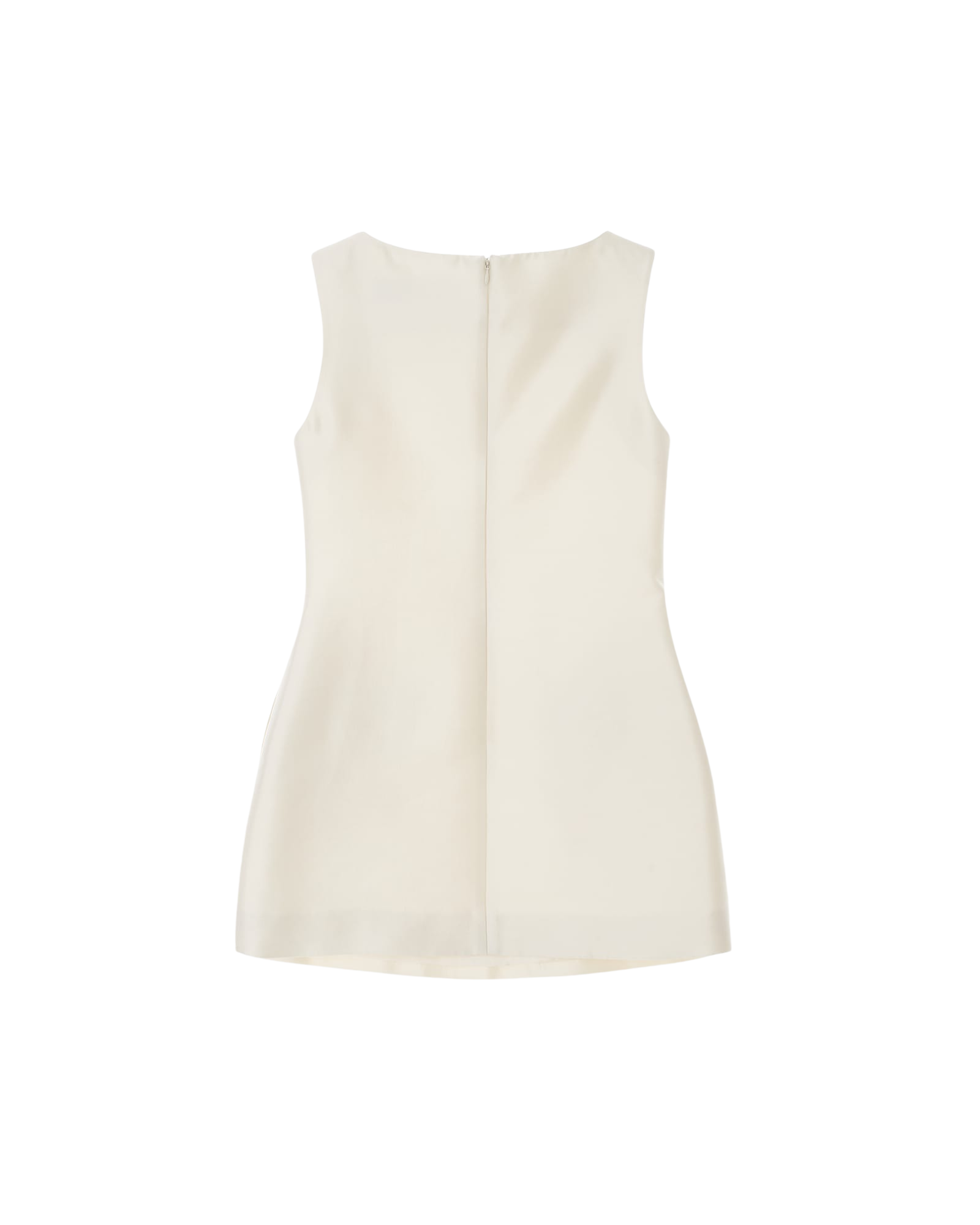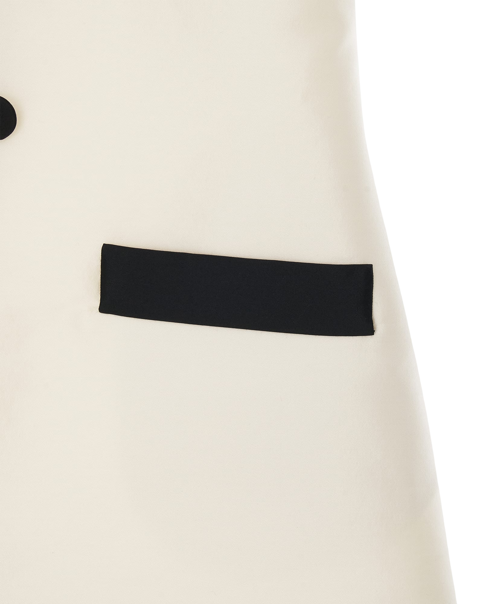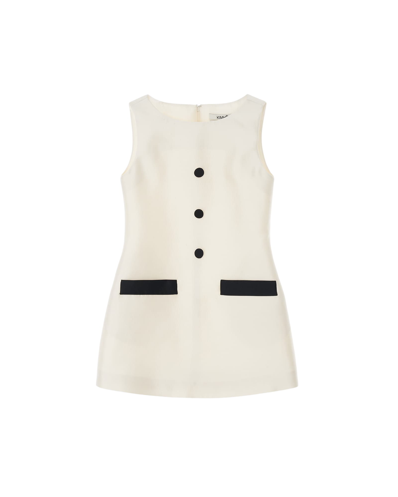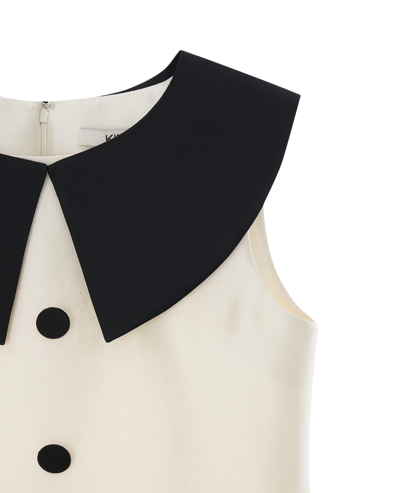 Bi-Color Silk Blend Detachable Collar Mini Dress (Ivory/Black)