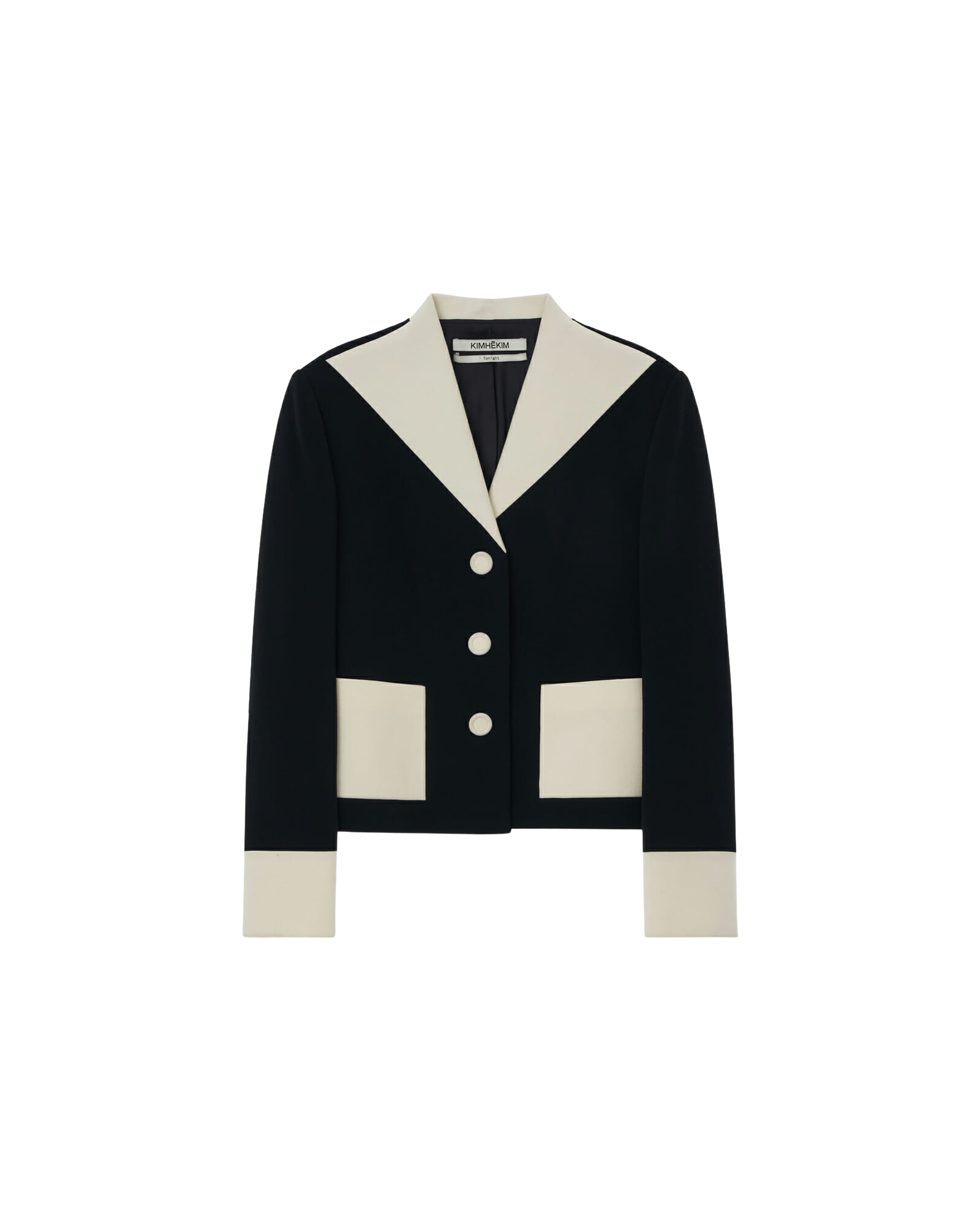 Bi-Color Wool Blend Jacket (Black/Ivory)