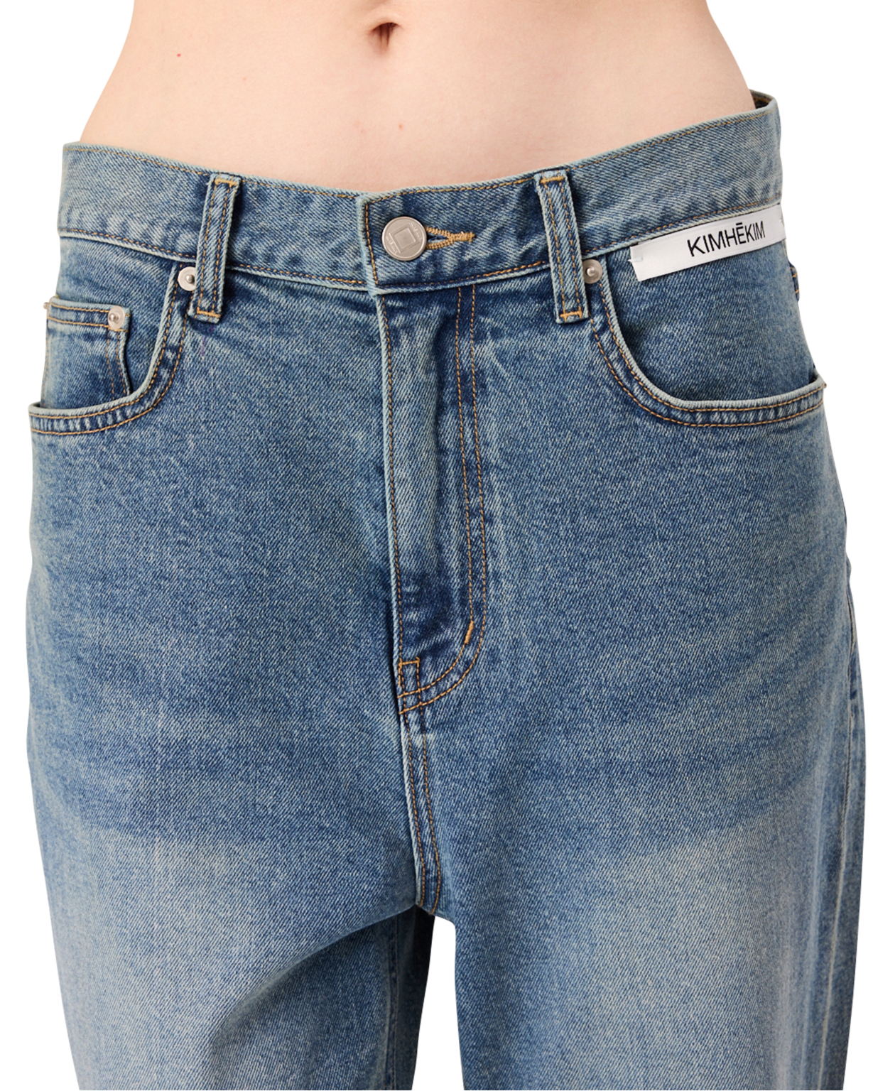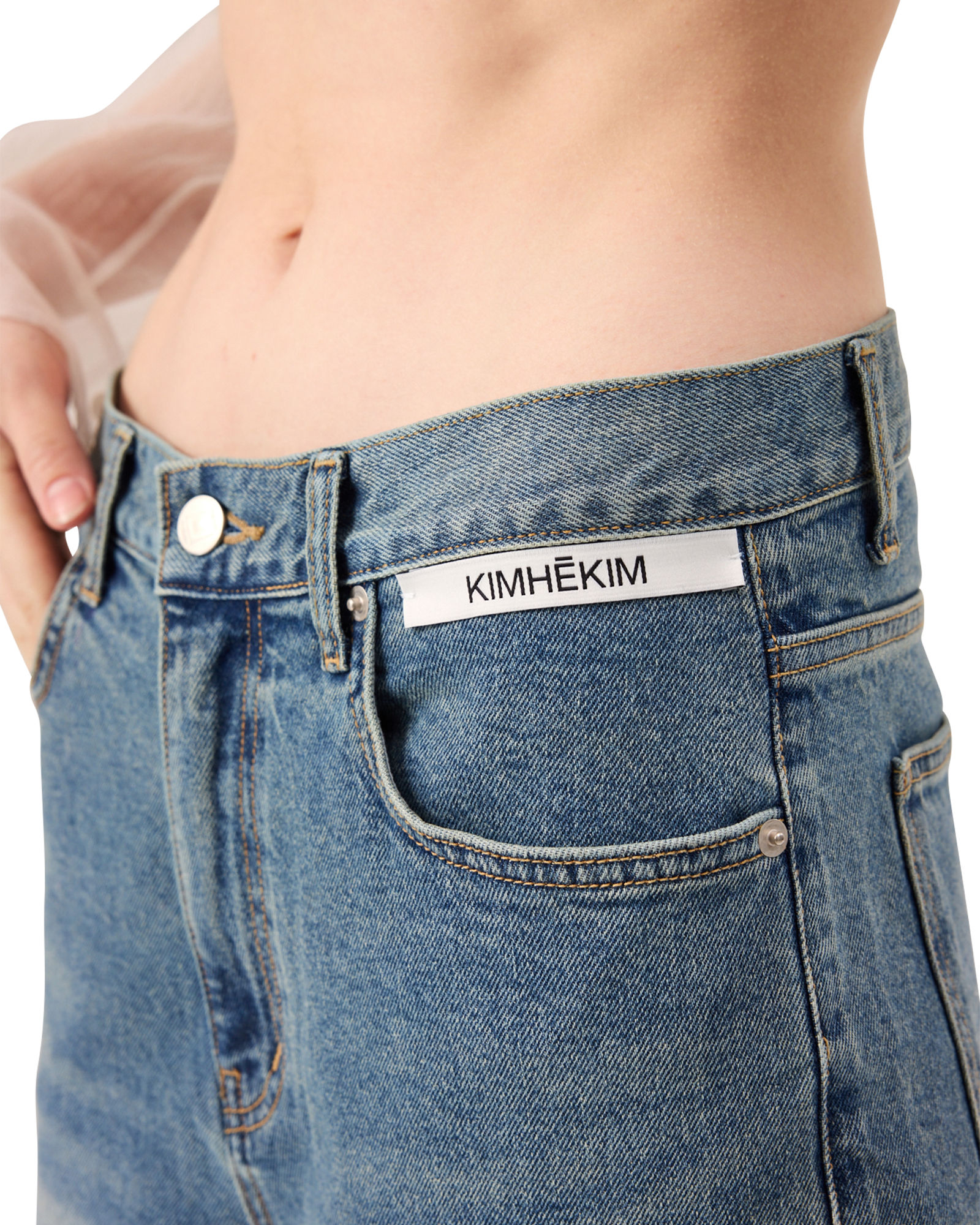 -Detailed with a KIMHĒKIM label at the waistline.