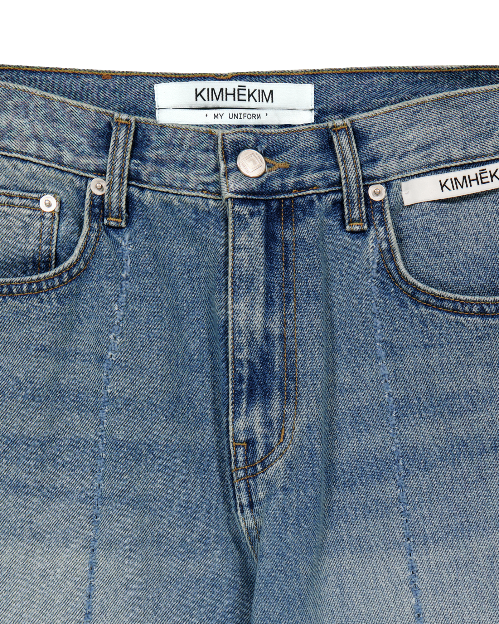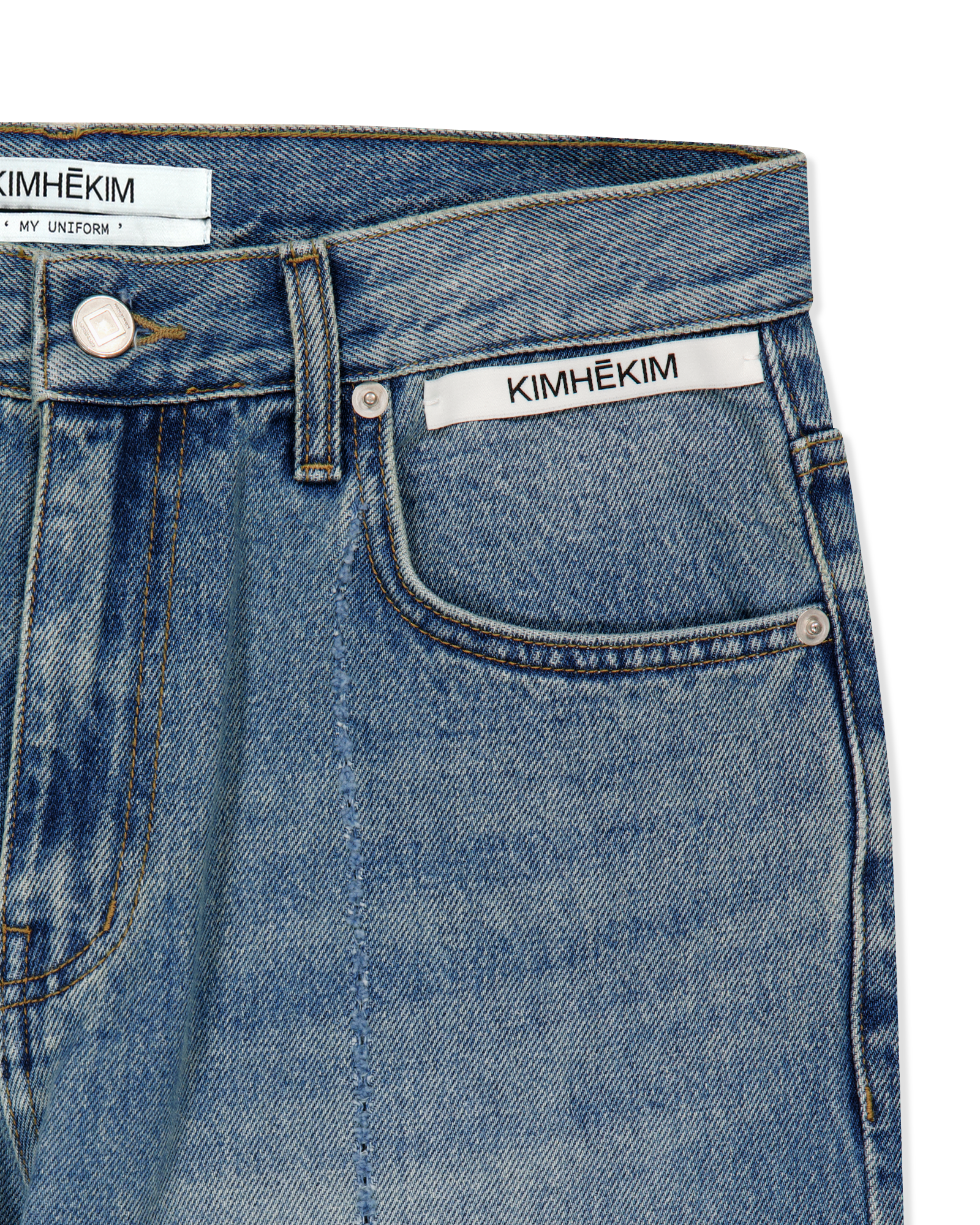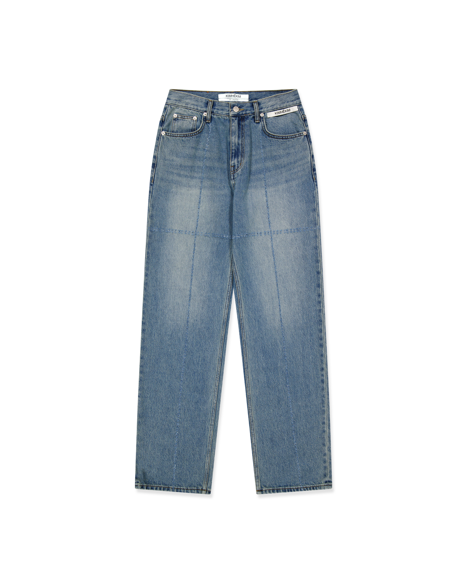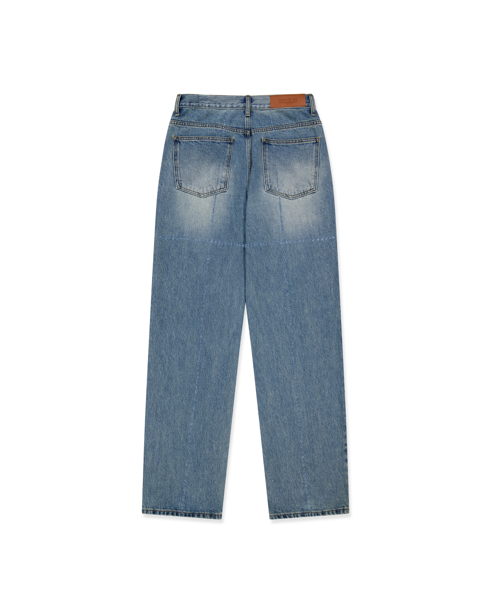 Boyfriend-Fit Punched Denim Pants (Blue)