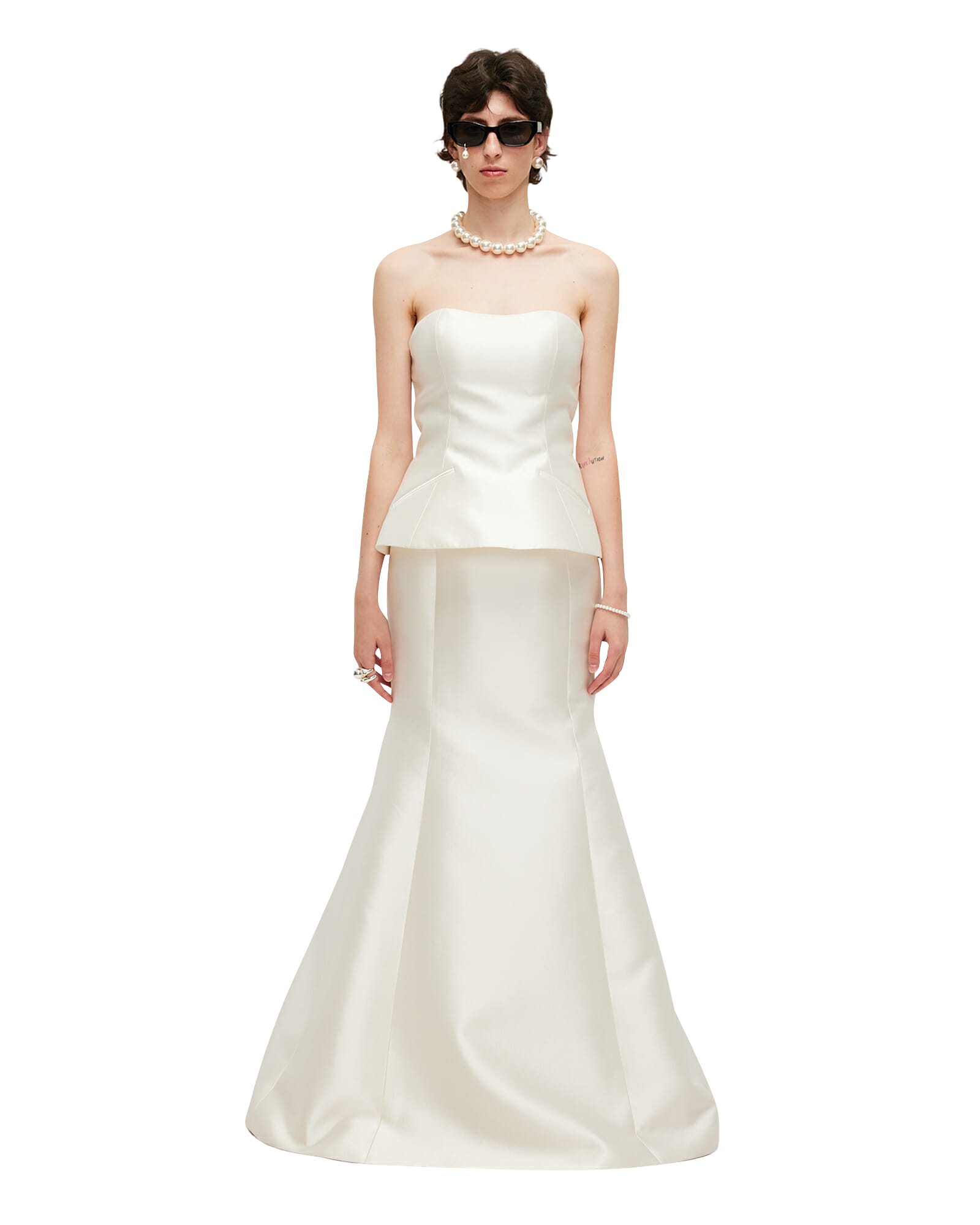 -Bandeau style with fitted waistline.