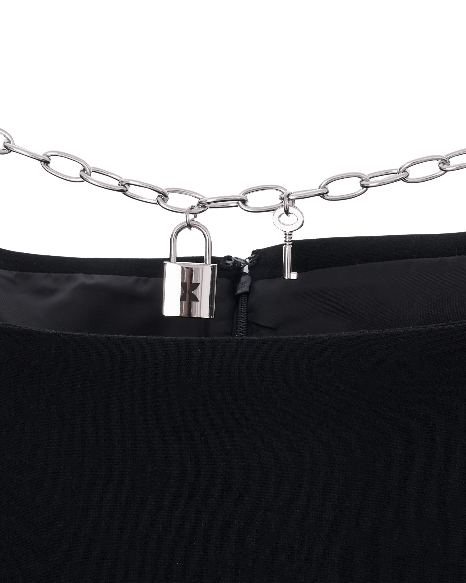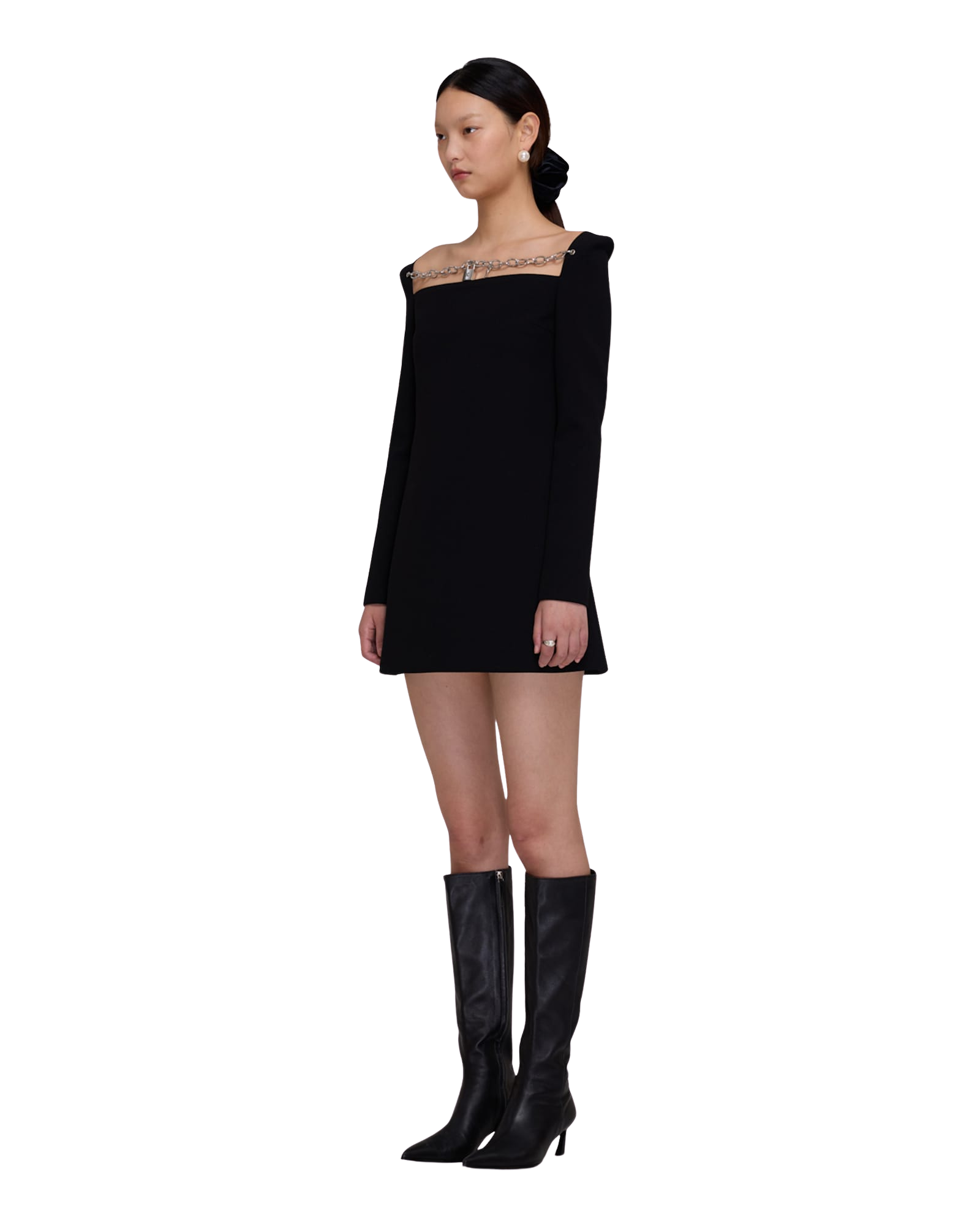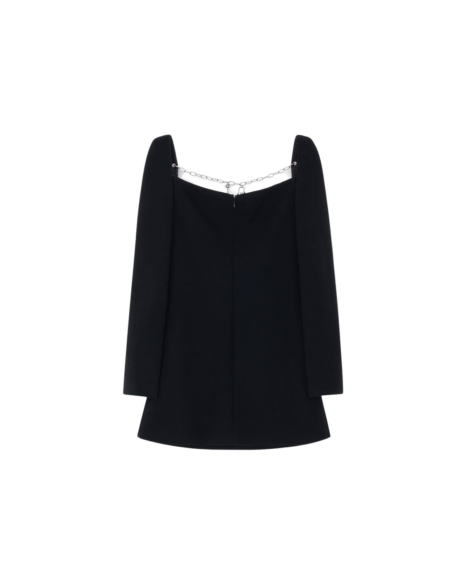 Chain Detailed Sqaure Neck Mini Dress (Black)