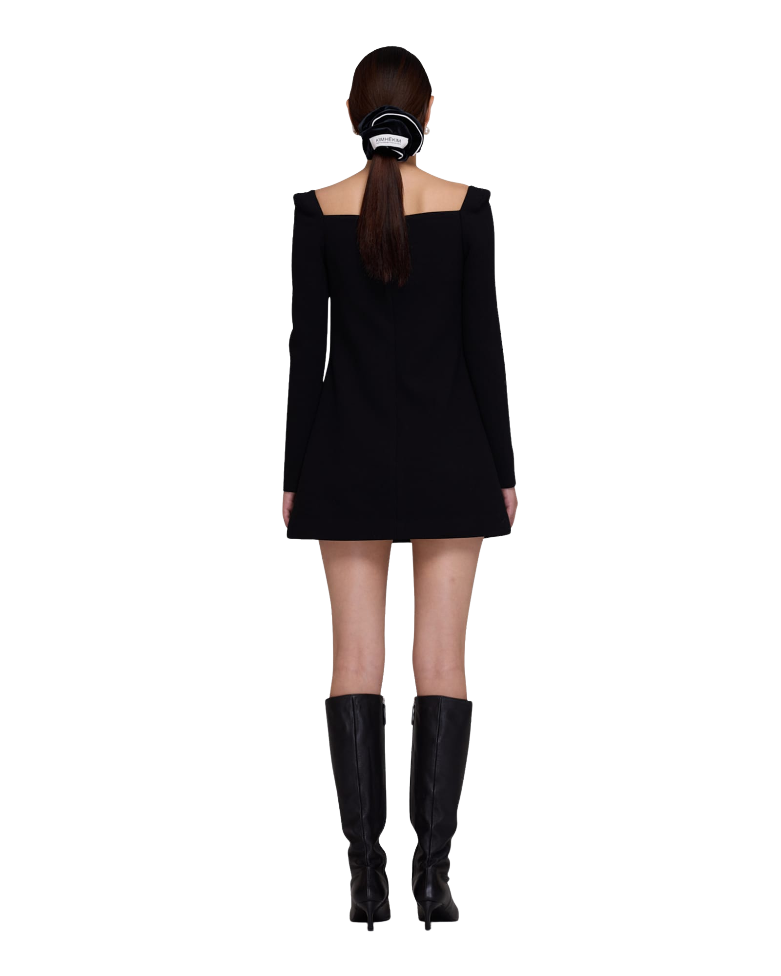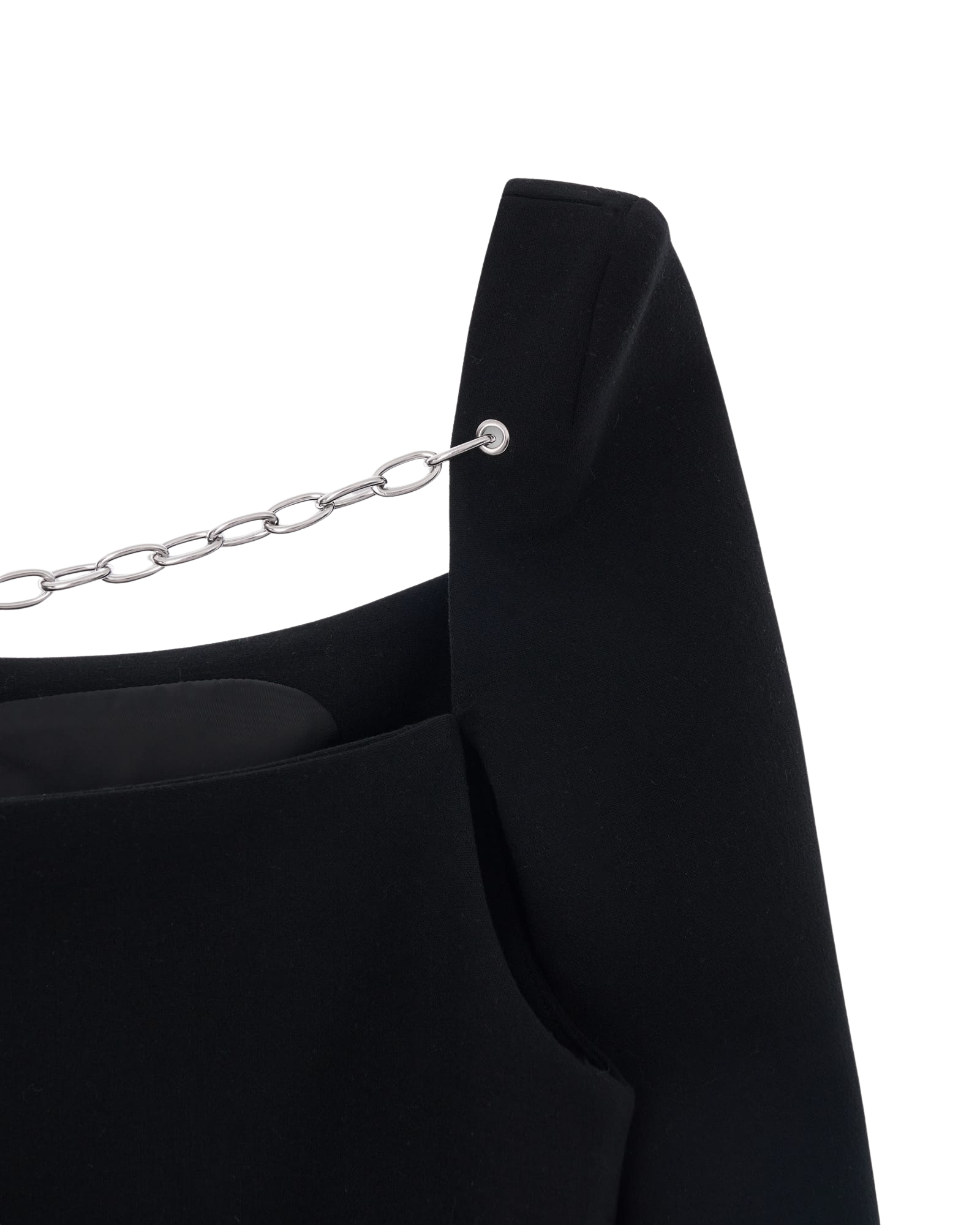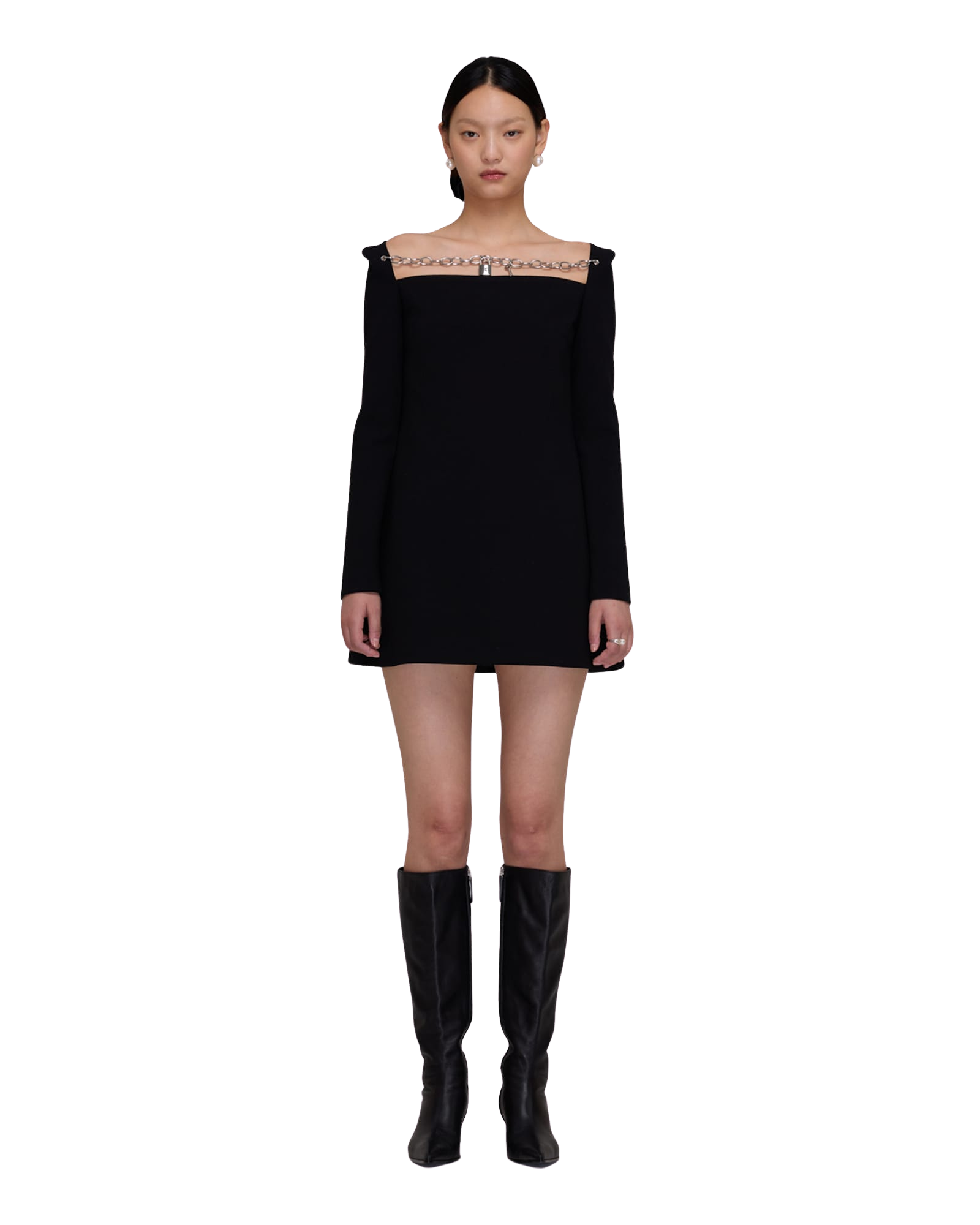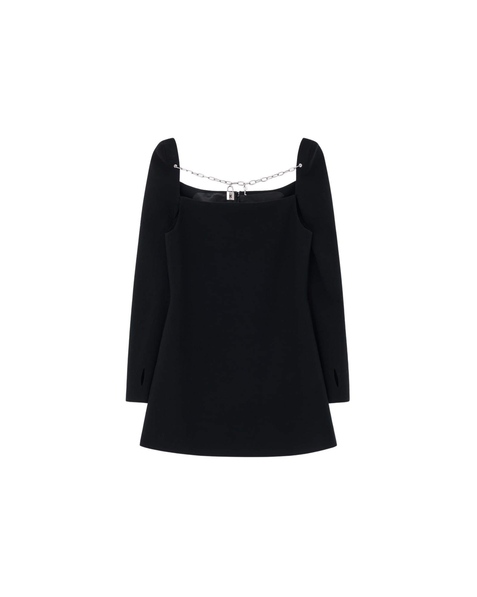 Chain Detailed Sqaure Neck Mini Dress (Black)