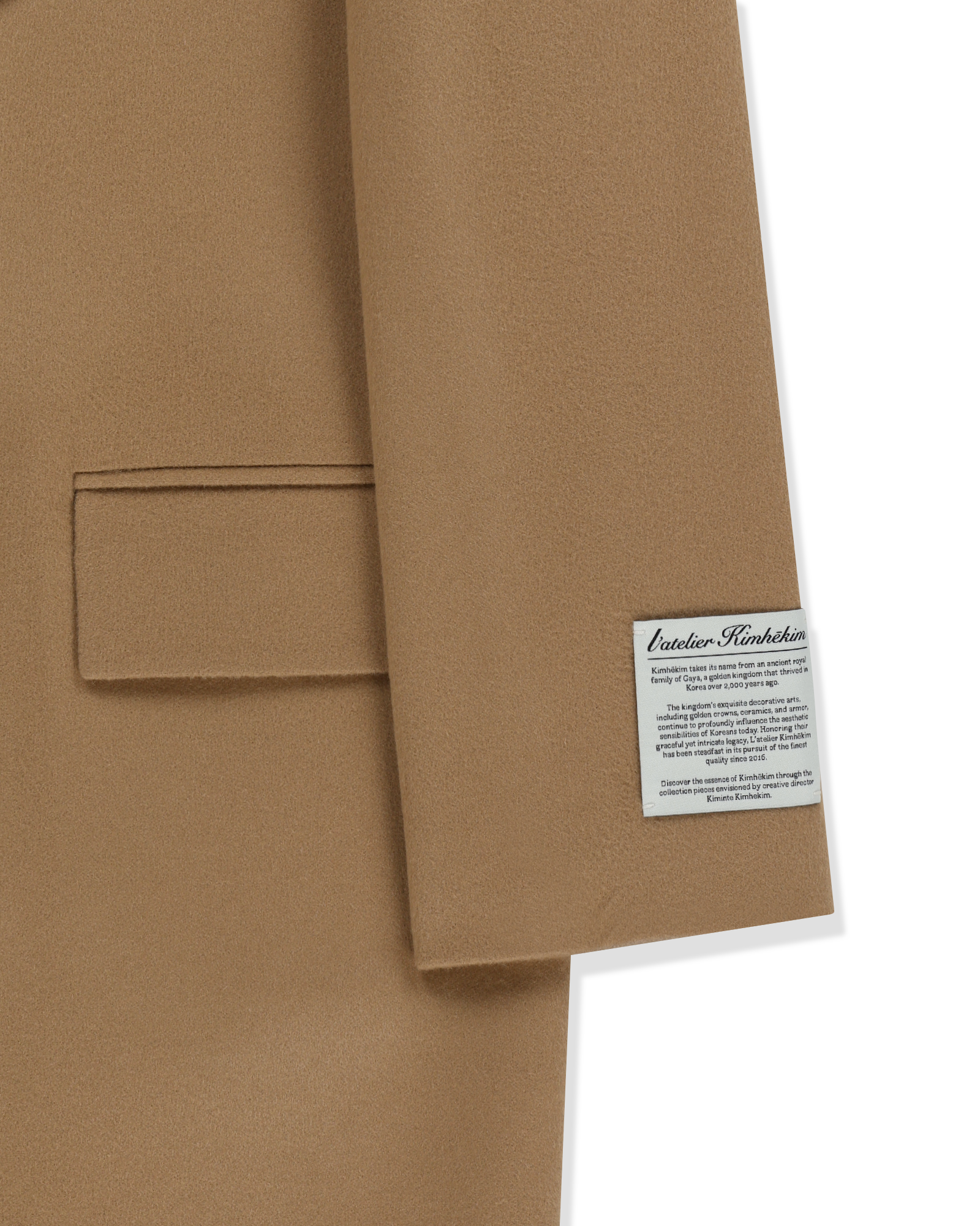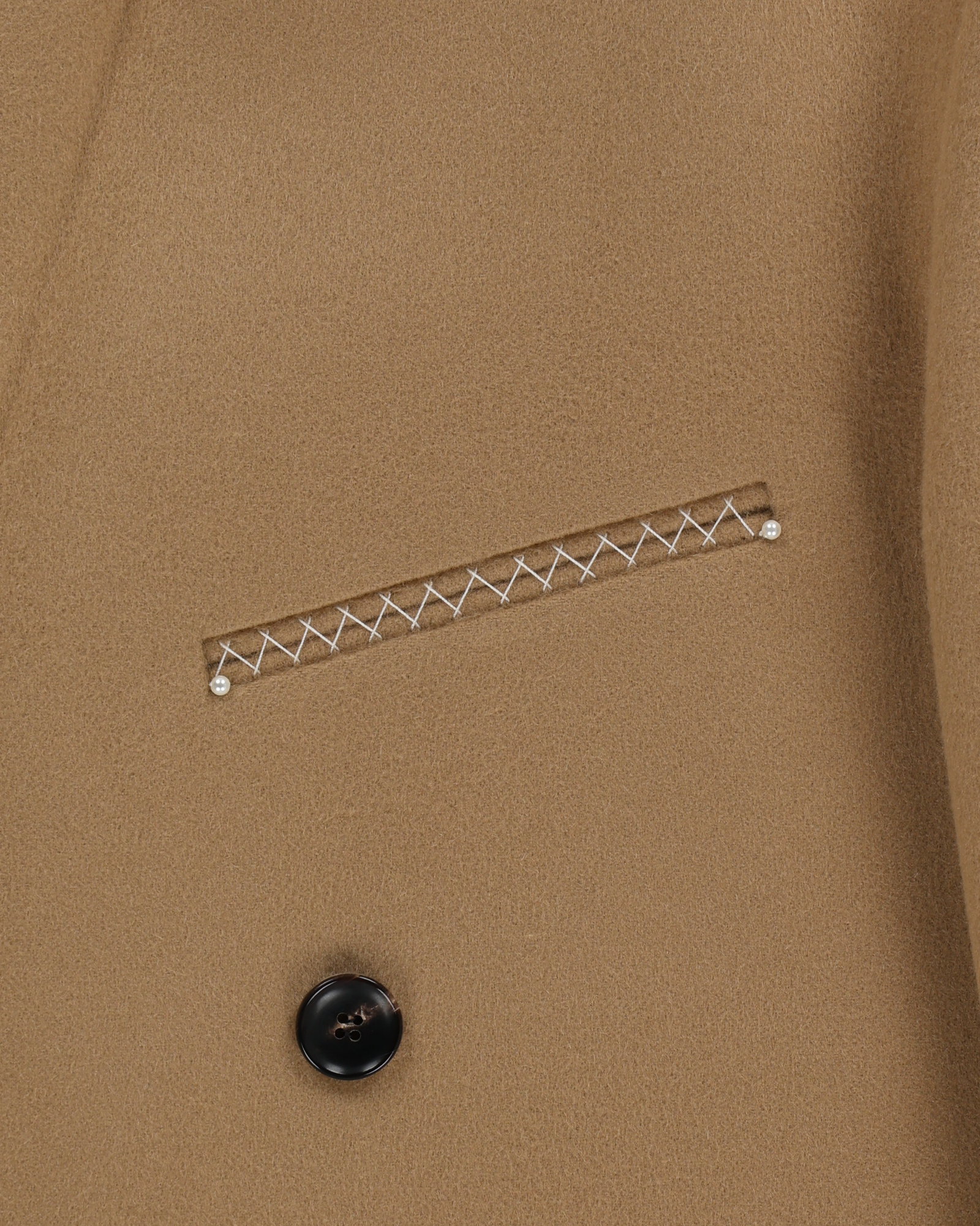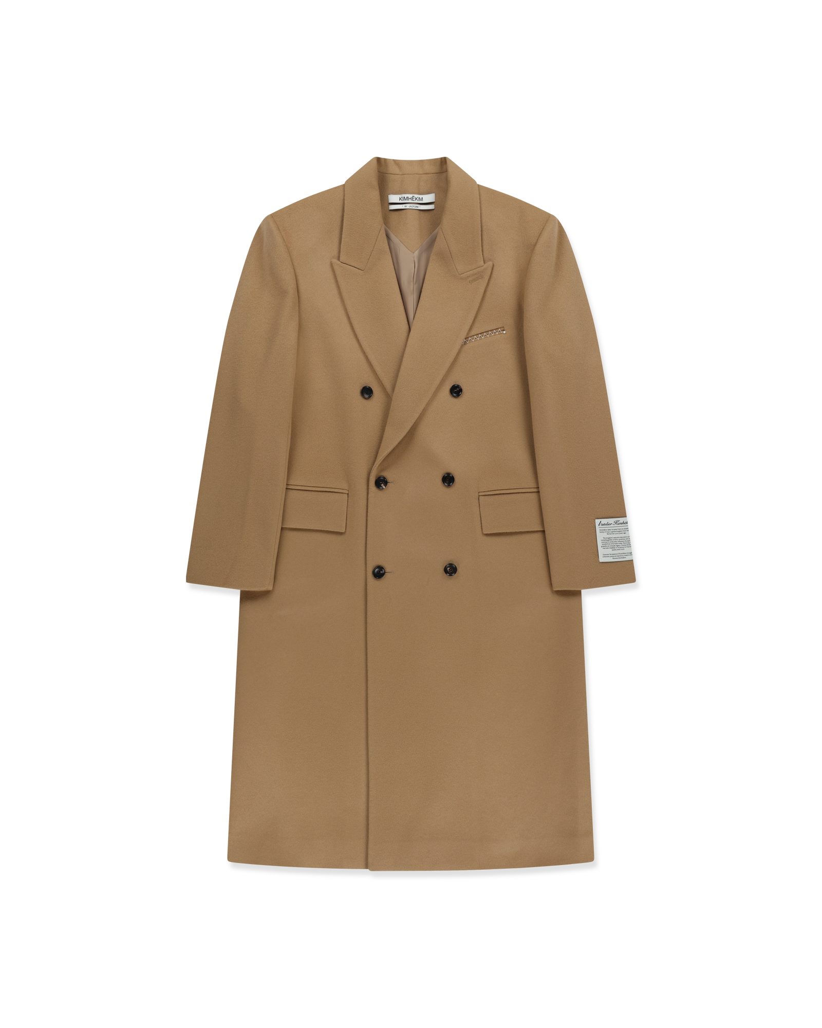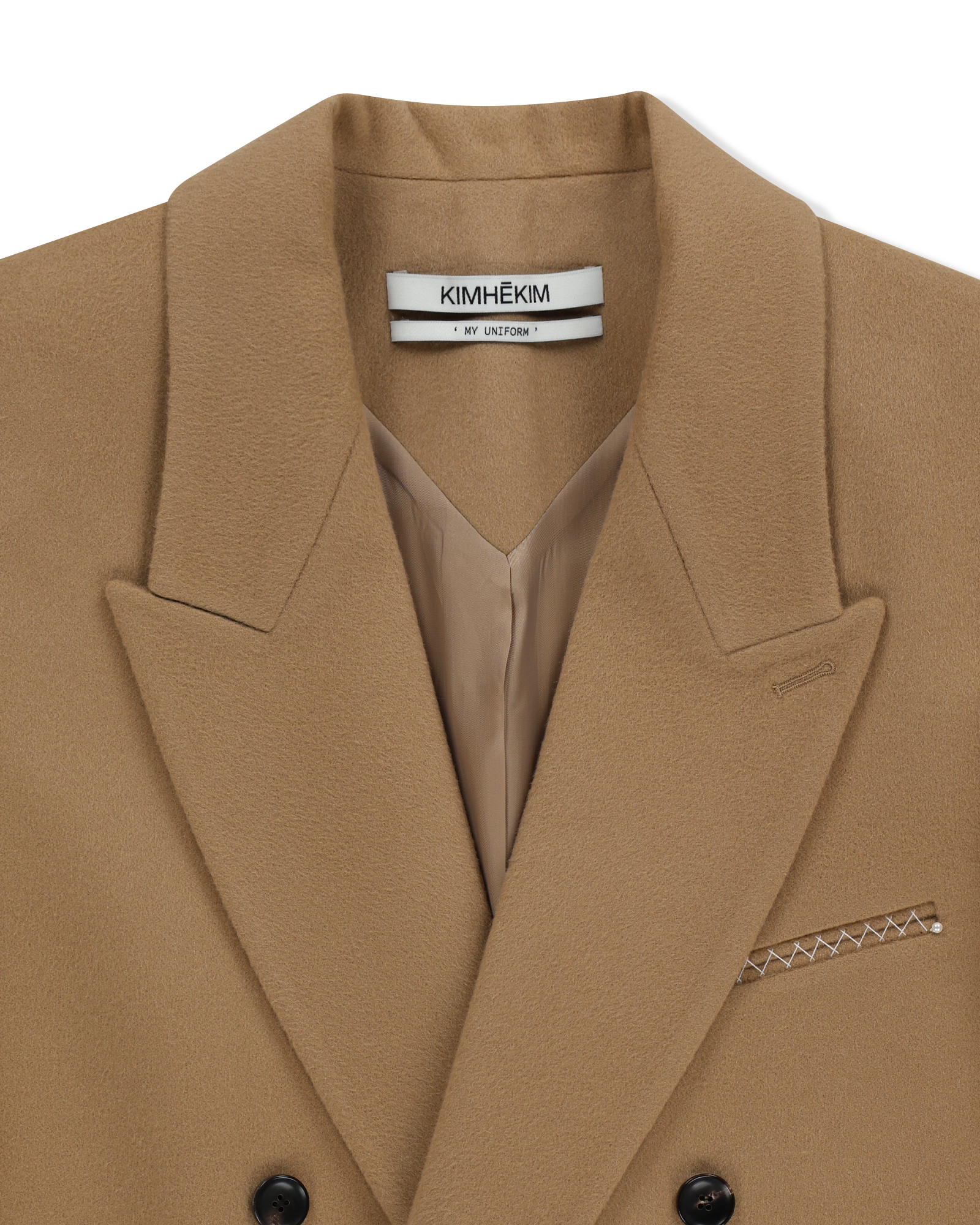 -An oversized double-breasted coat made from a wool-cashmere blend fabric.