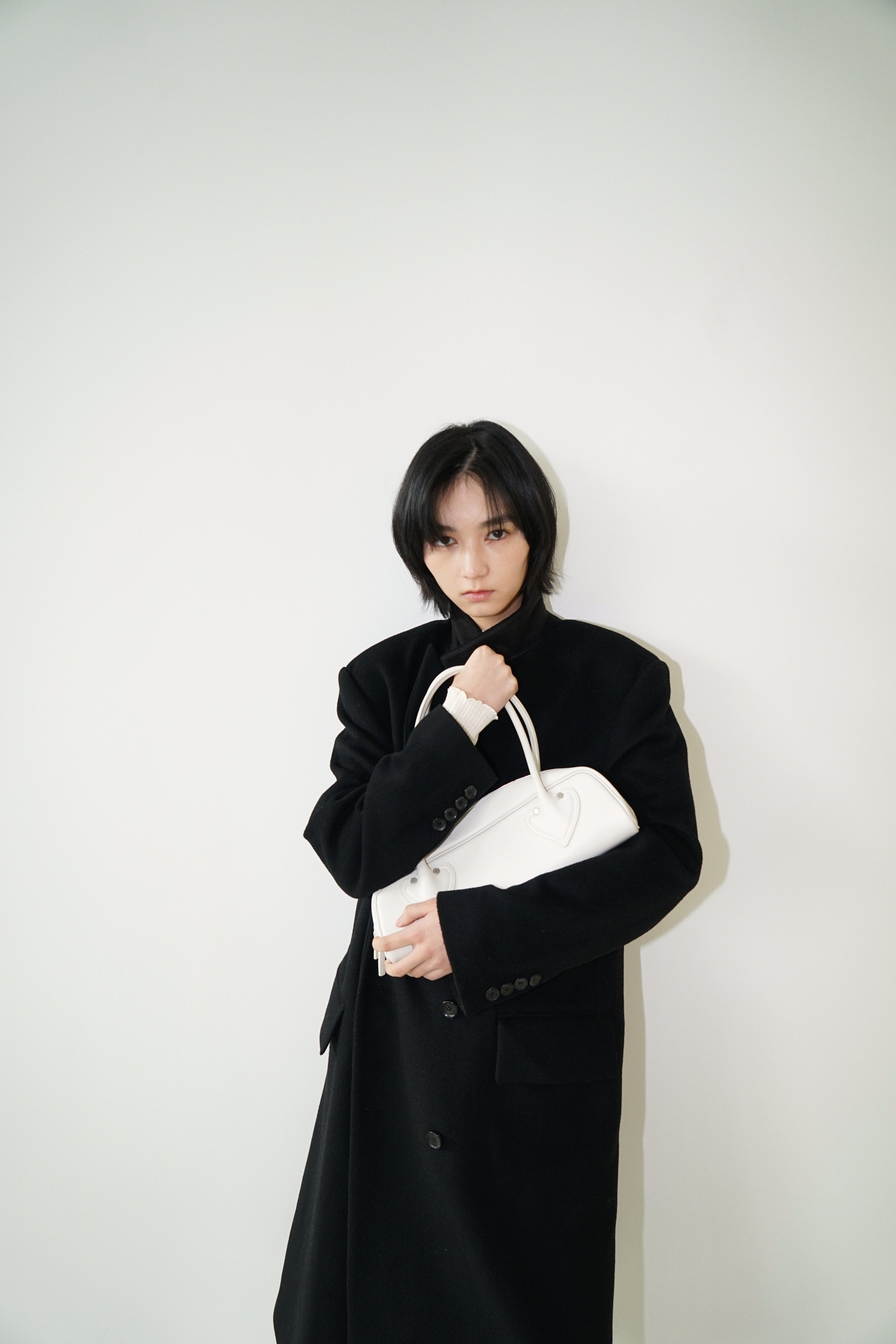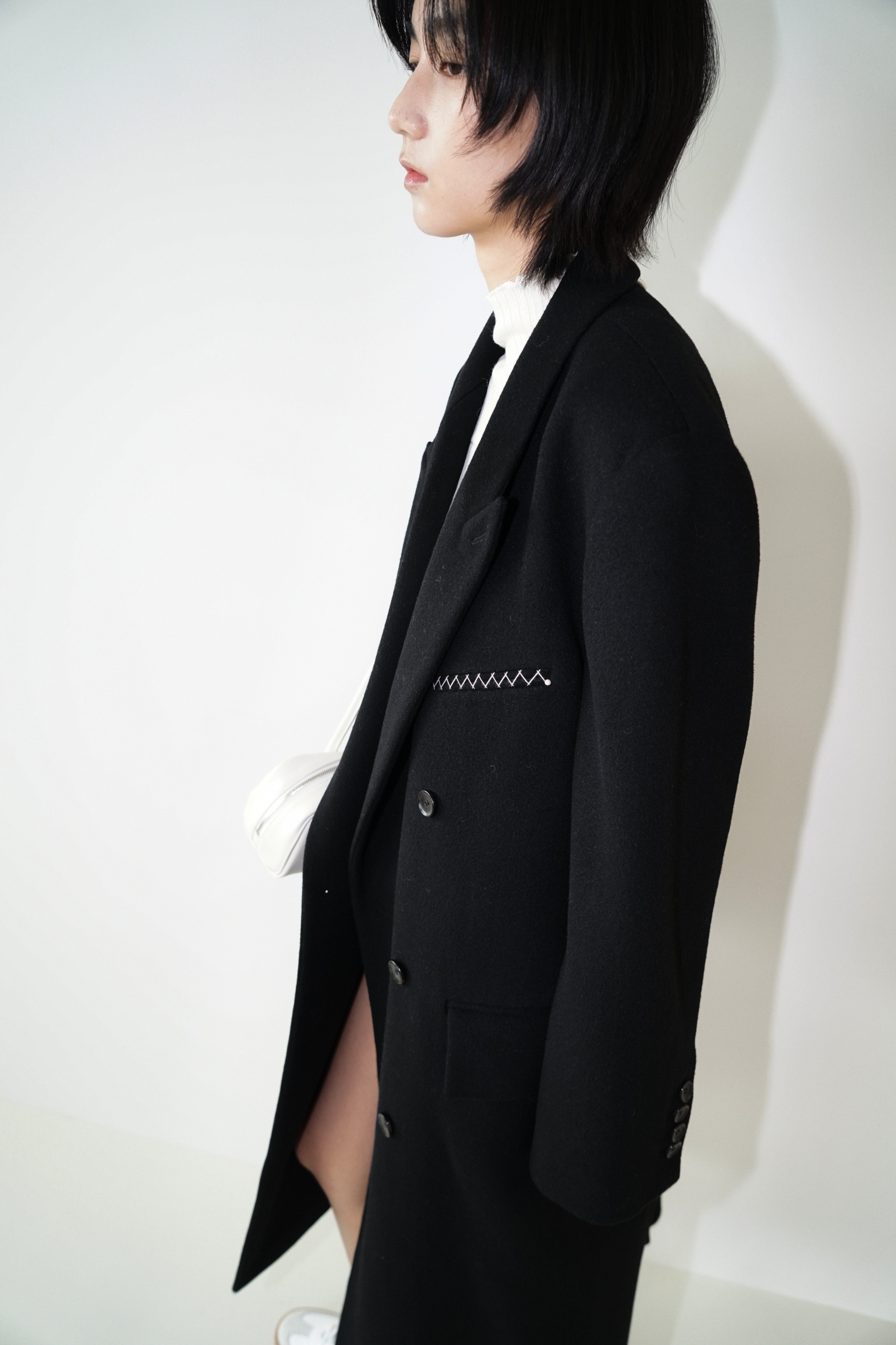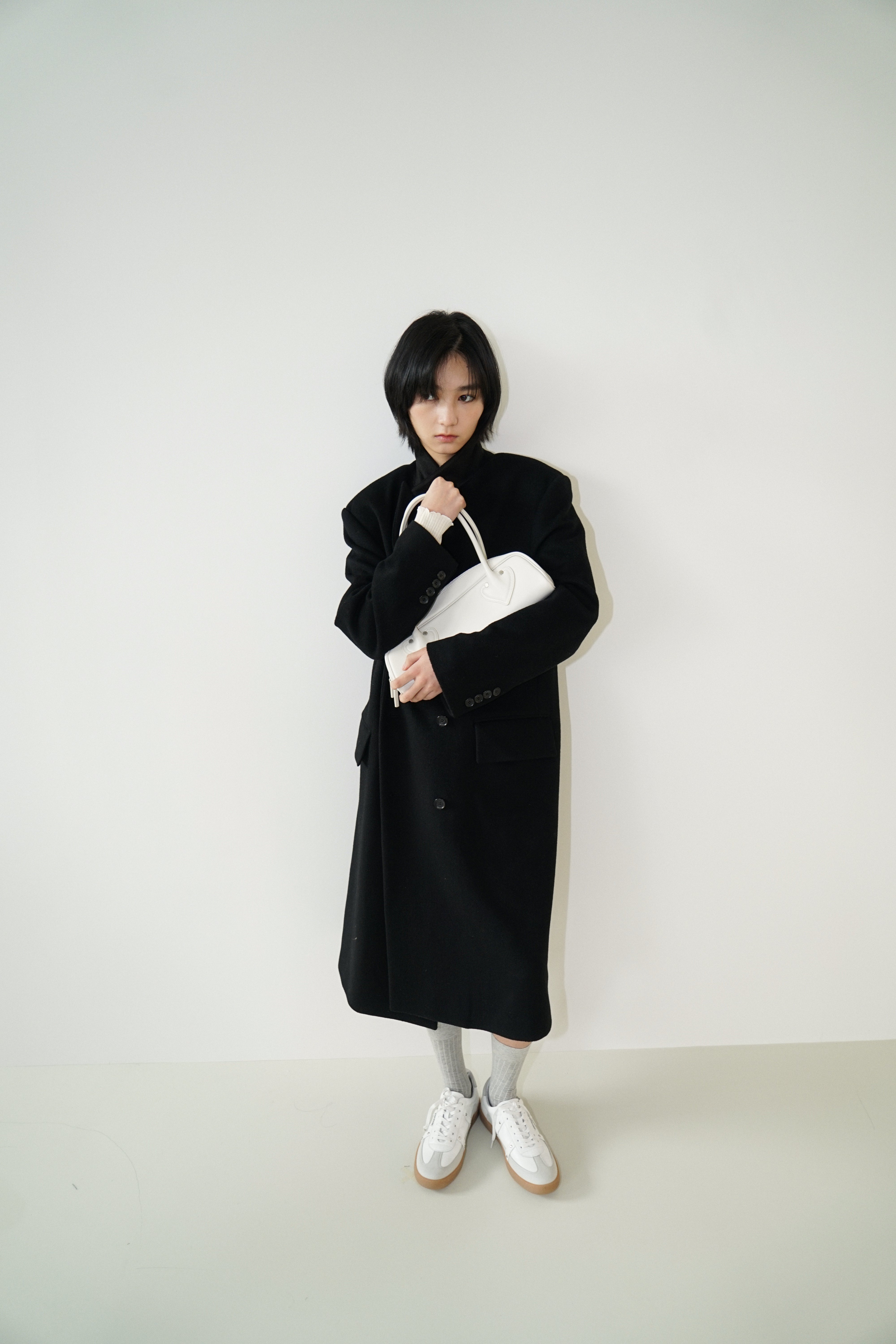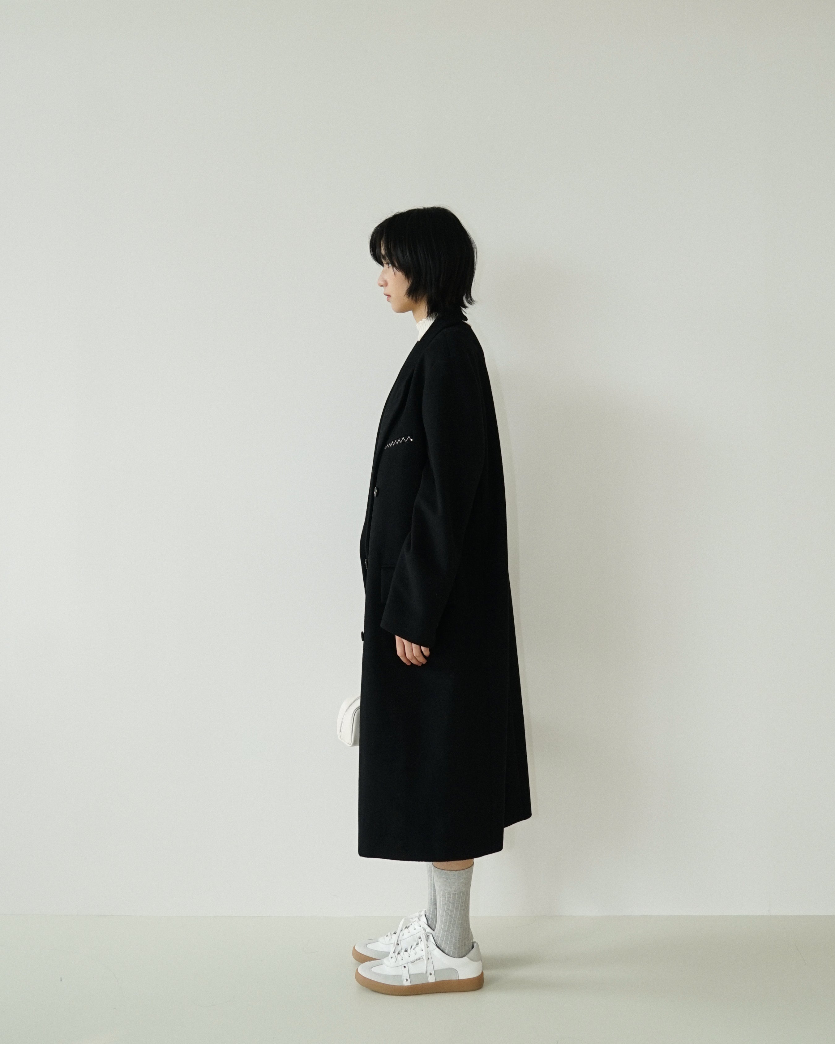 -An oversized double-breasted coat made from a wool-cashmere blend fabric.
