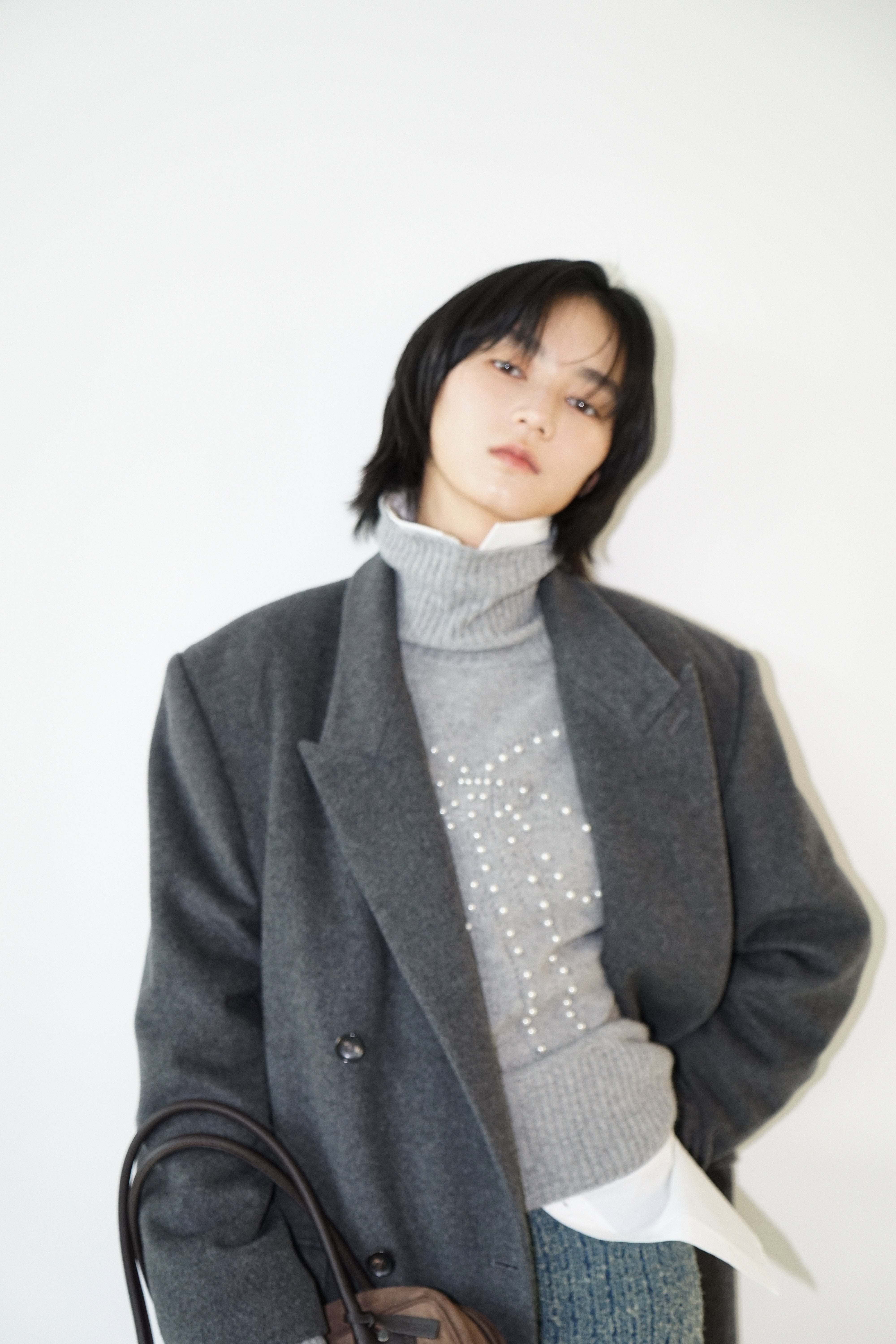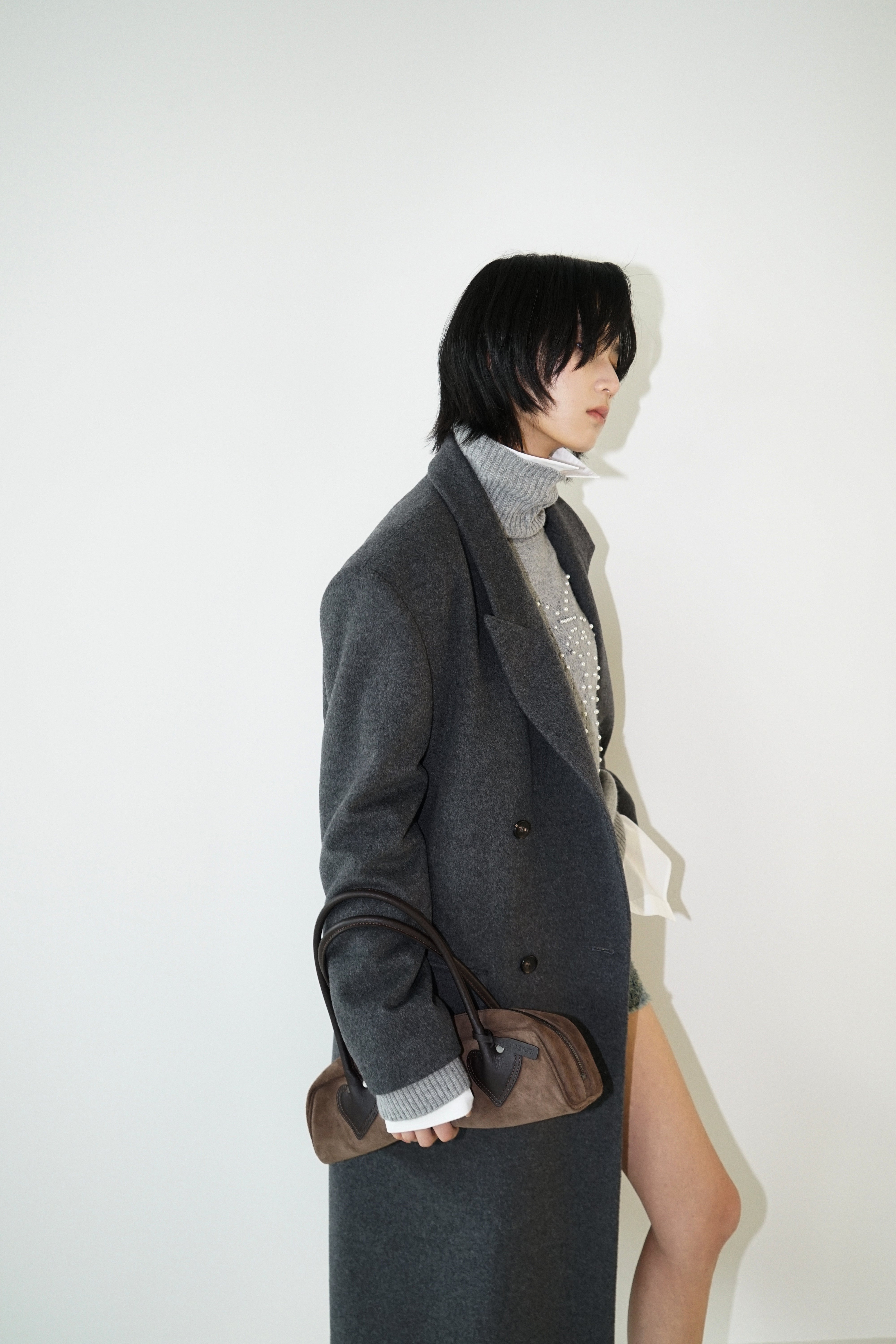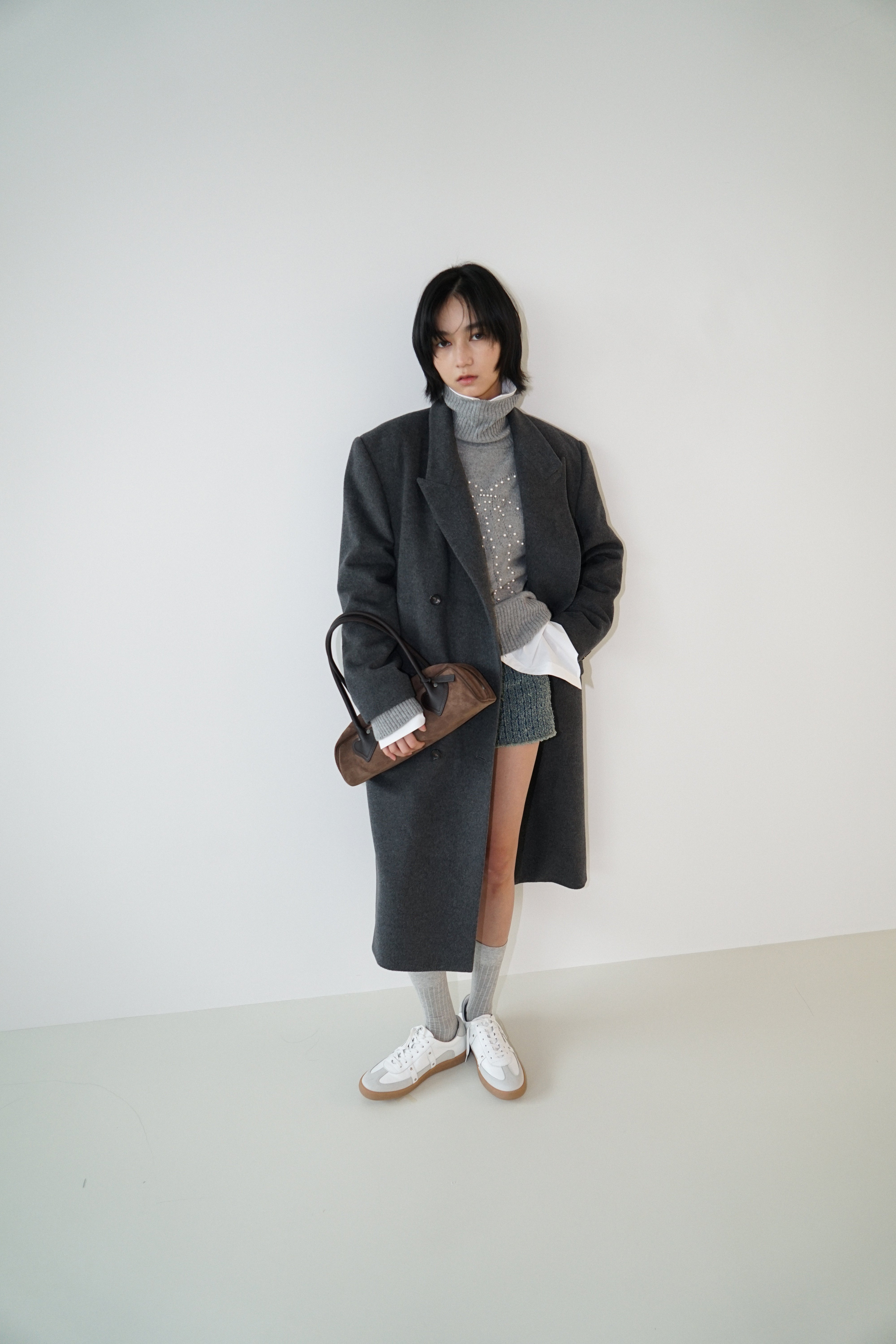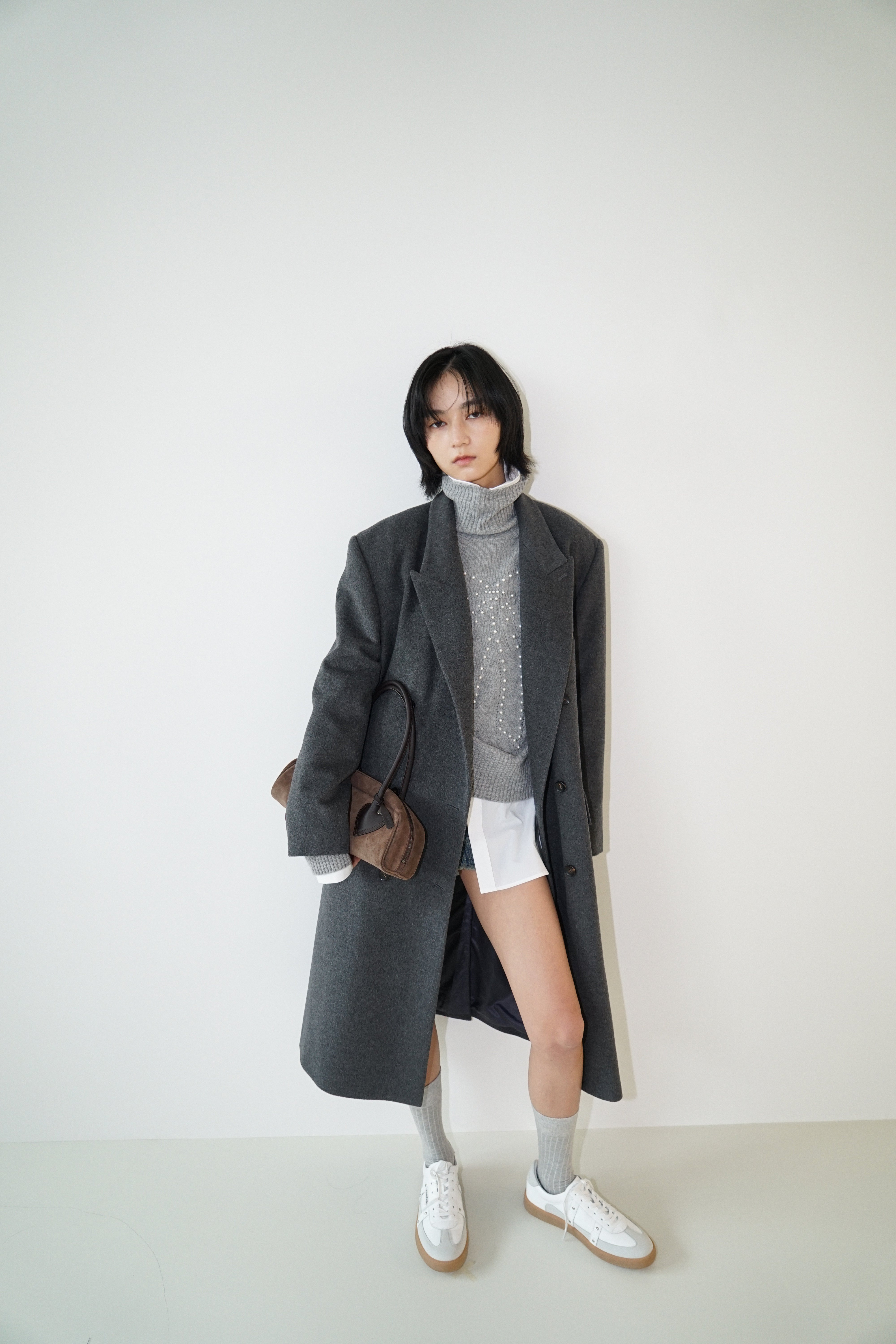 -An oversized double-breasted coat made from a wool-cashmere blend fabric.