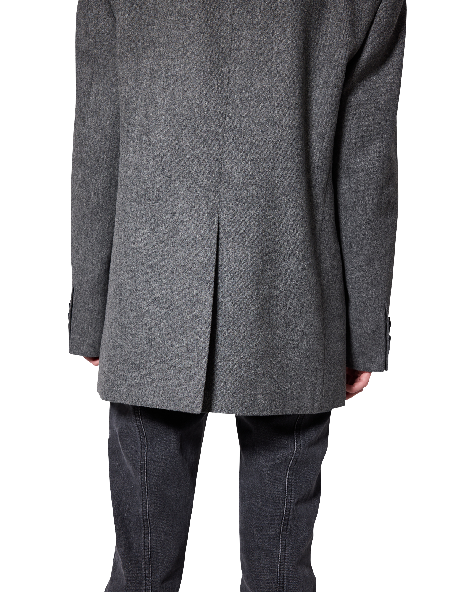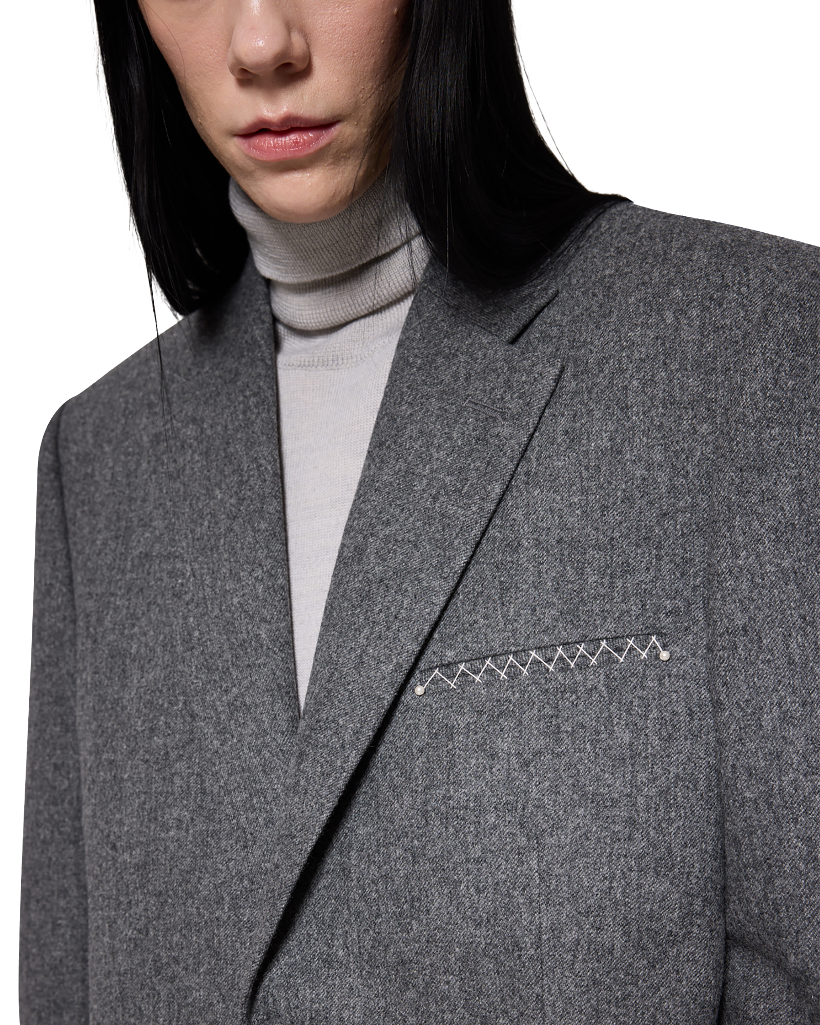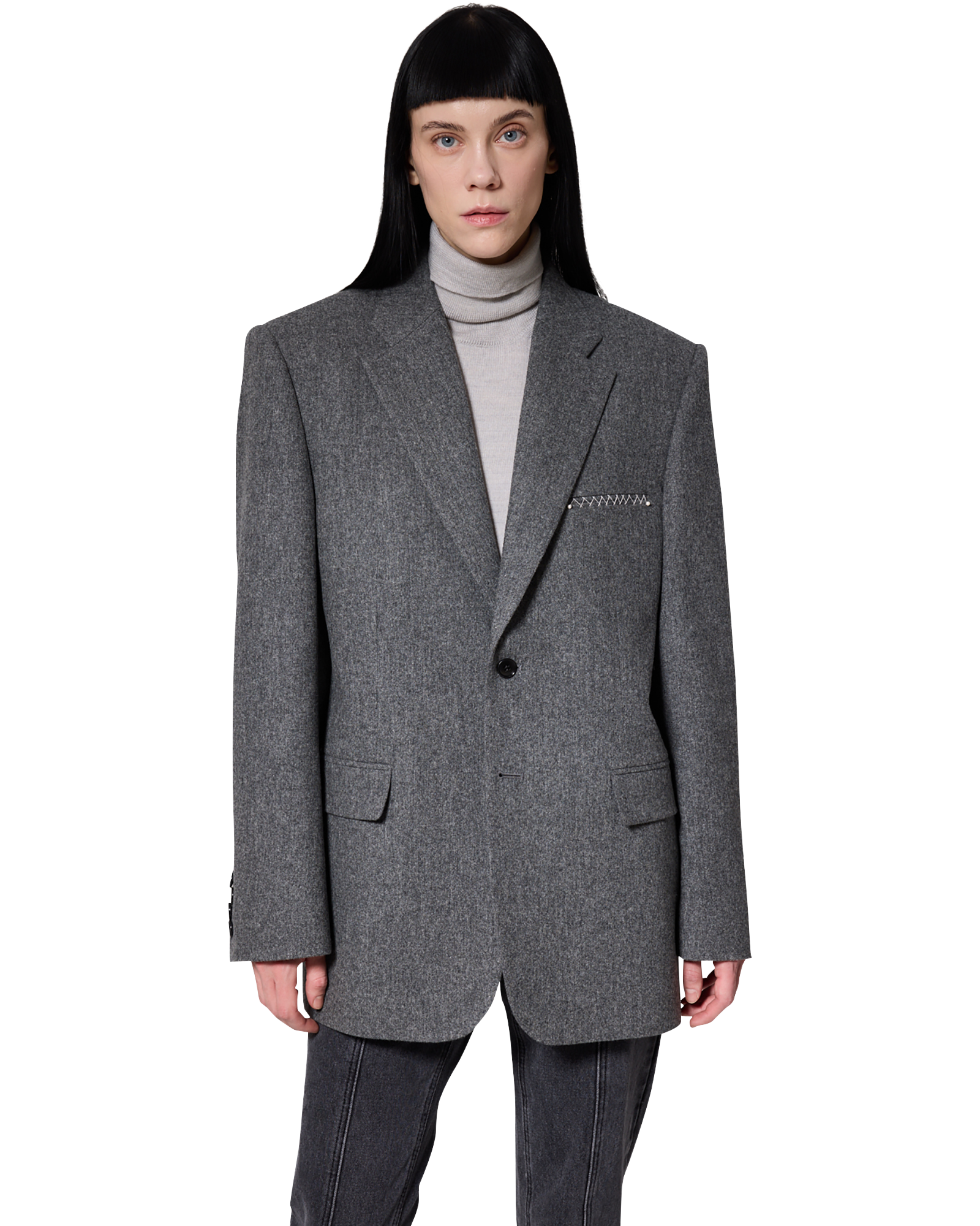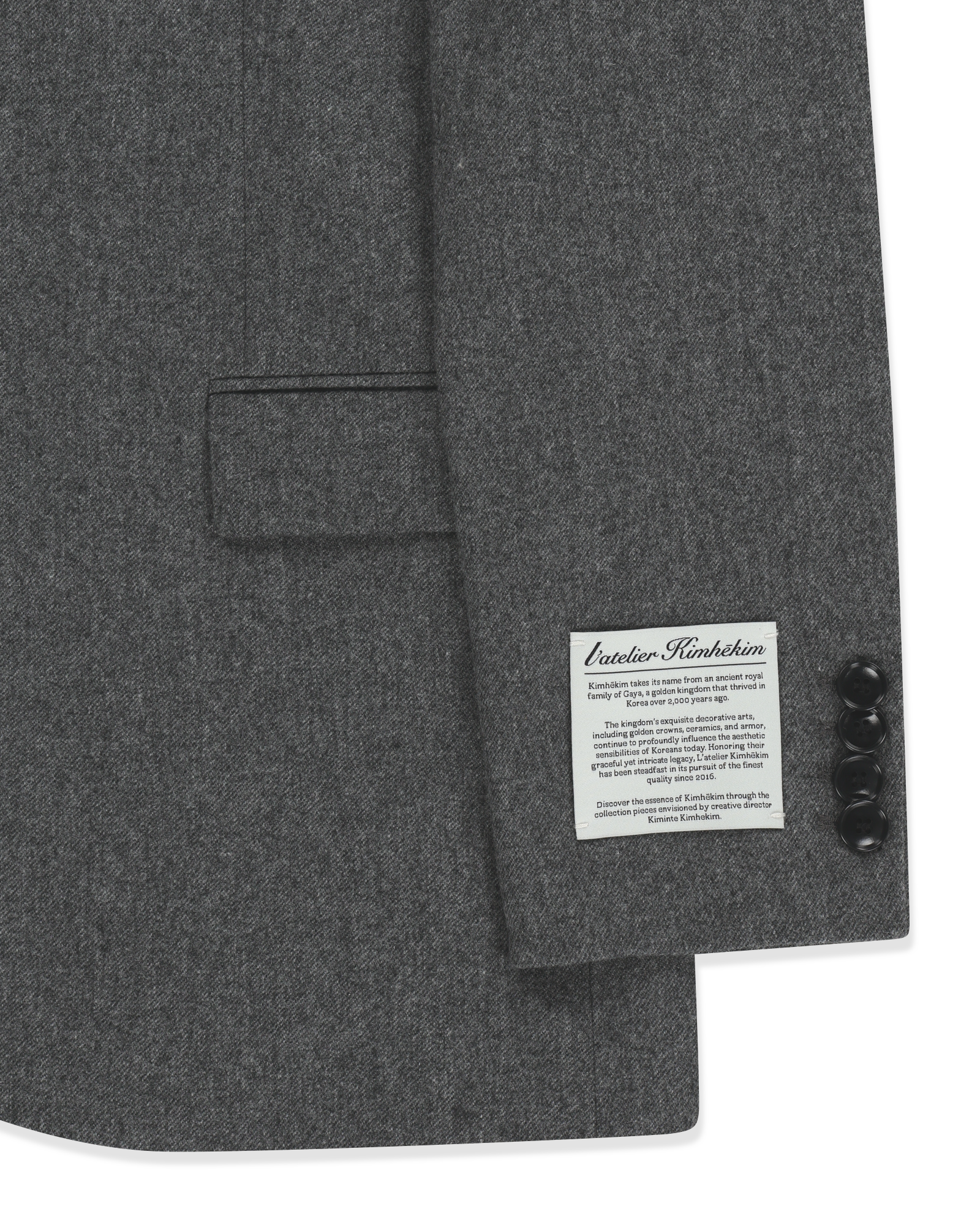 -A tailored jacket made from a wool-cashmere blend fabric.
