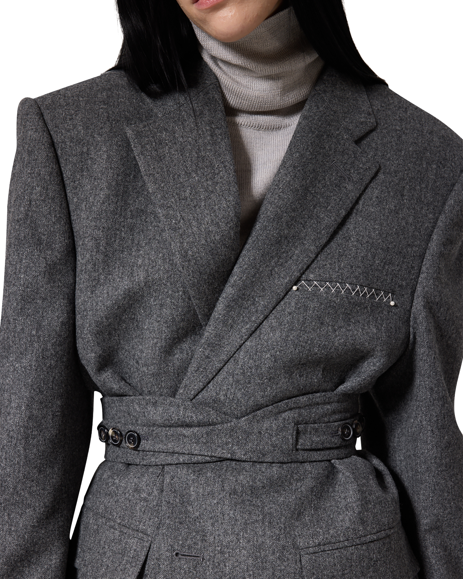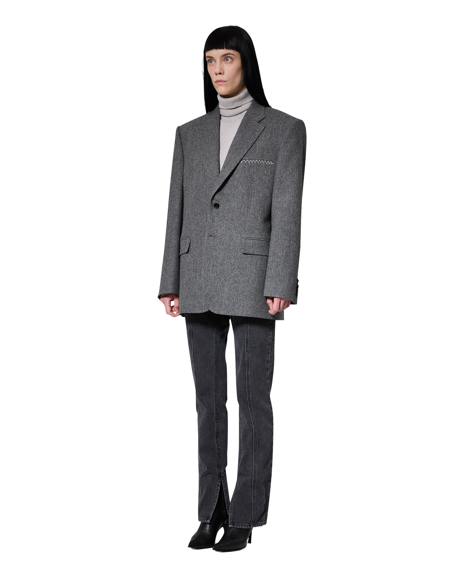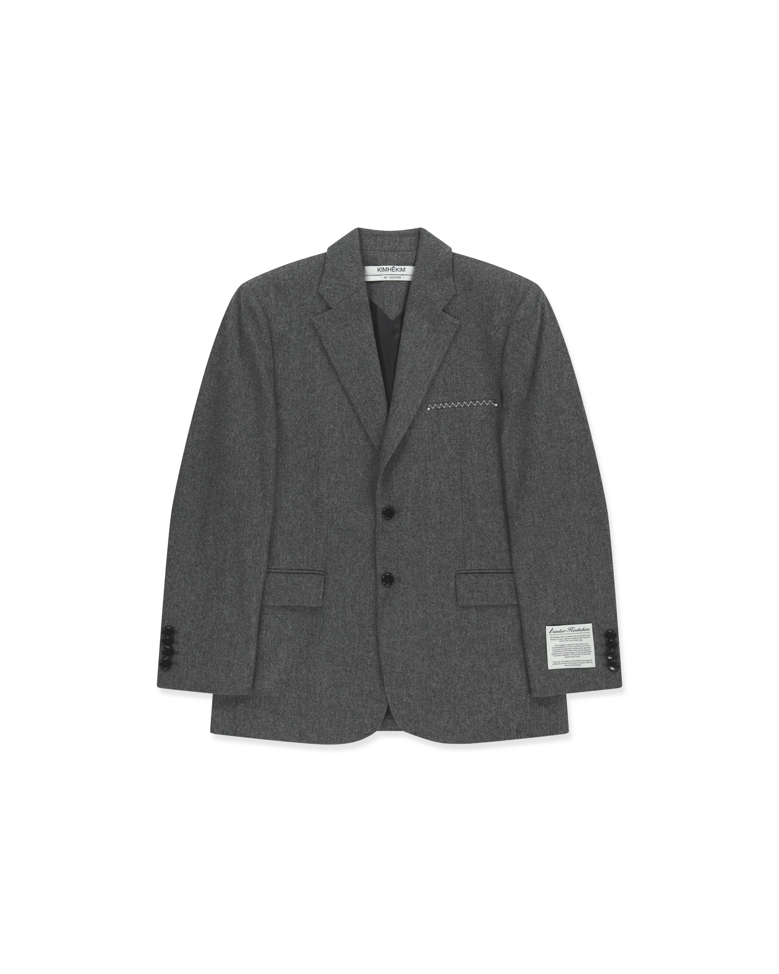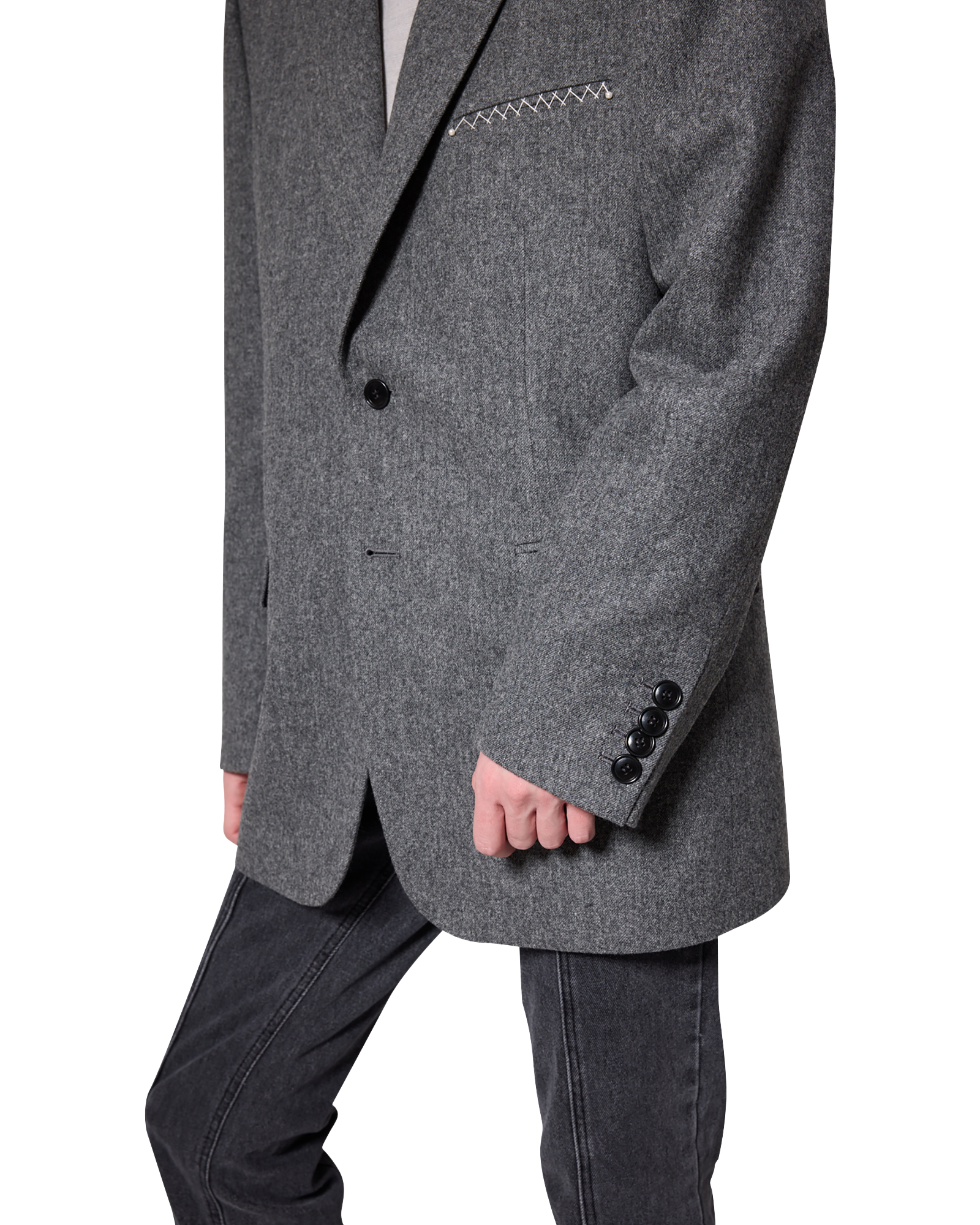 -A tailored jacket made from a wool-cashmere blend fabric.
