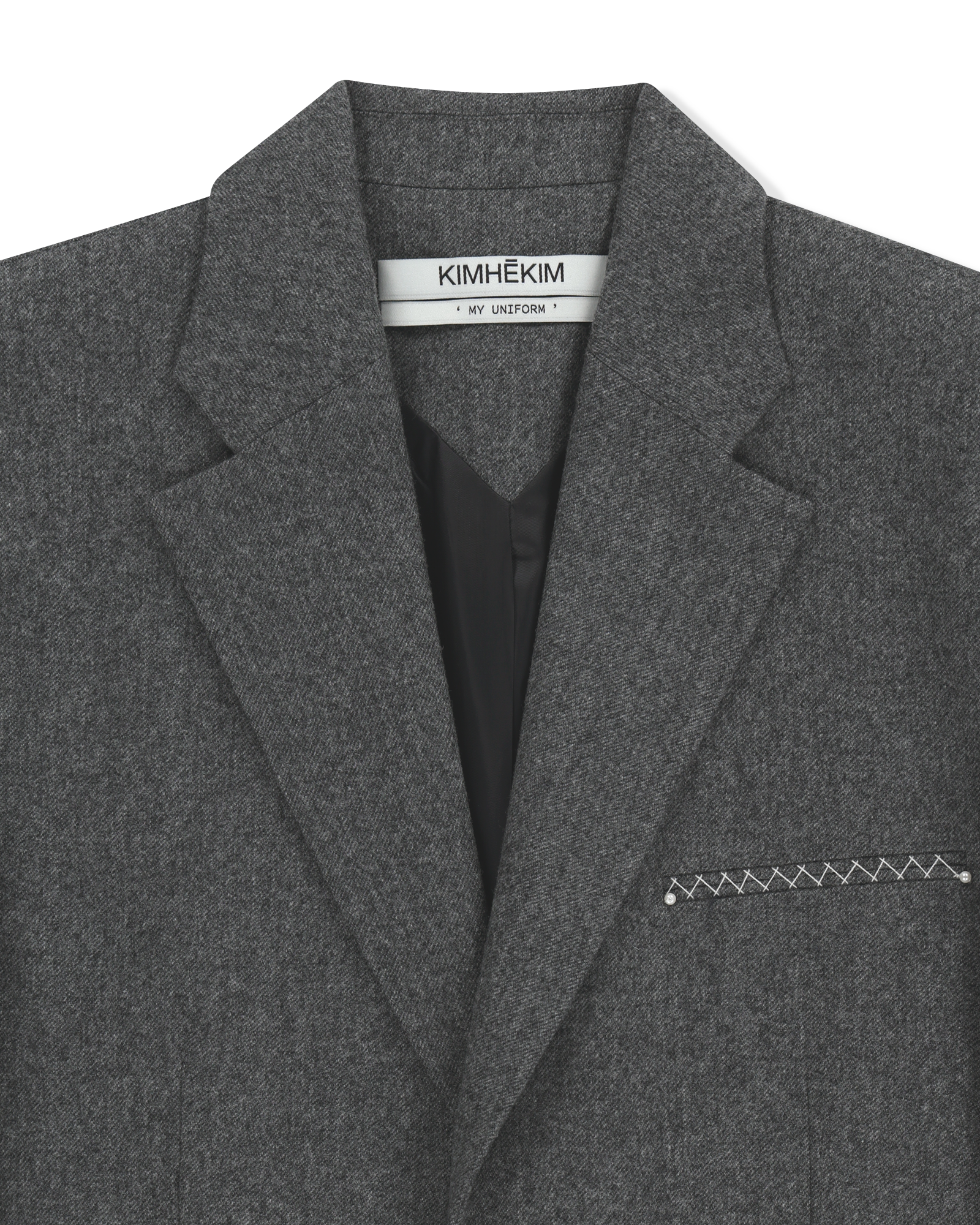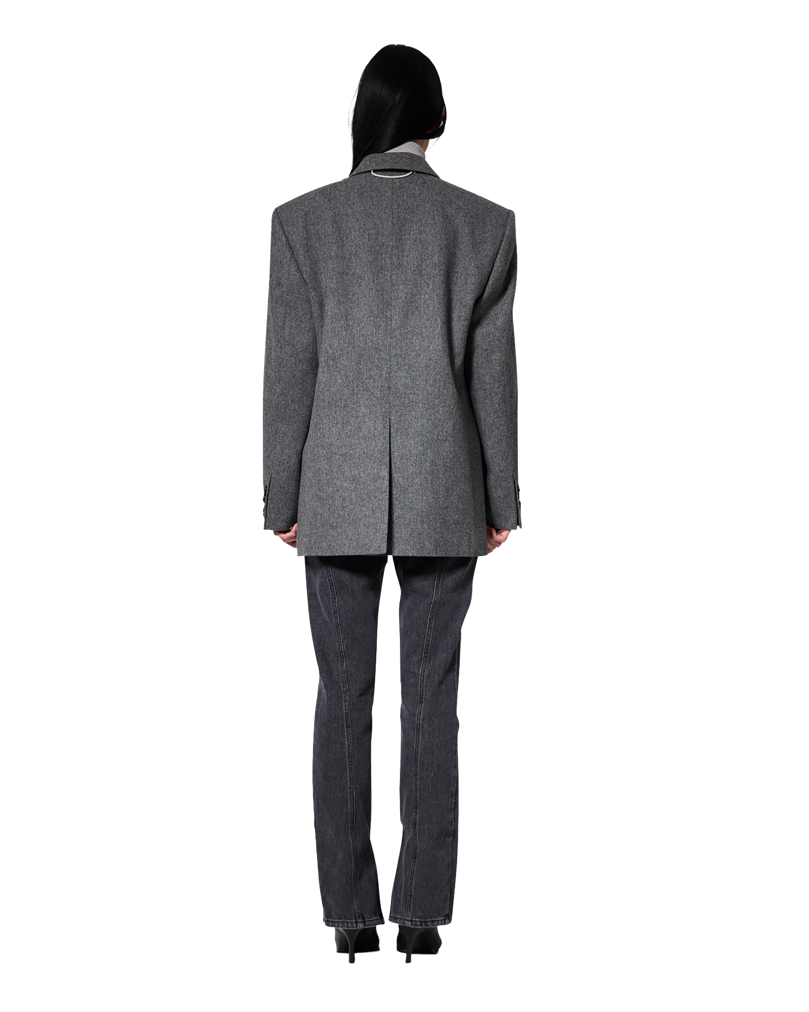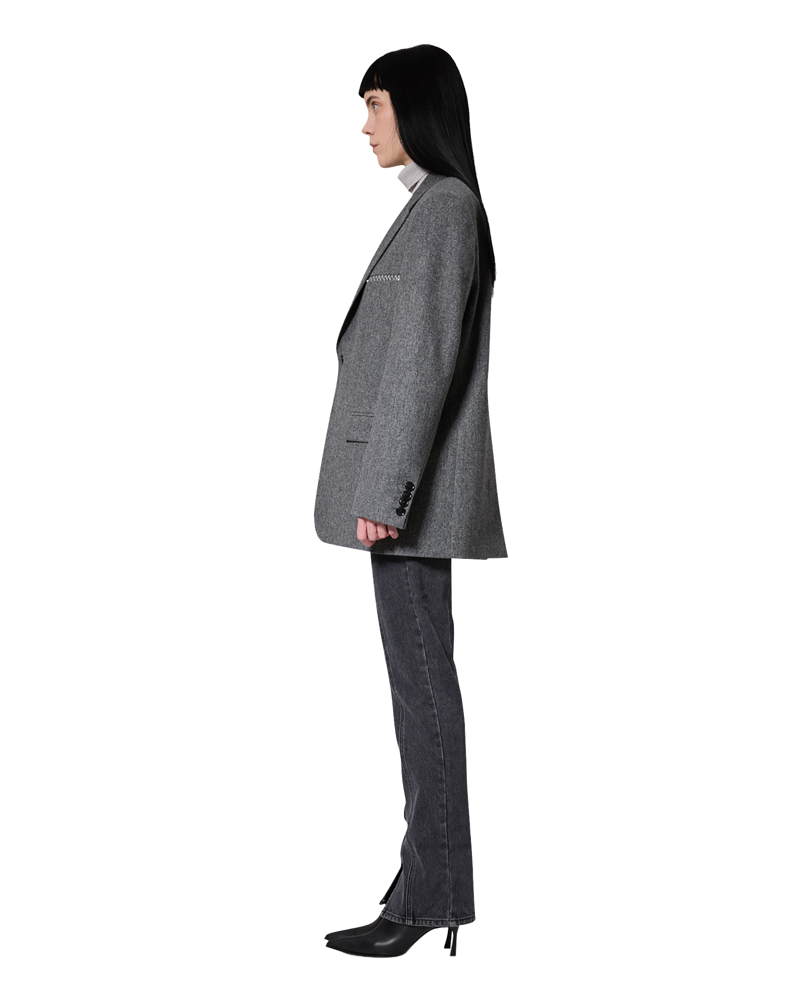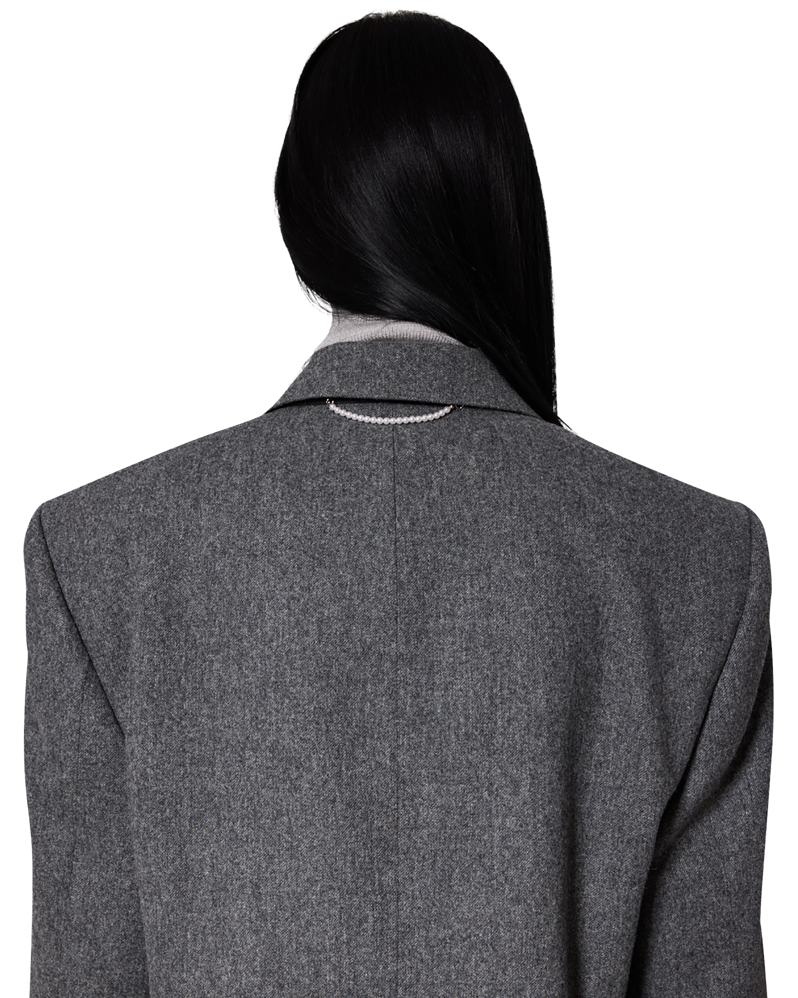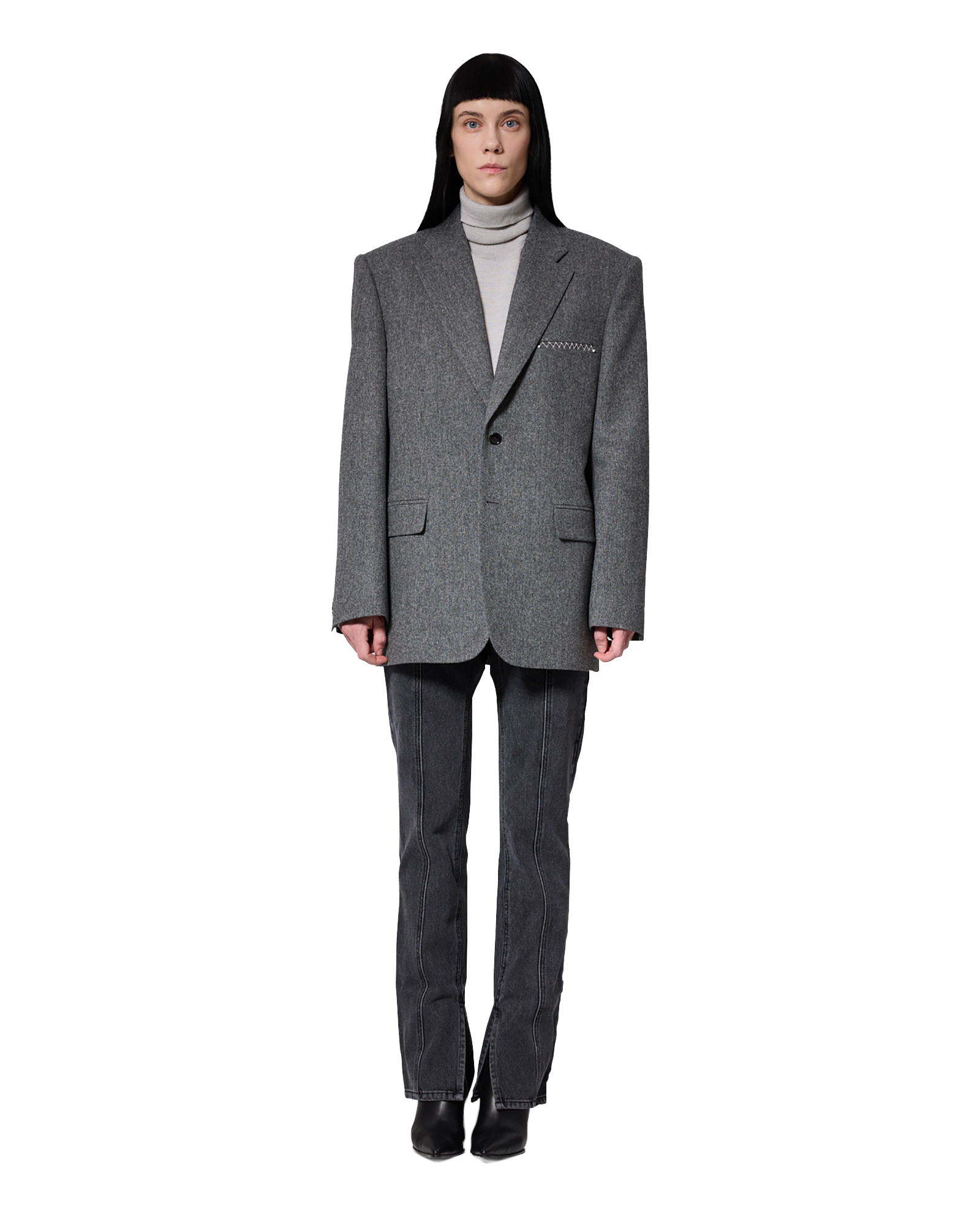 -A tailored jacket made from a wool-cashmere blend fabric.