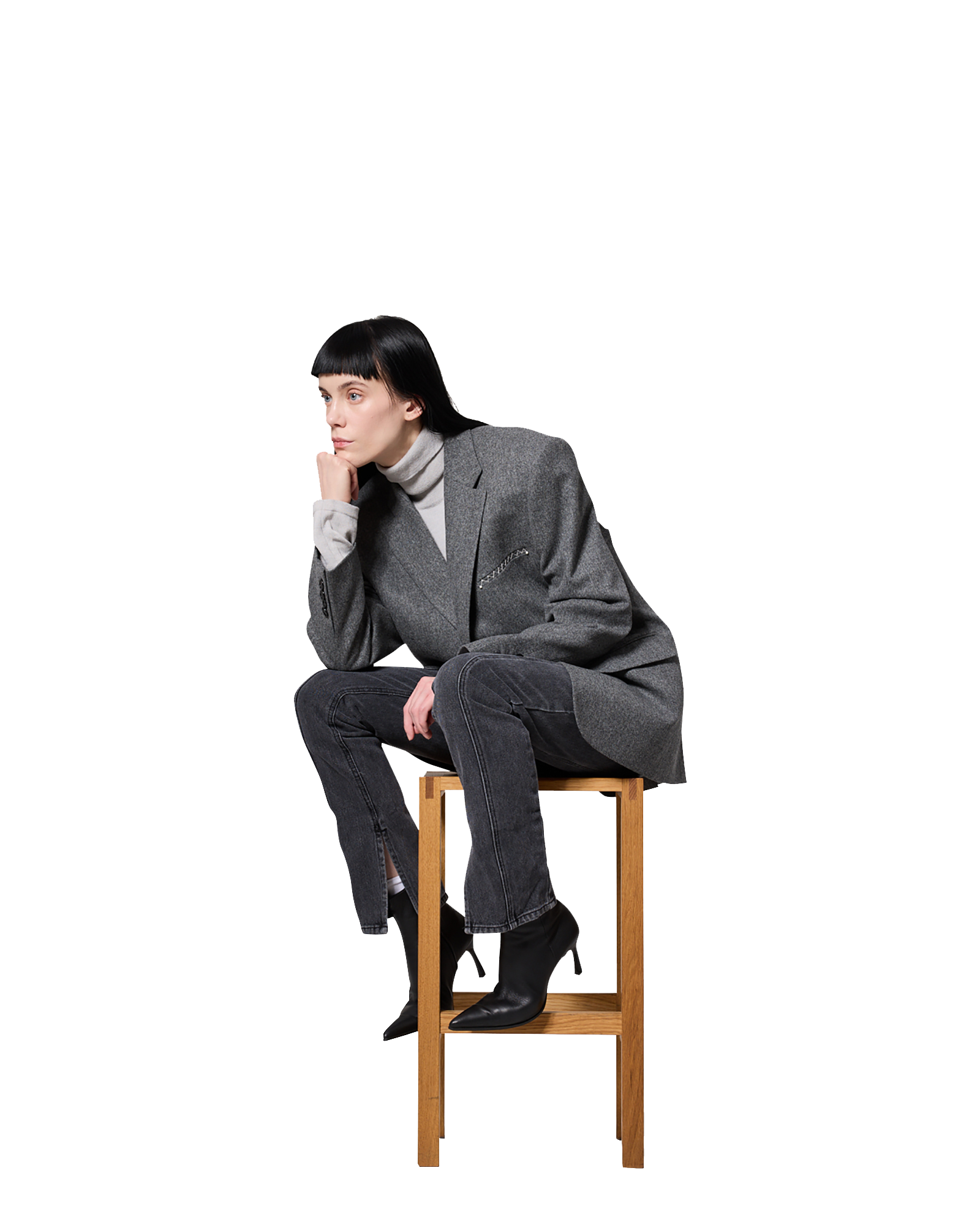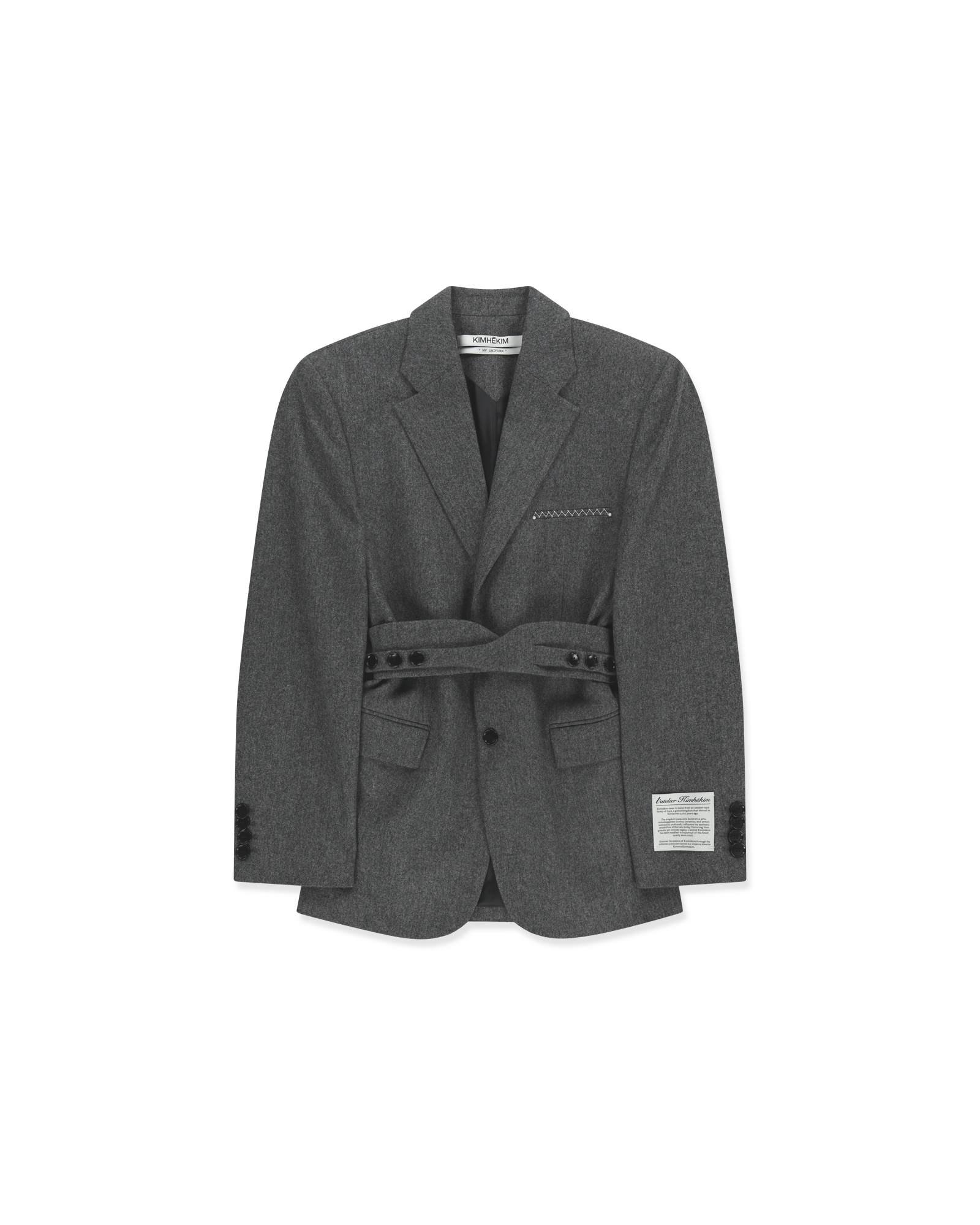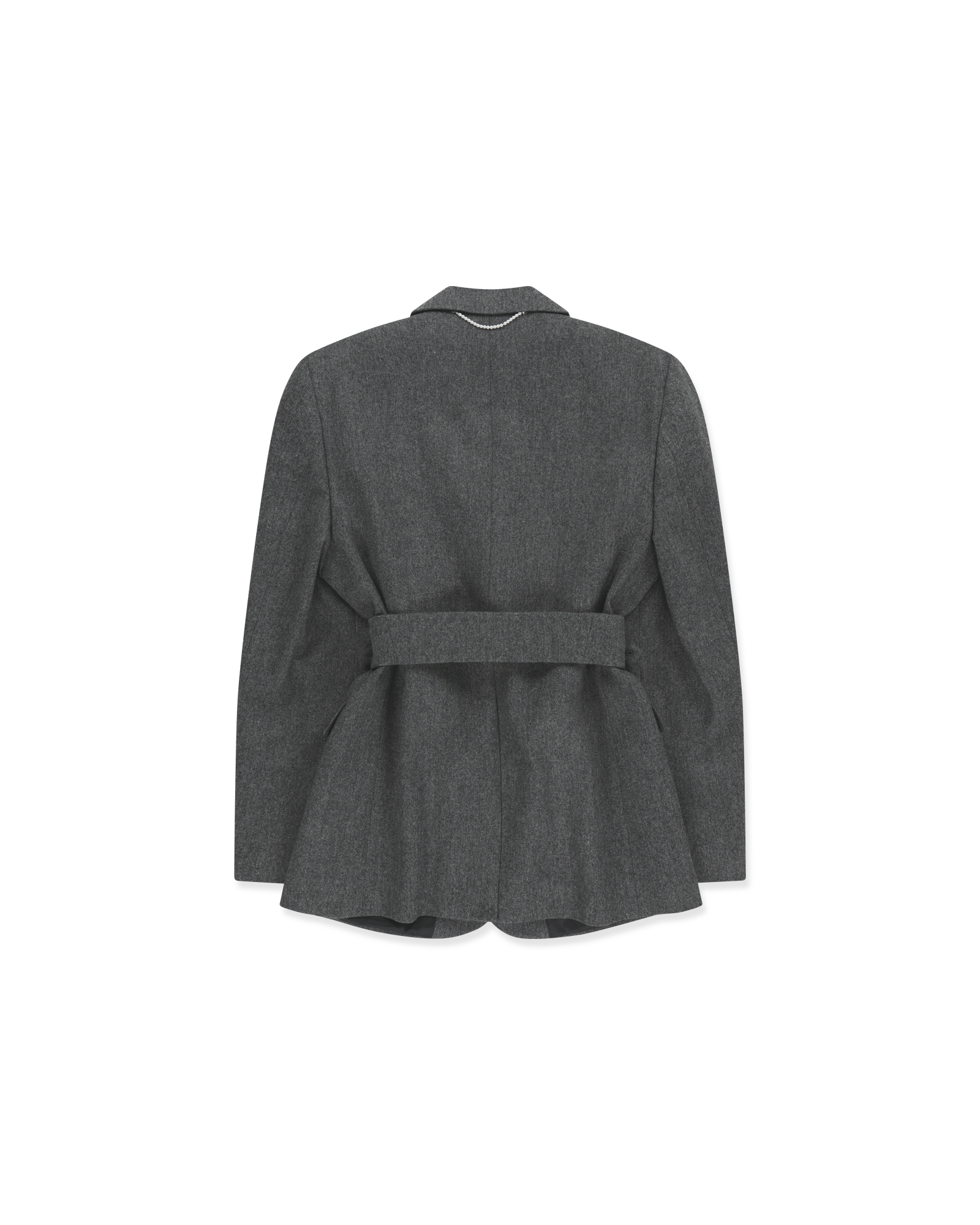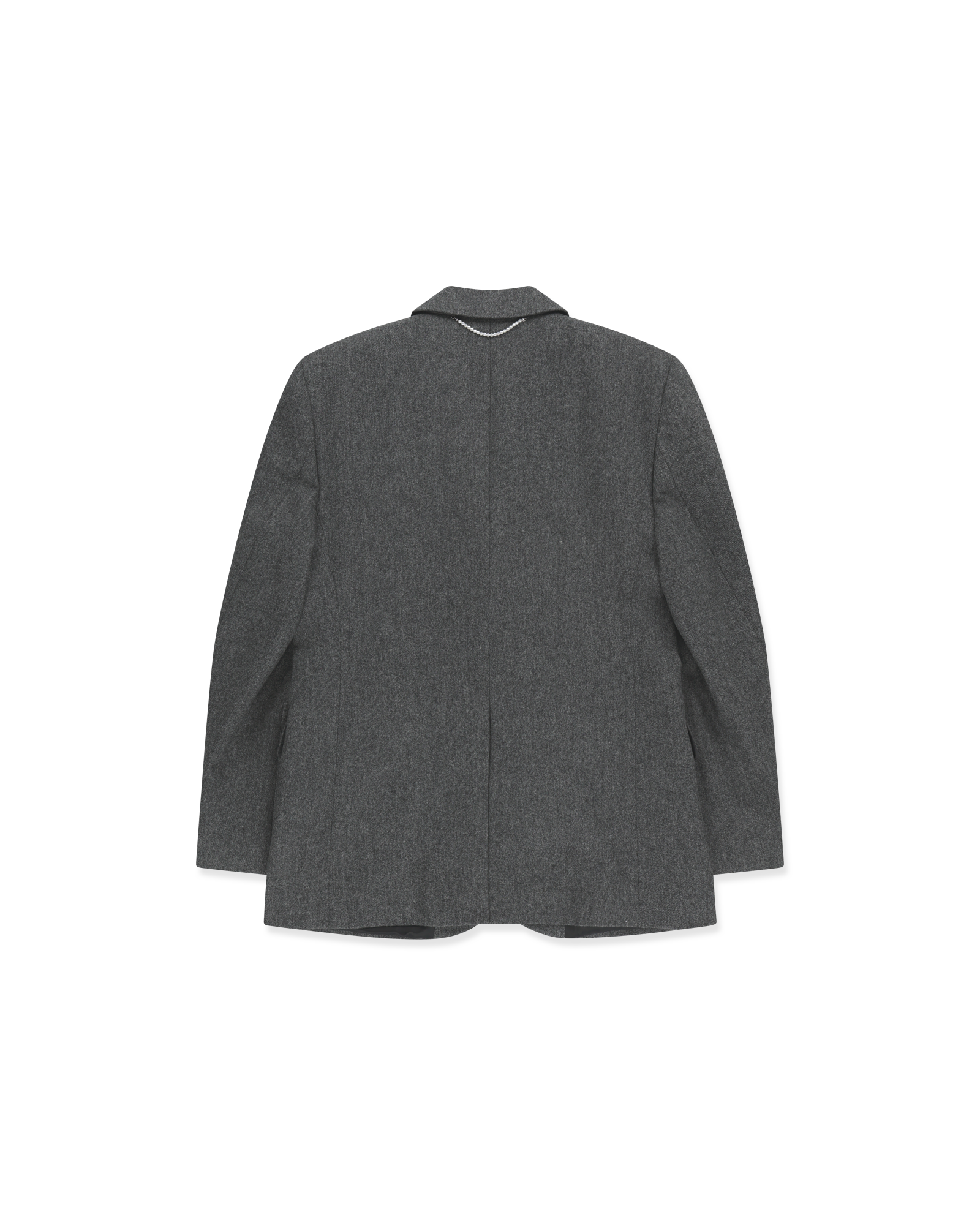 -A tailored jacket made from a wool-cashmere blend fabric.