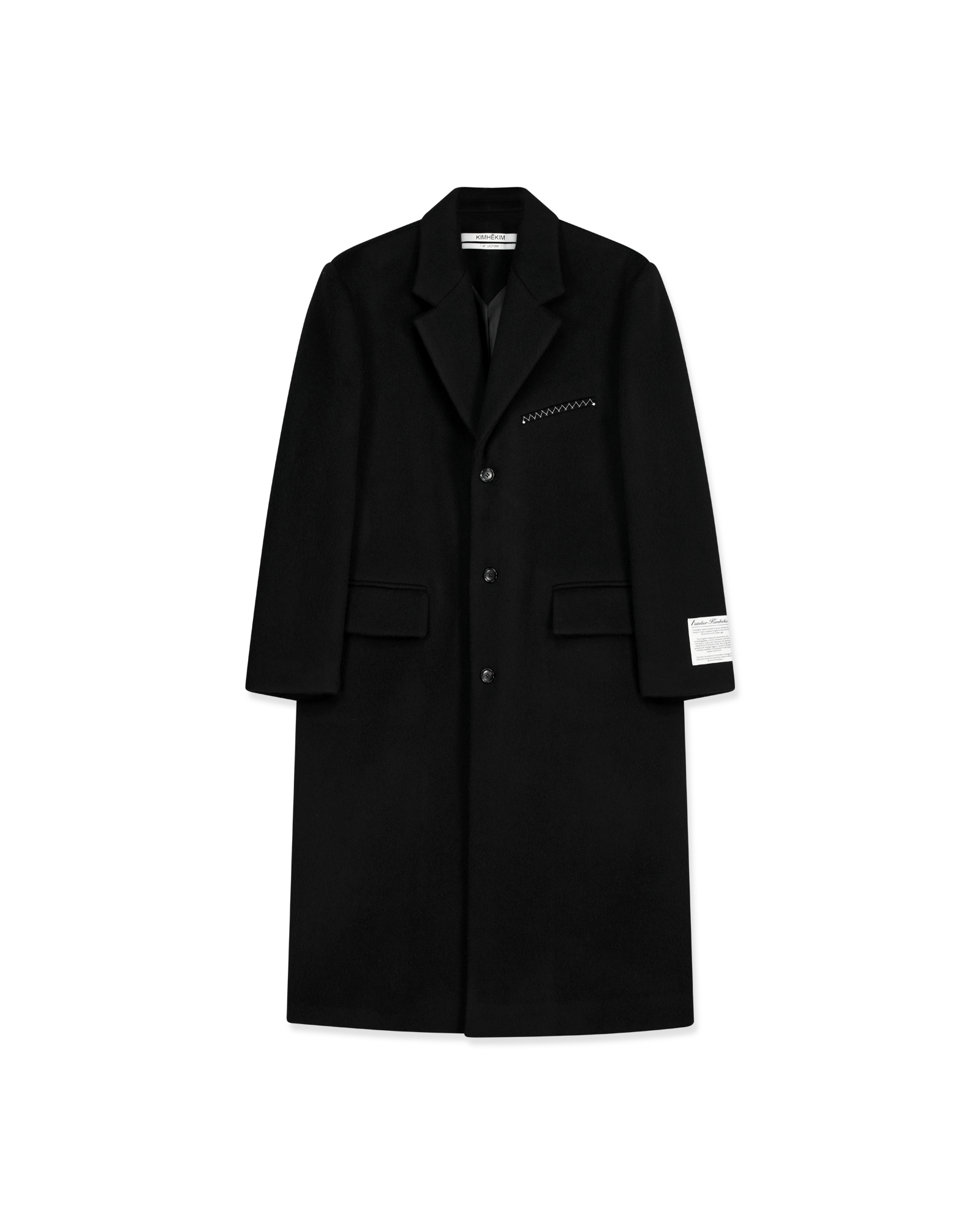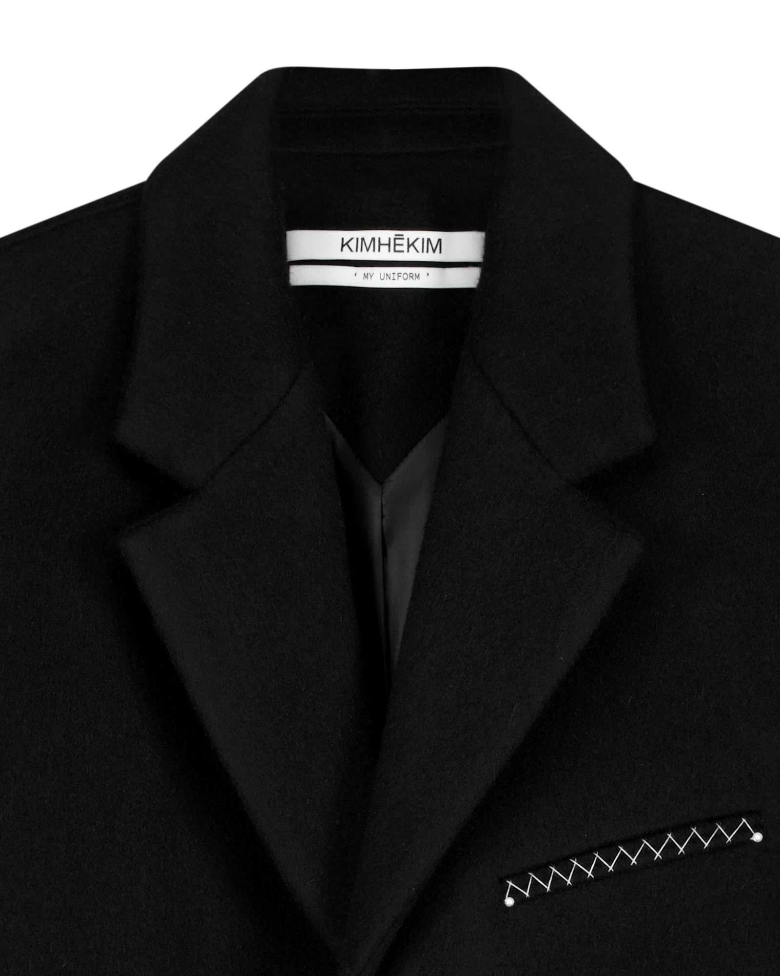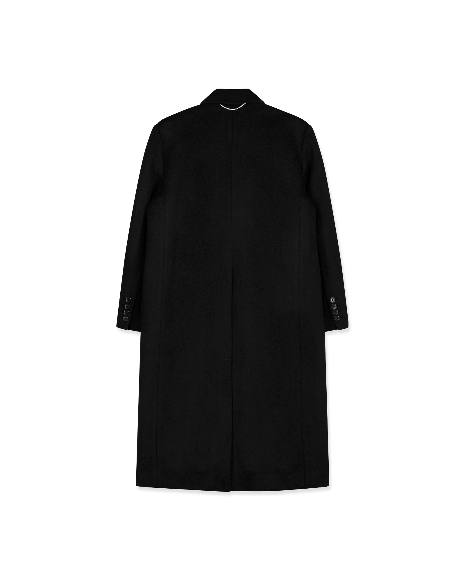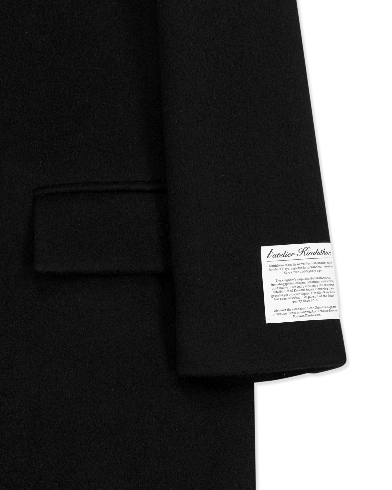 -An oversized single coat made from a wool-alpaca blend fabric.