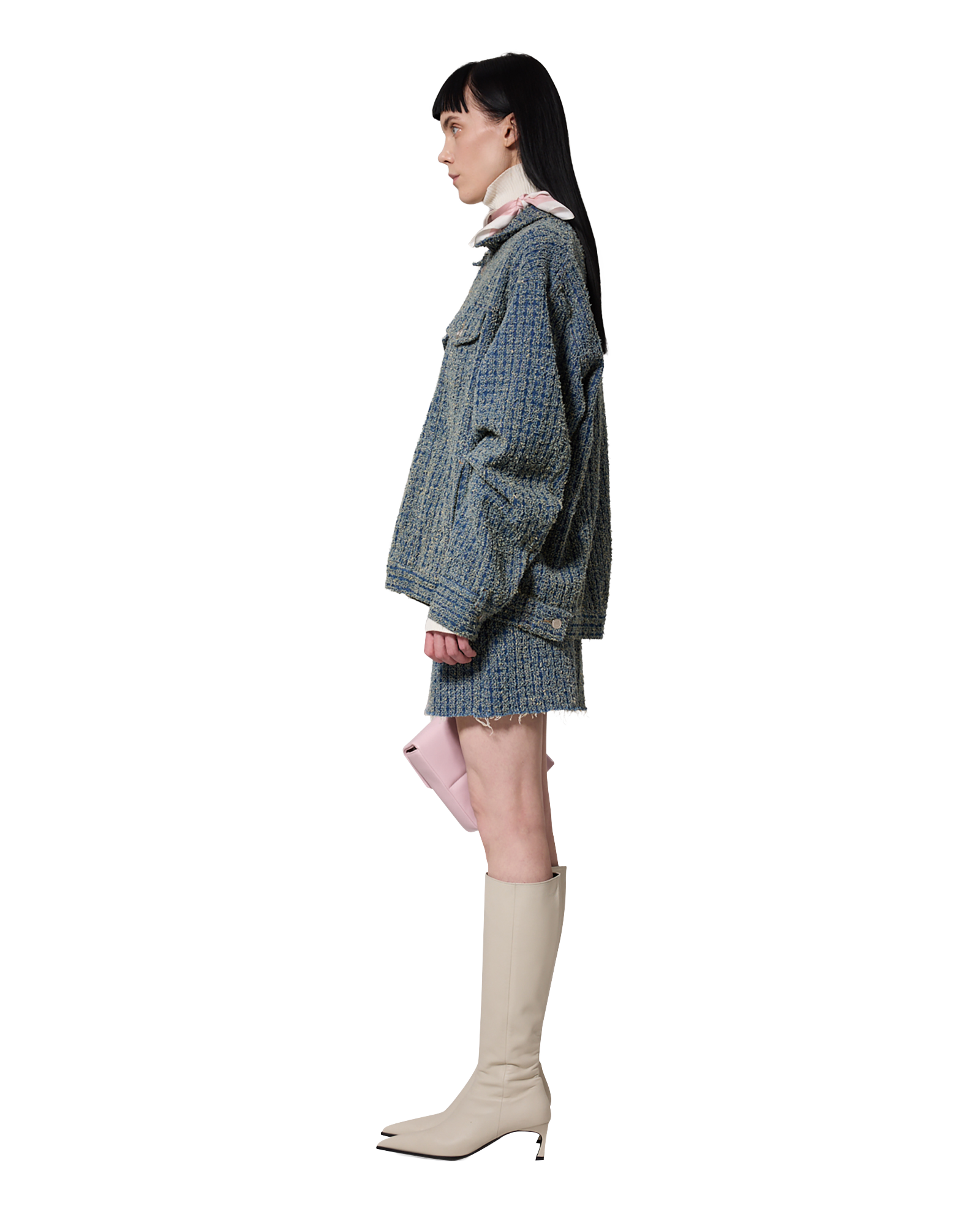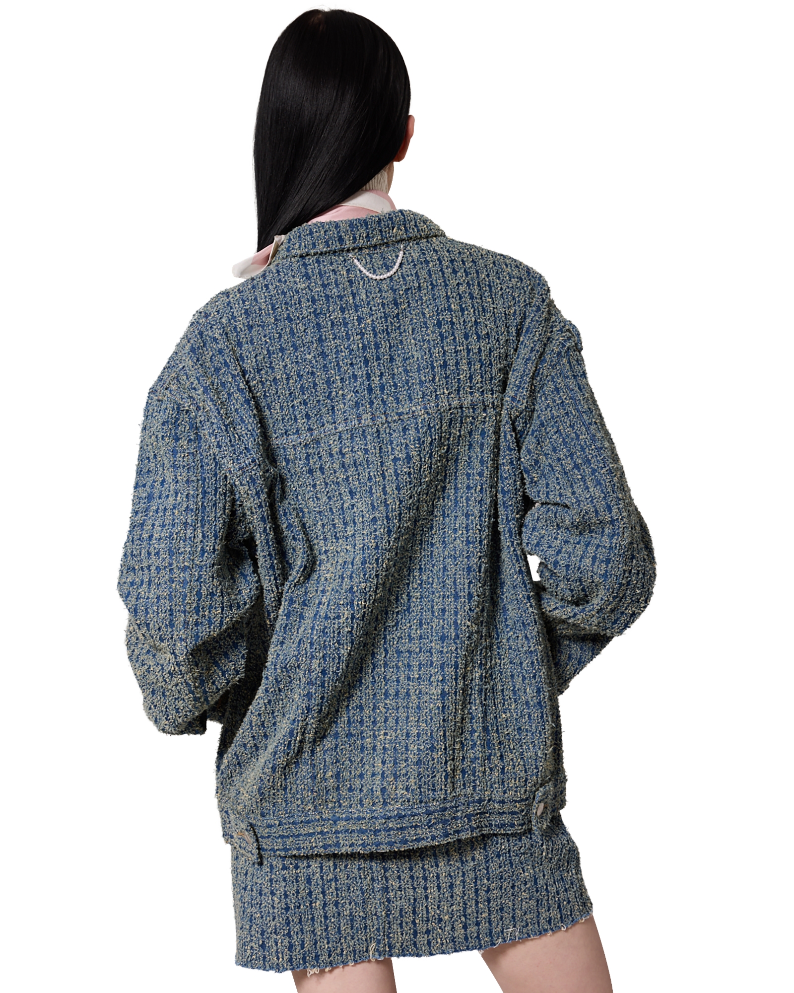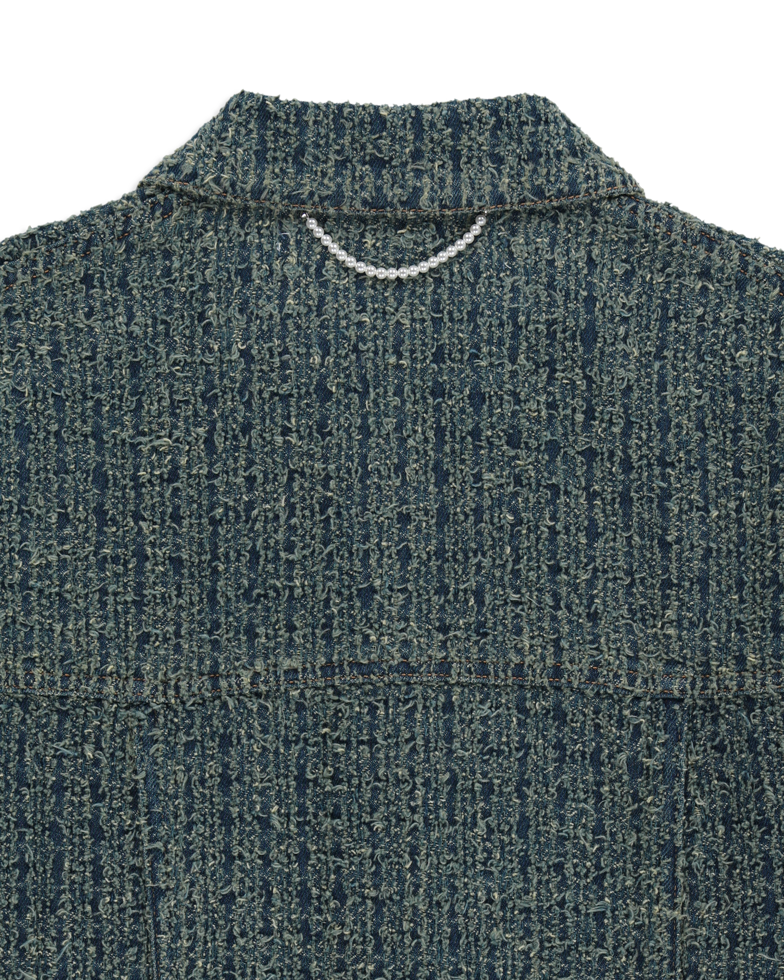 Pearl Embellished V-Neck Cardigan (Melange Dark Grey)