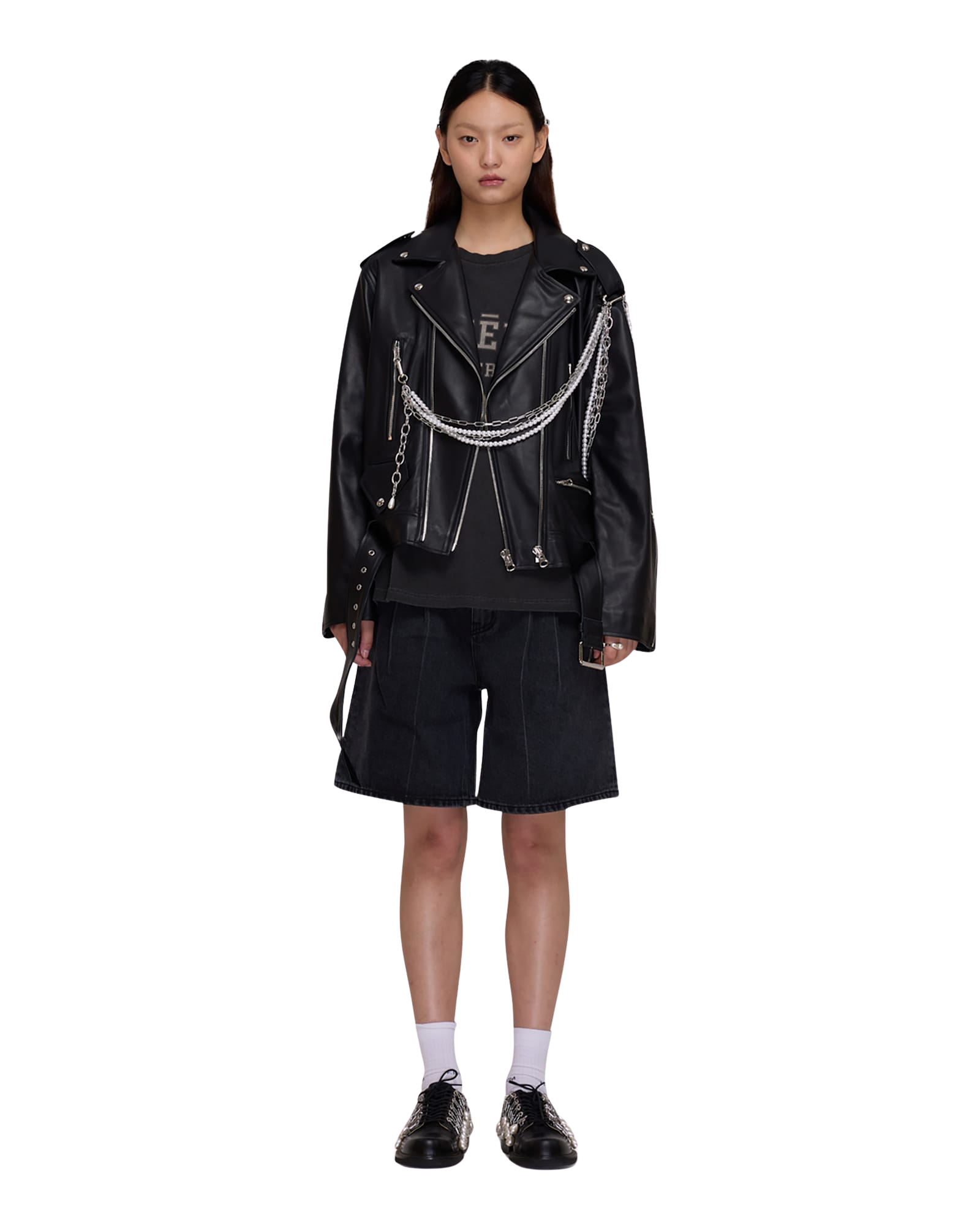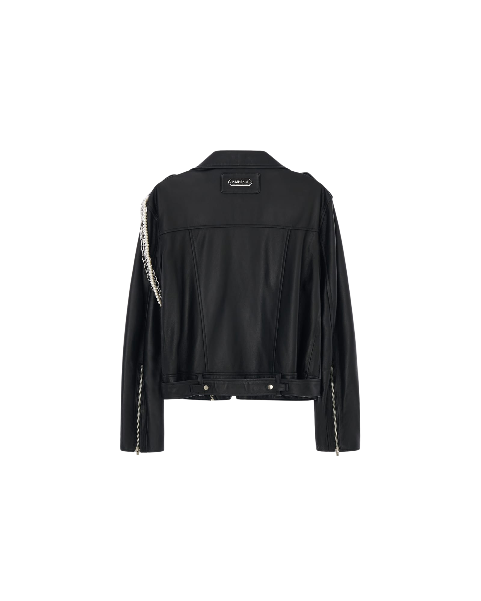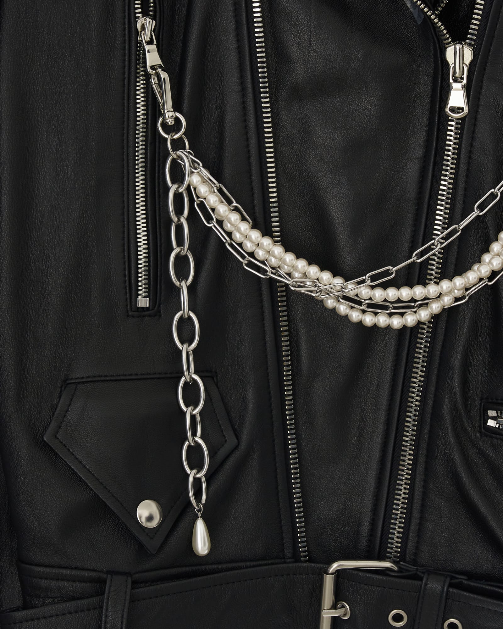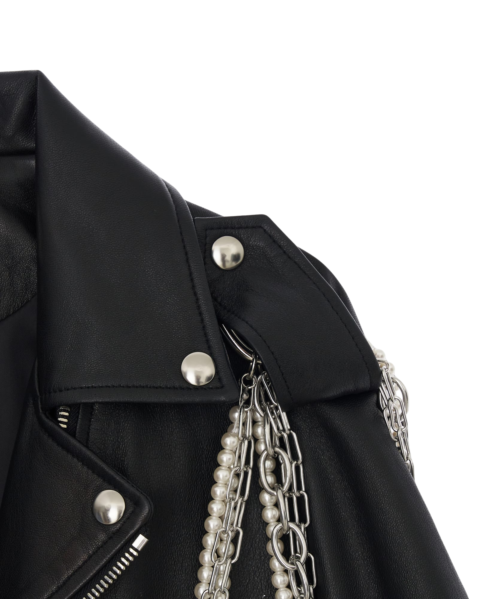 Detachable Pearl Chain Leather Jacket (Black)