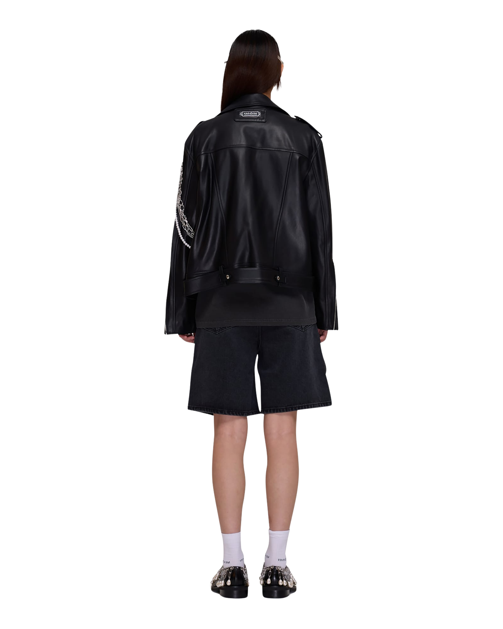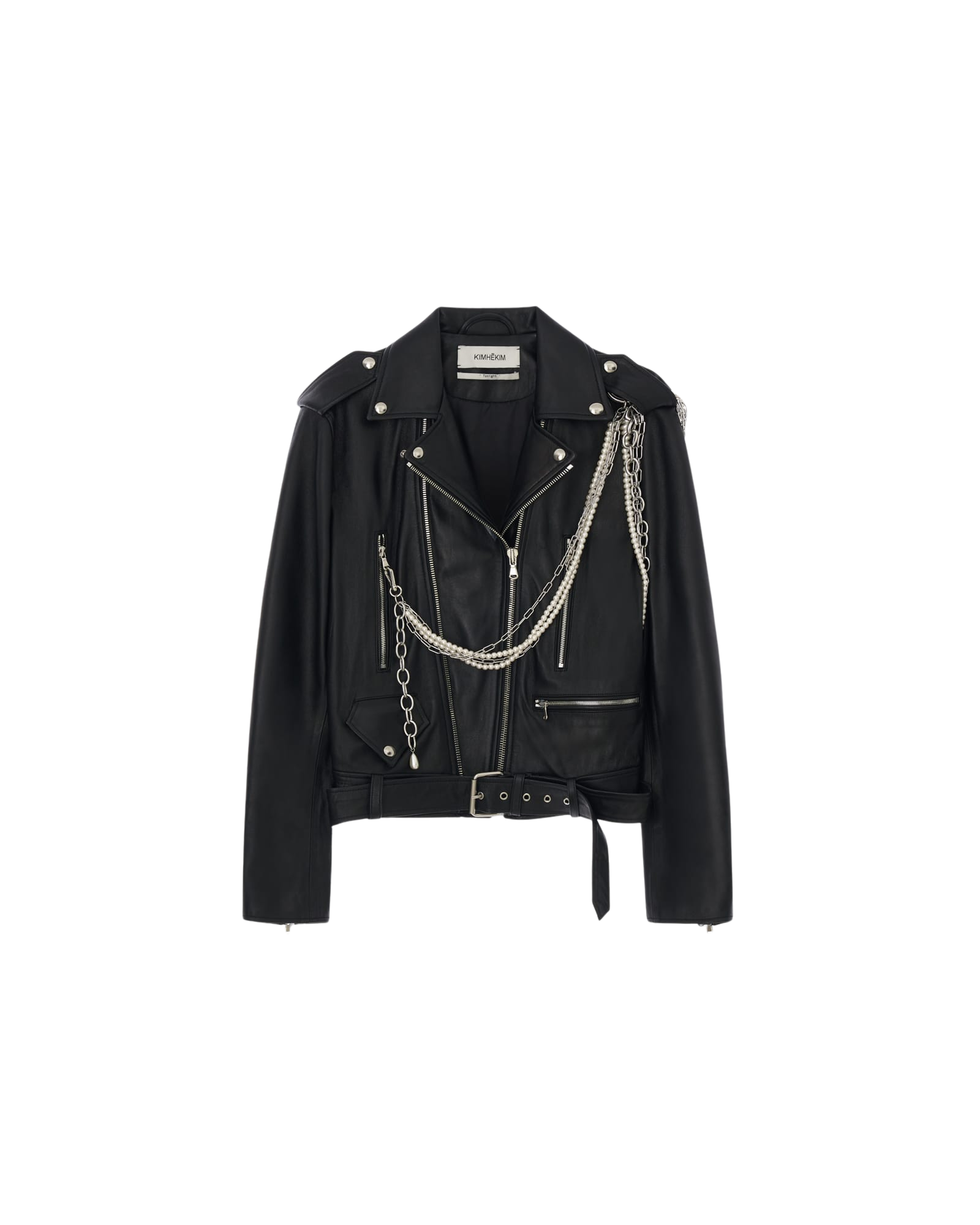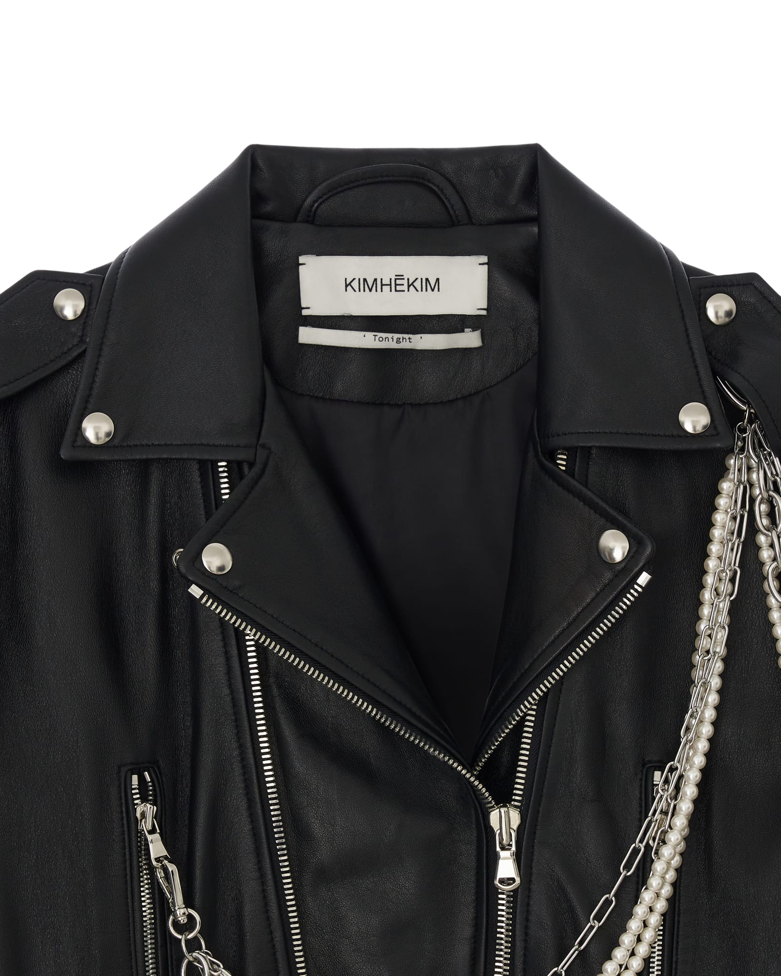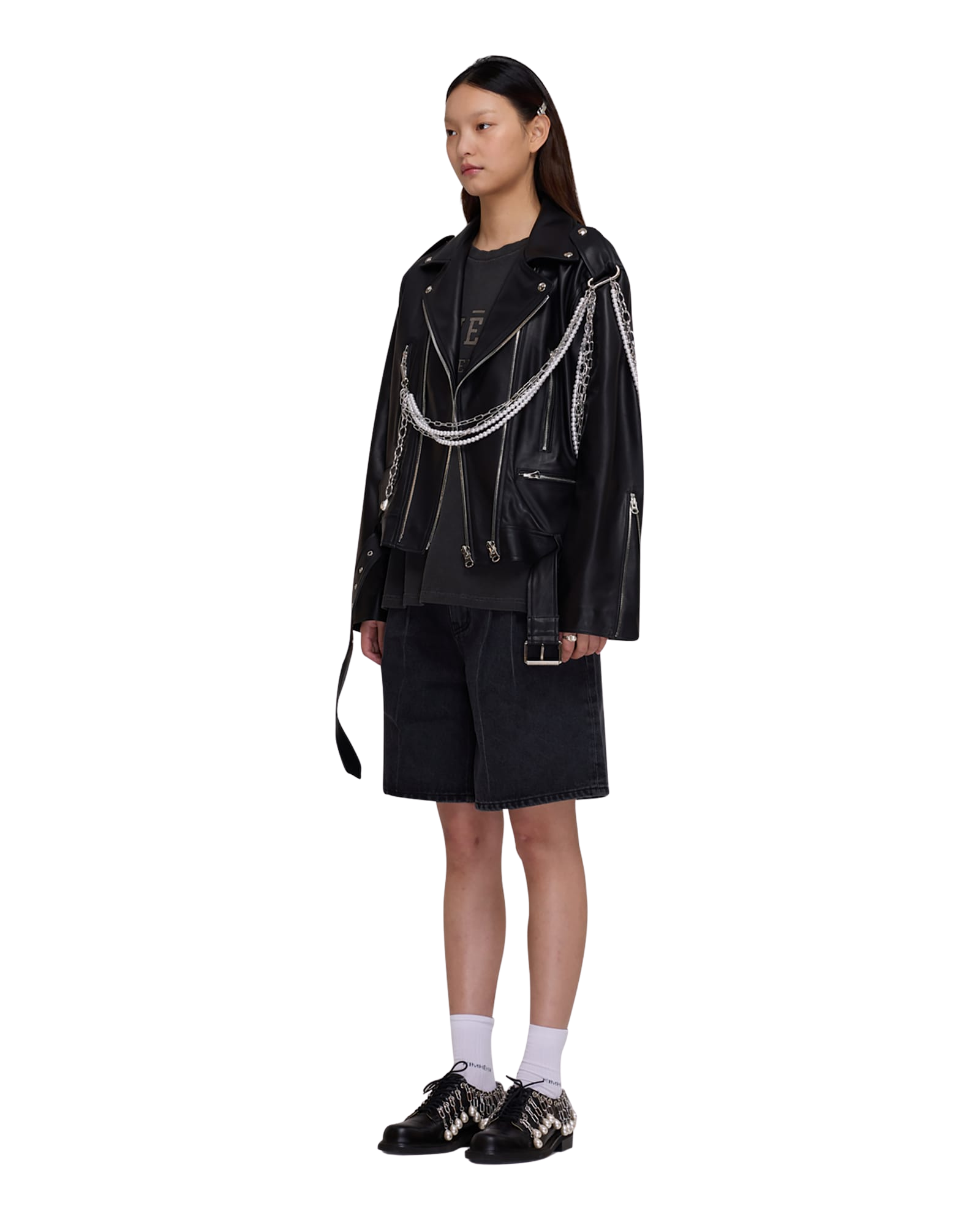 Detachable Pearl Chain Leather Jacket (Black)