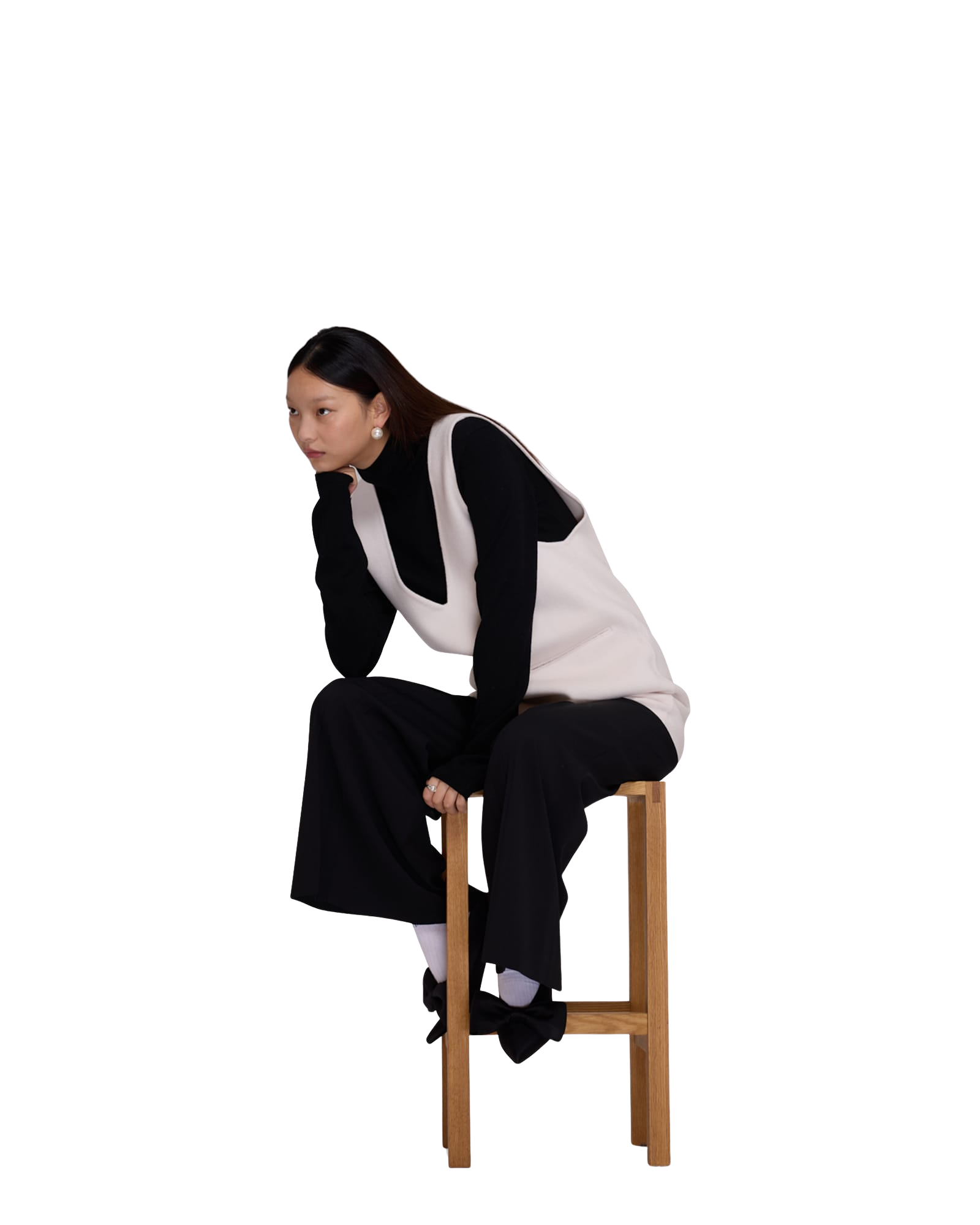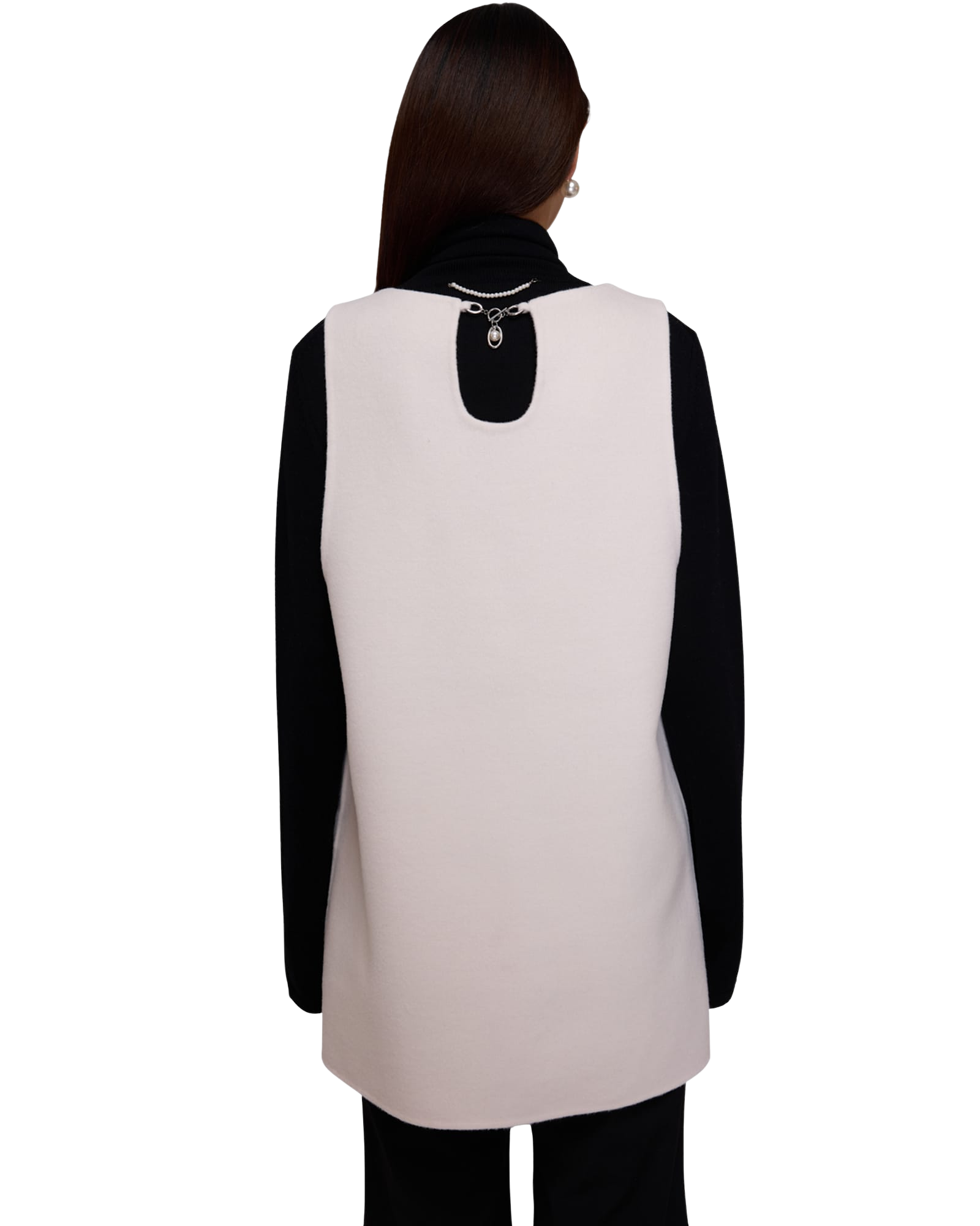 Double Faced Chain Embellishment Sleeveless Vest (Cream)