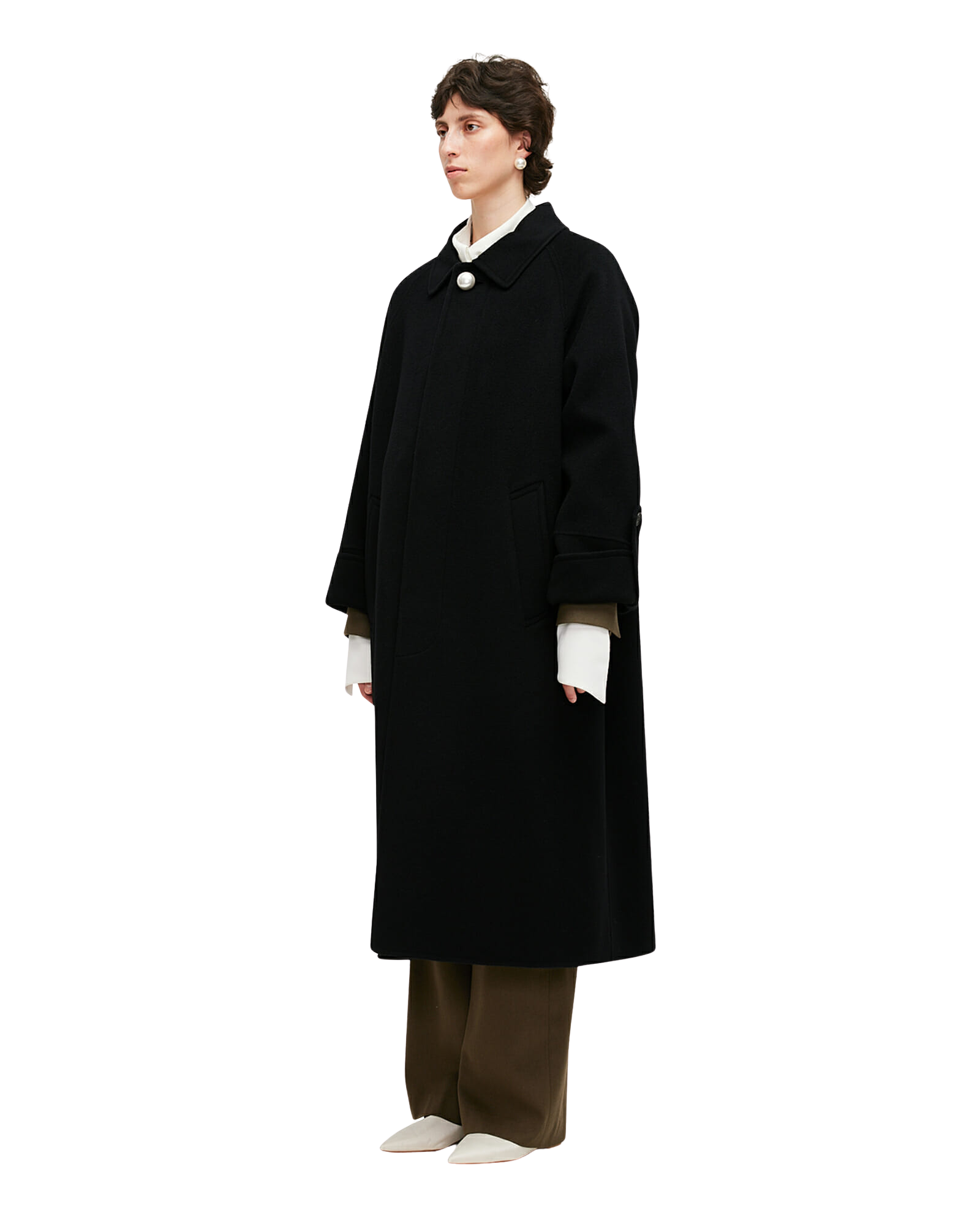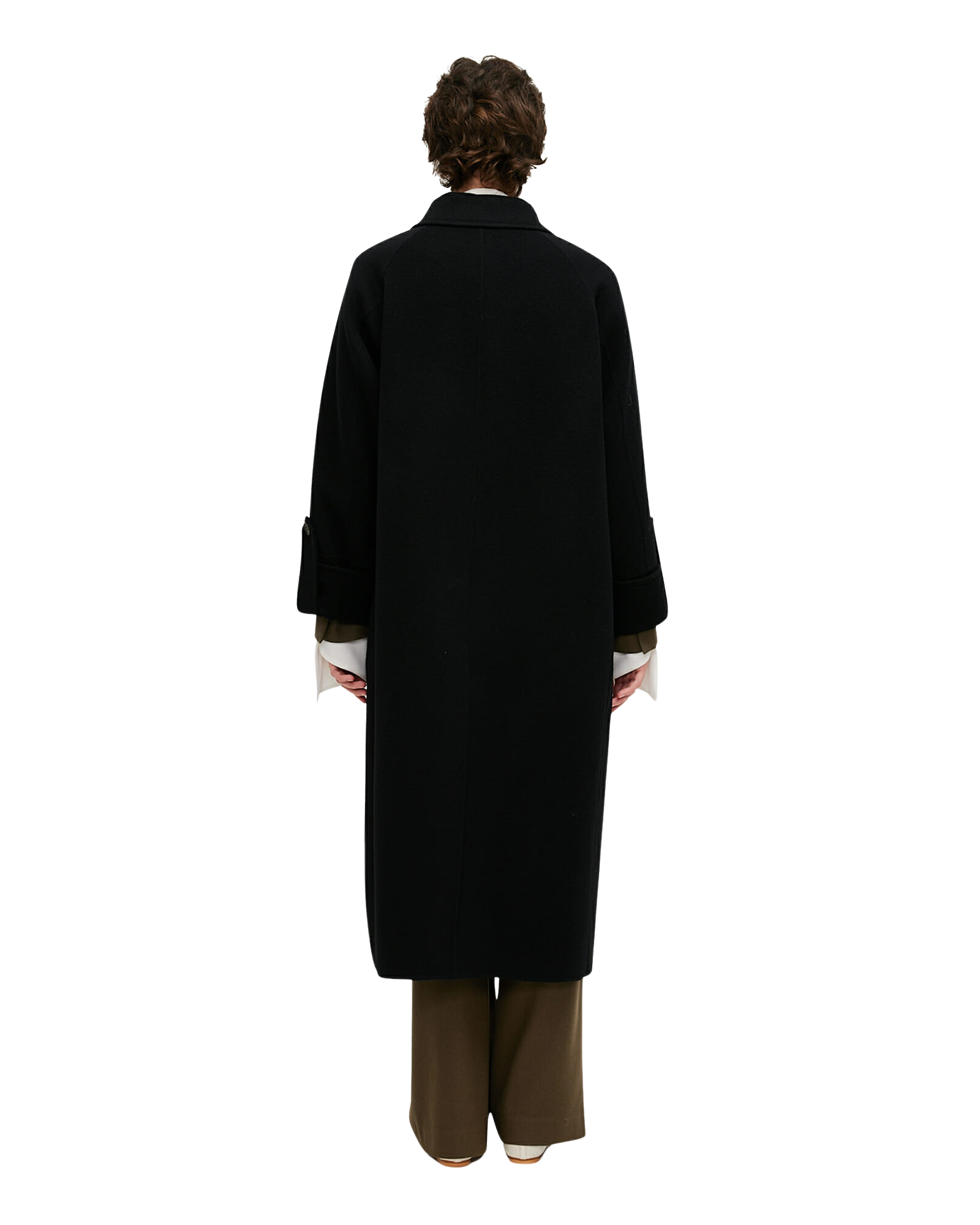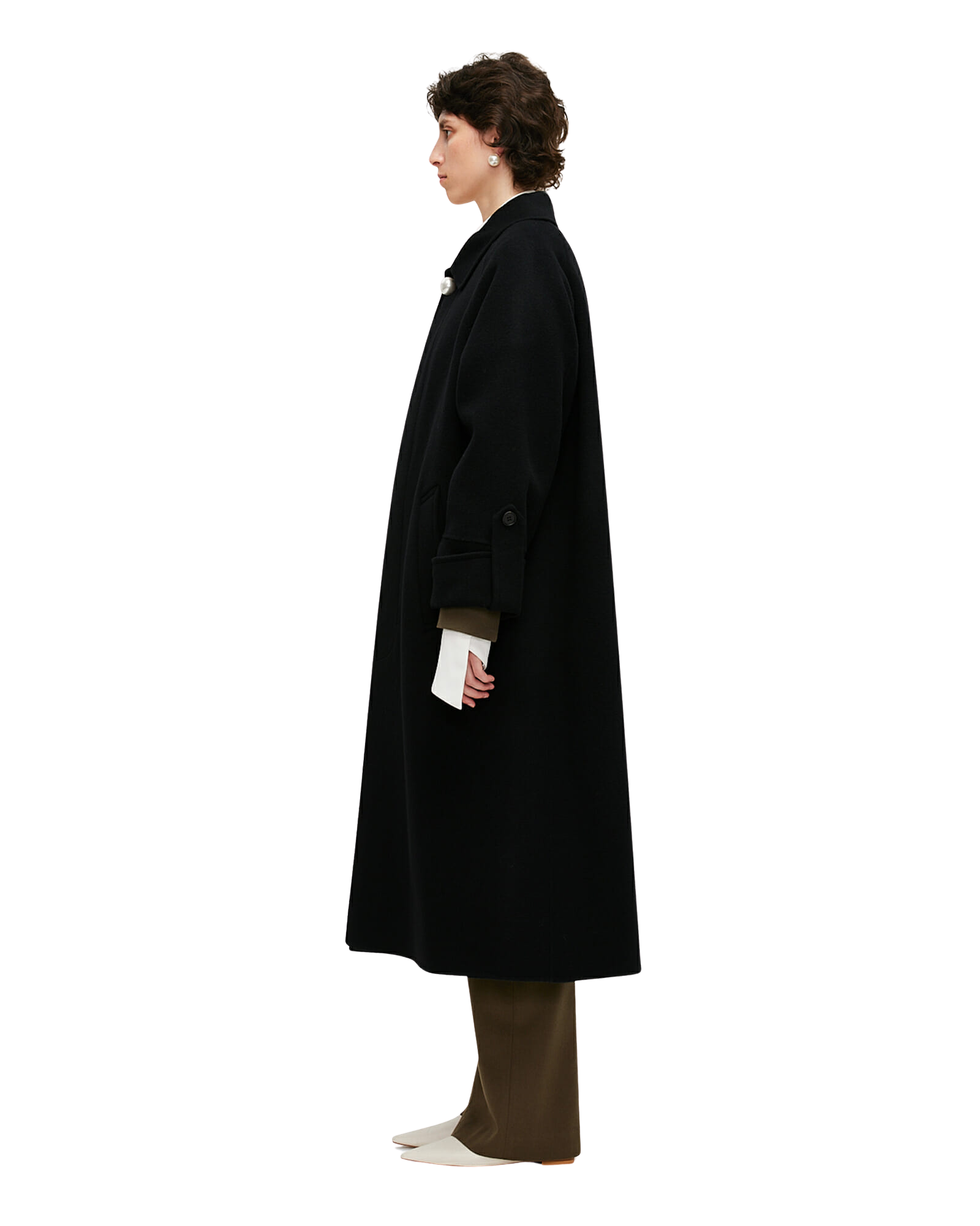 Double Faced Wool-Cashmere Pearl Button Coat (Black)
