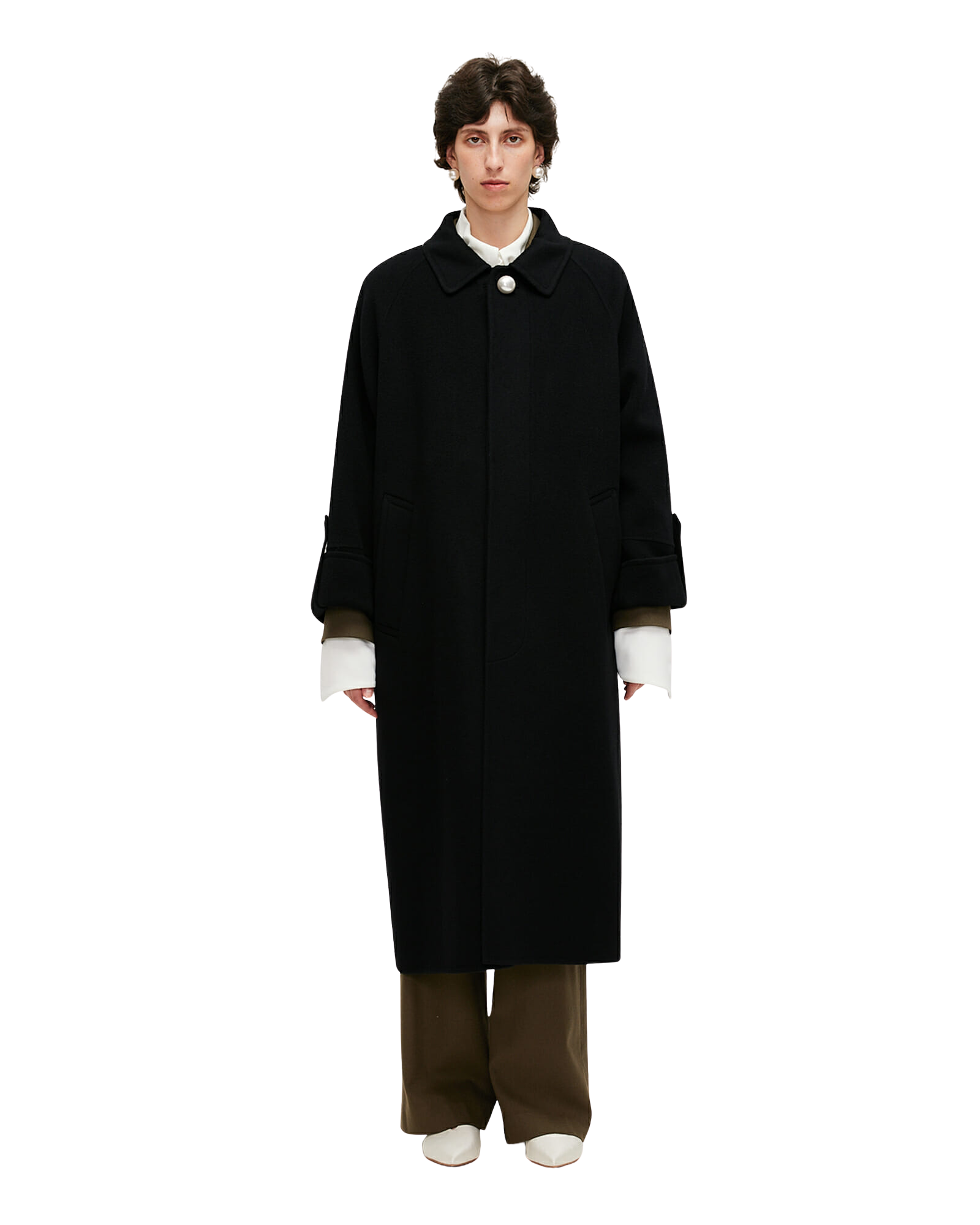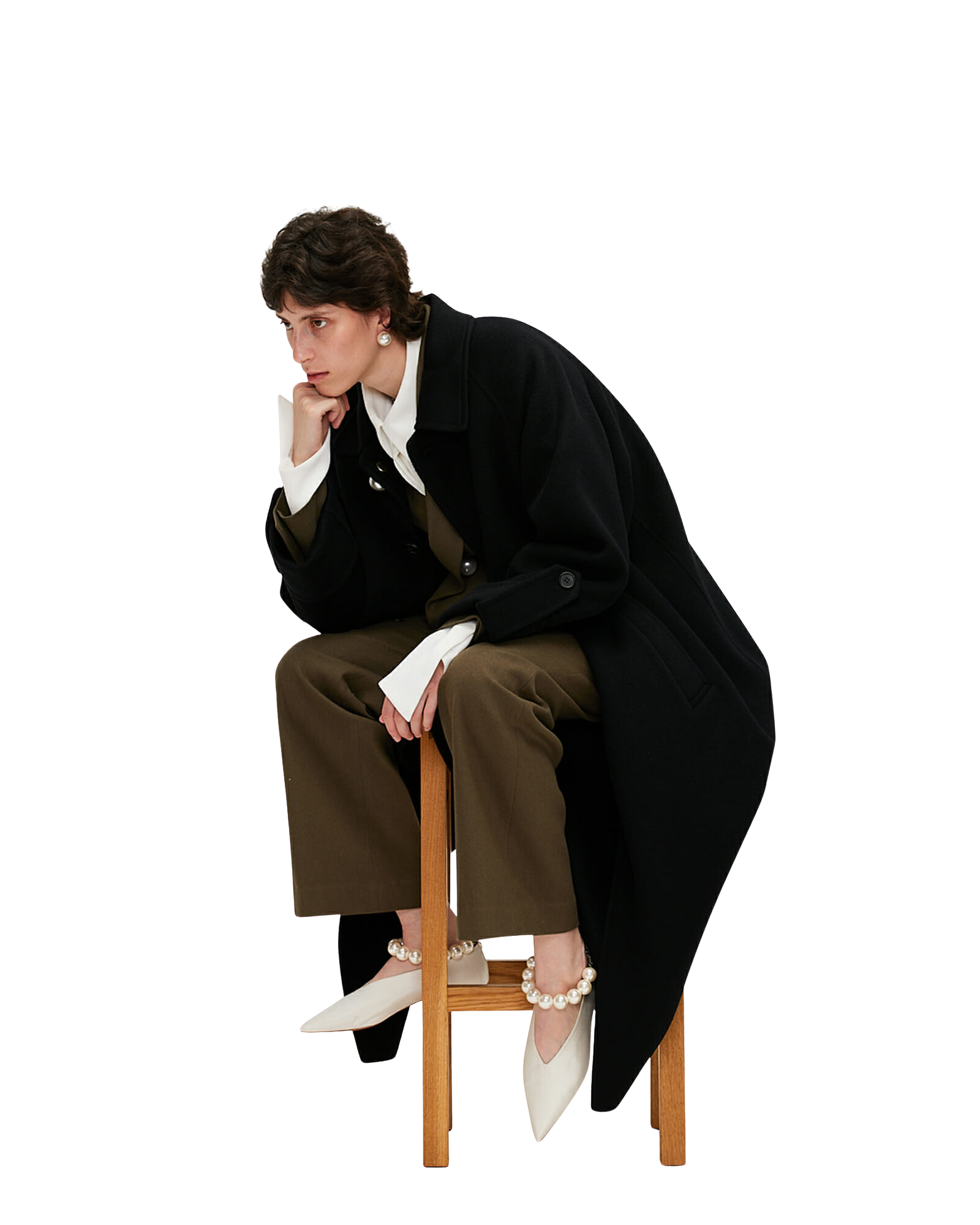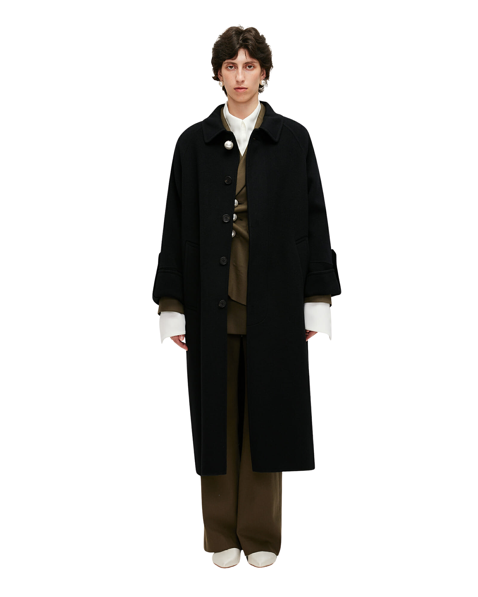 Double Faced Wool-Cashmere Pearl Button Coat (Black)