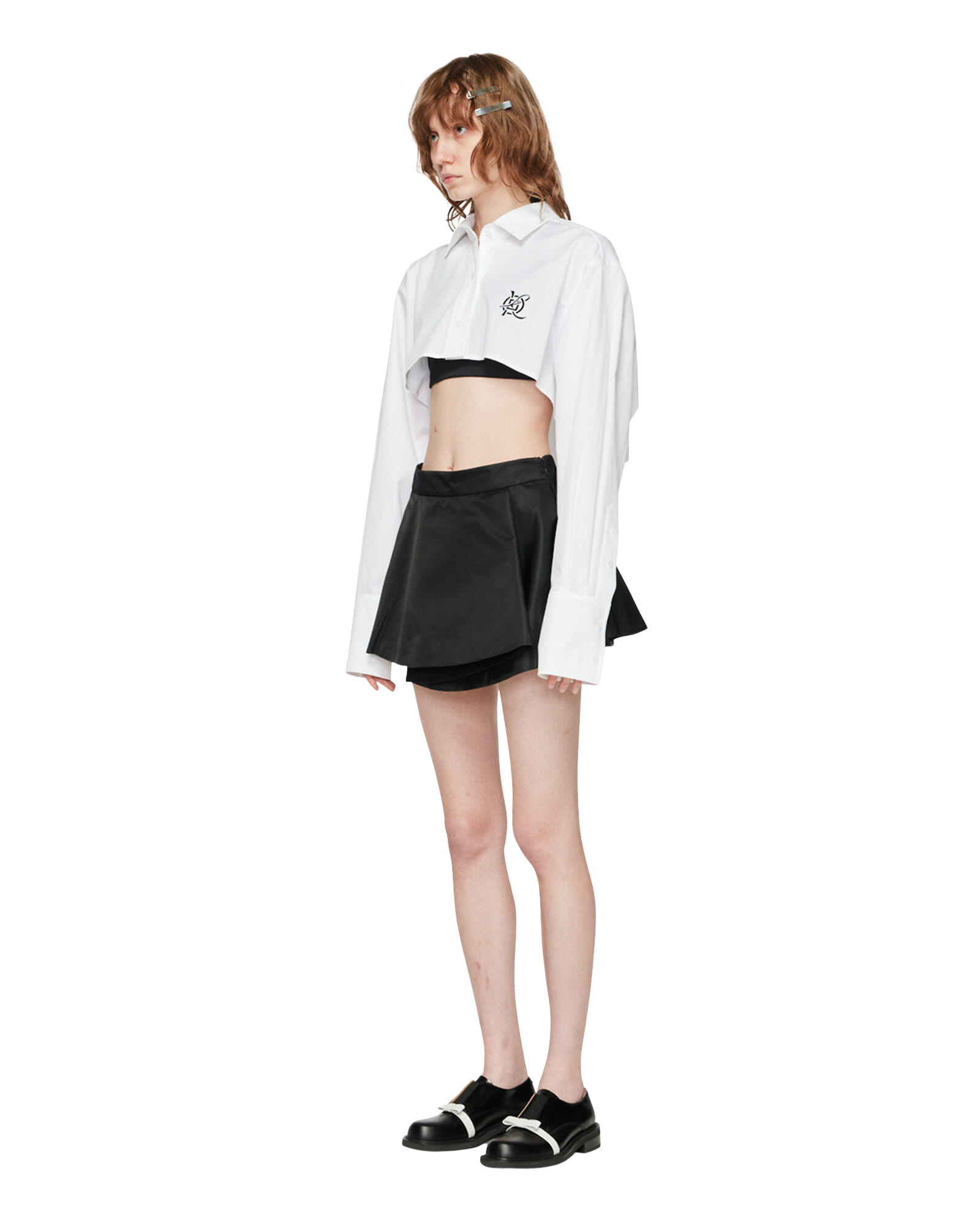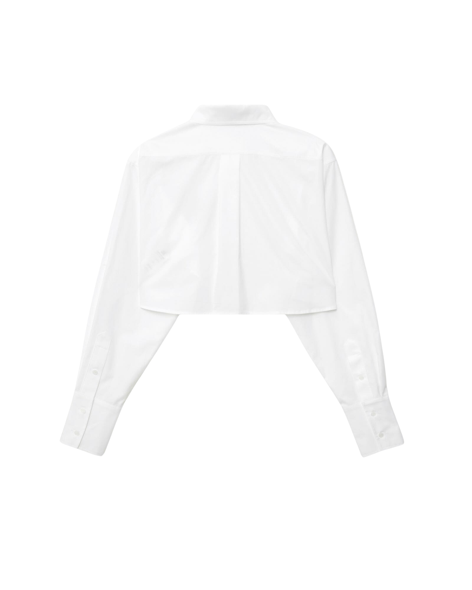 -Embroidery Cropped Shirt features flattering long sleeves and cropped hem.