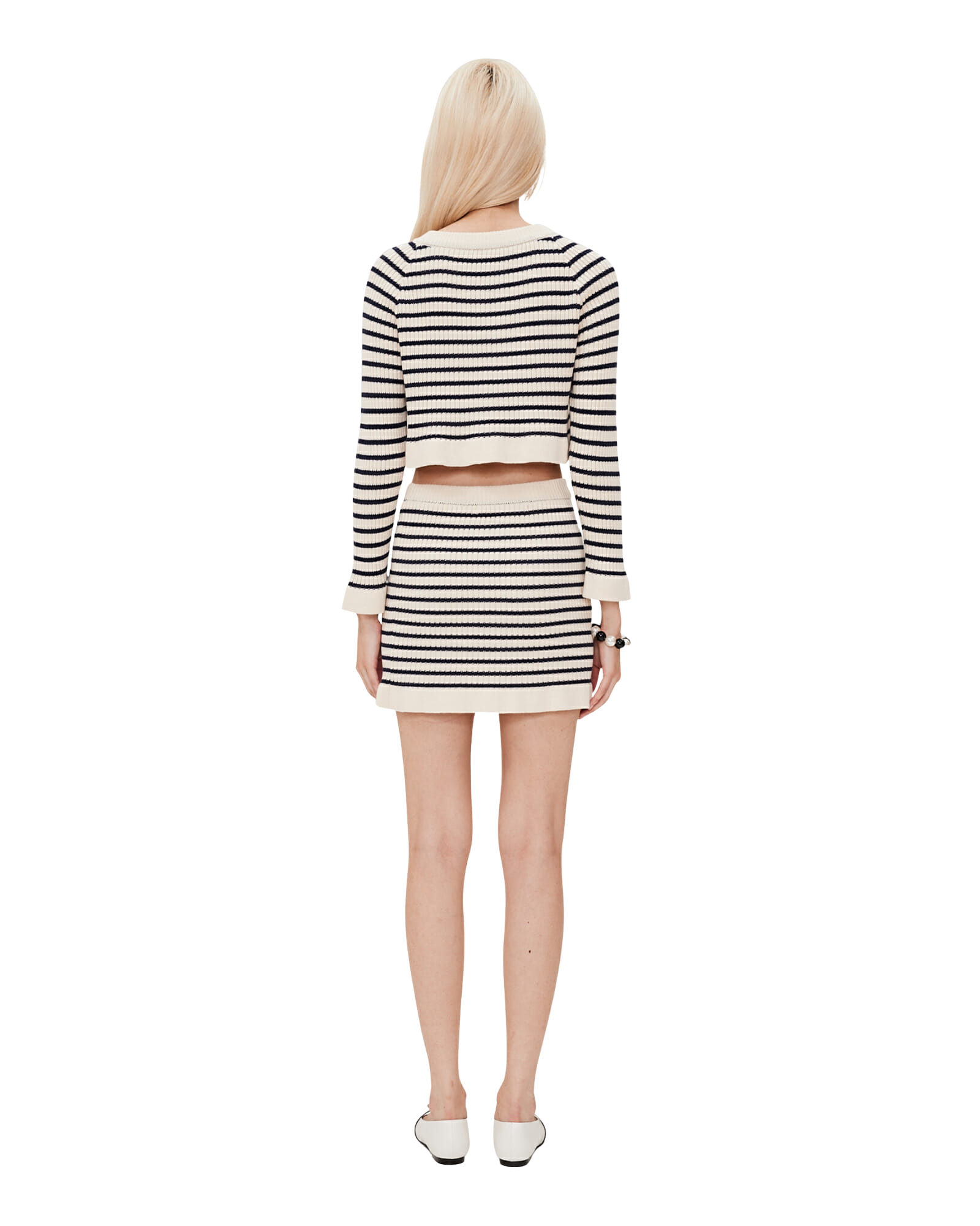 Striped Mikado Silk Bandeau Mini Dress (Black/Ivory)