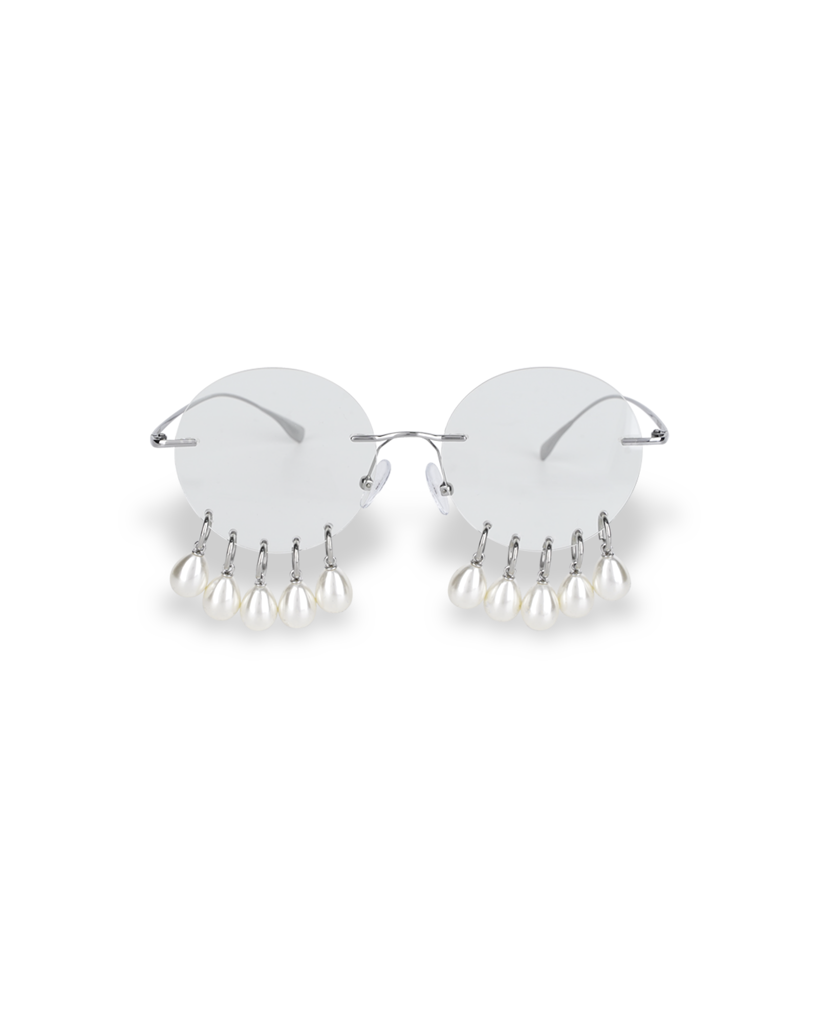 -Round-shaped frameless glasses.