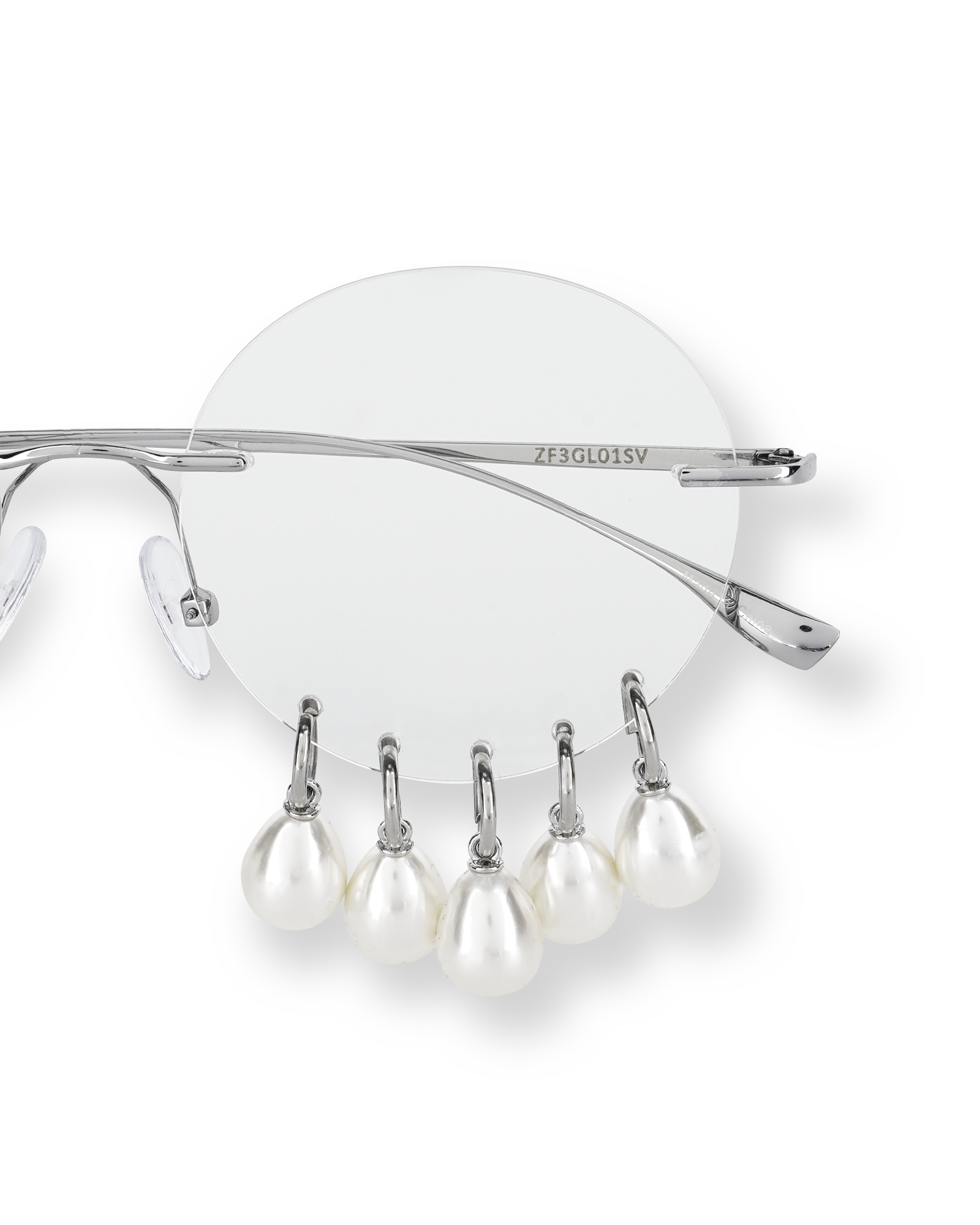 COMPOSITION - FRAME: STAINLESS STEEL LENS: POLYCARBONATE BLUE LIGHT PROTECTIVE LENS EMBELLISHMENT: ACRYLIC PEARL/STEEL